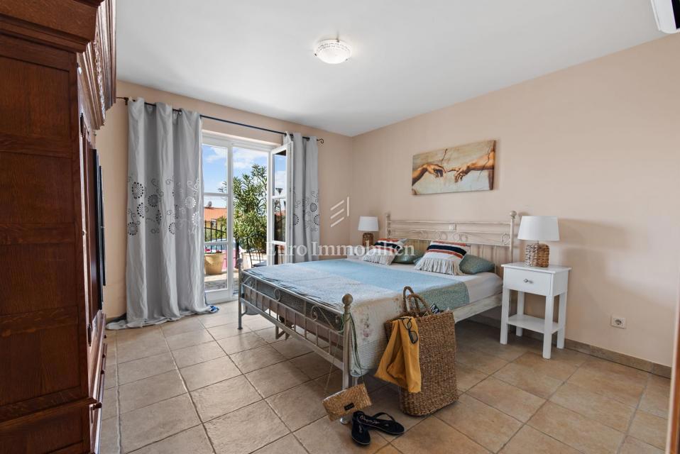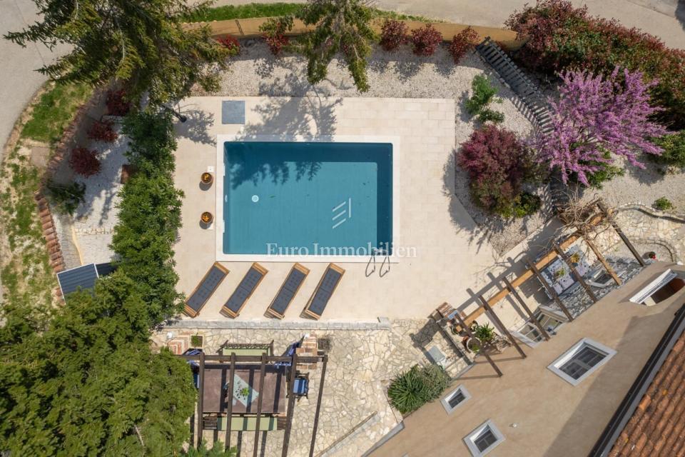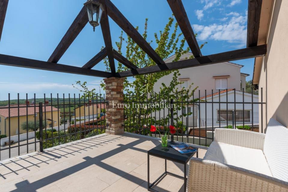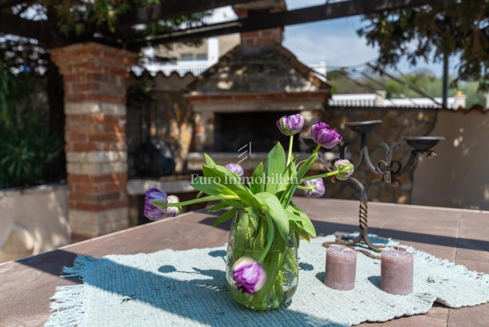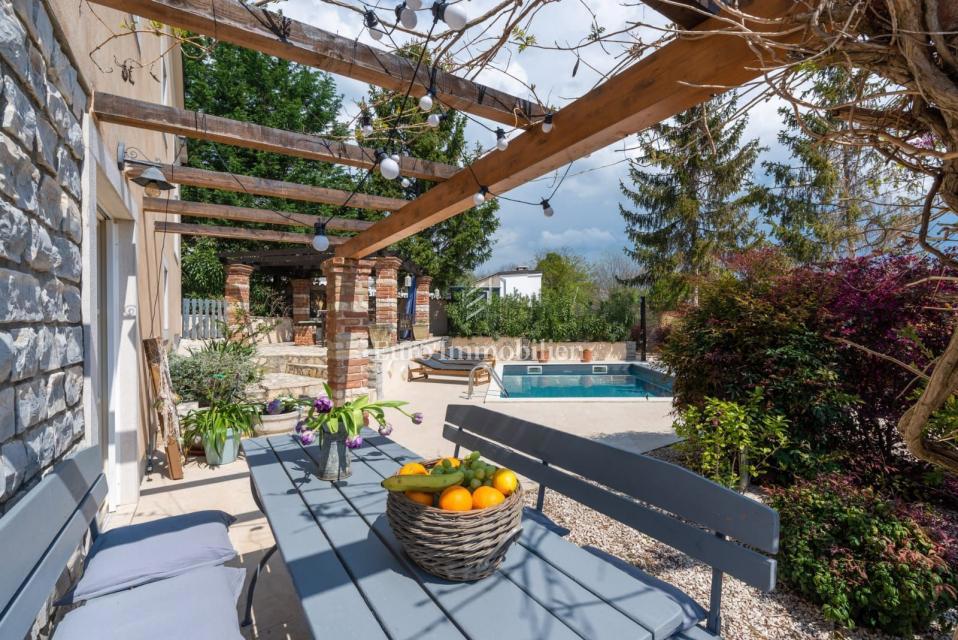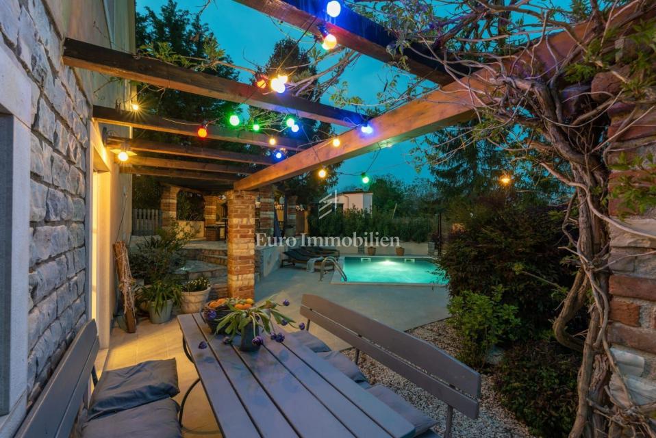Prekrasna Vila s bazenom nalazi se u mirnom naselju udaljenom od Poreča i mora samo 4 km. Smještena na ograđenoj okućnici od 730 m2 sa lijepim uređenim vrtom u kojem se nalazi vanjski bazen od 24 m2, natkrivena terasa sa velikim stolom, kaminom za roštilj