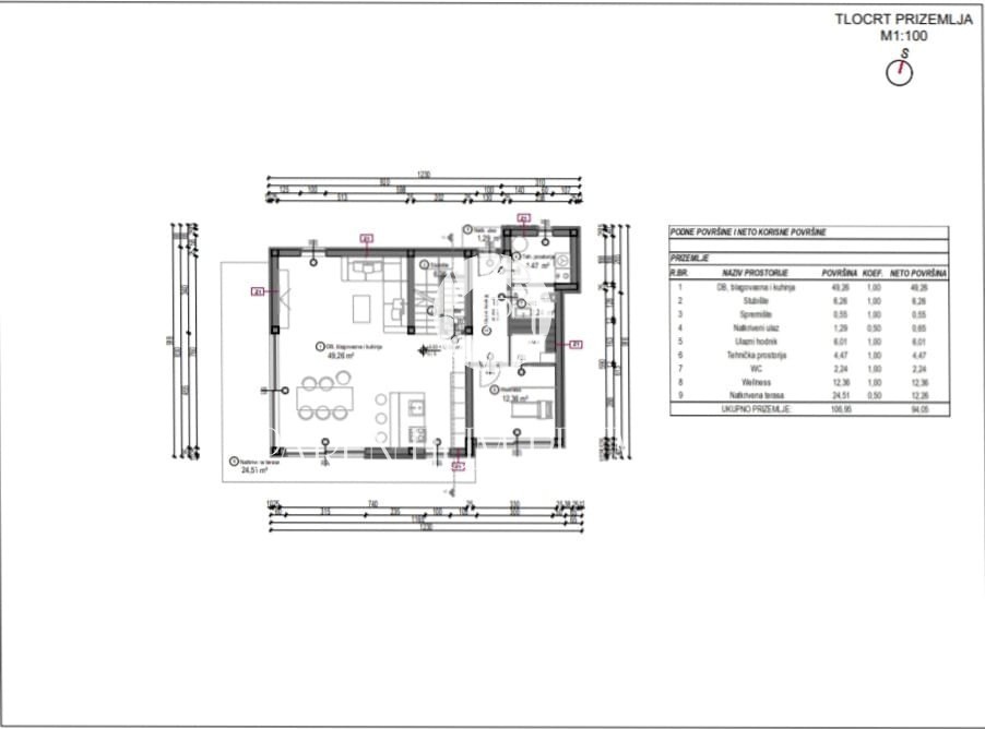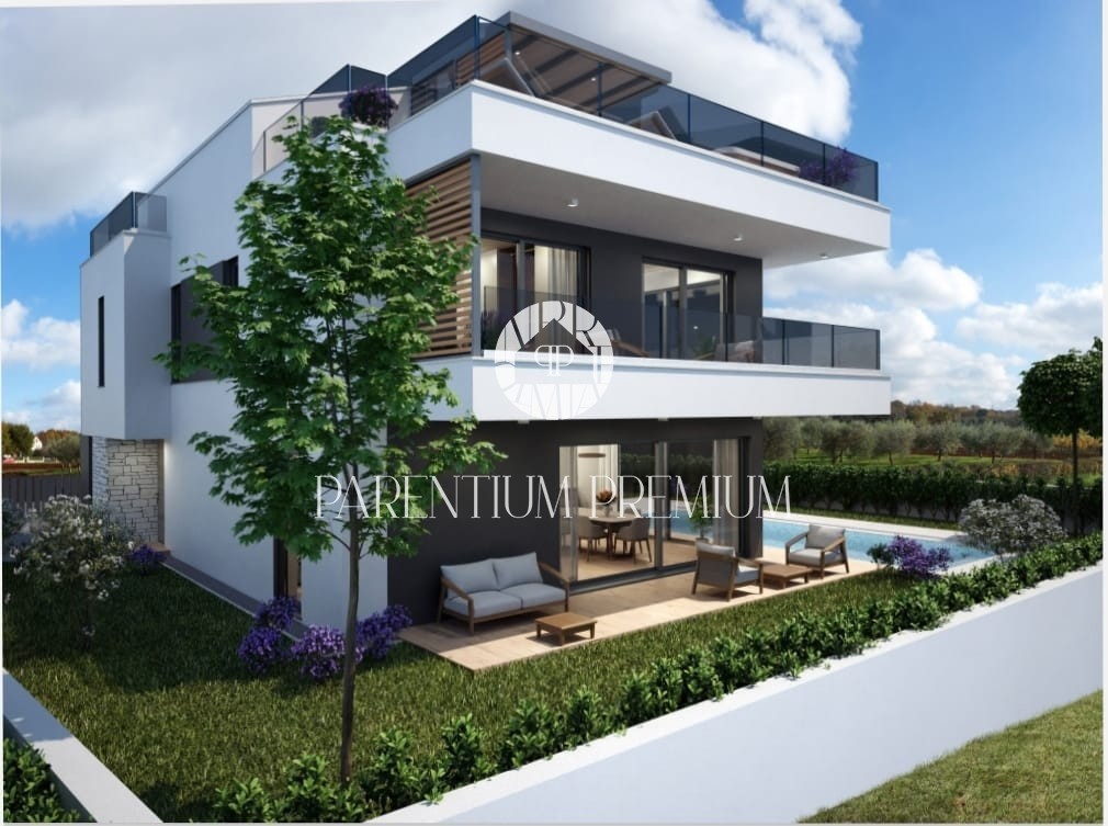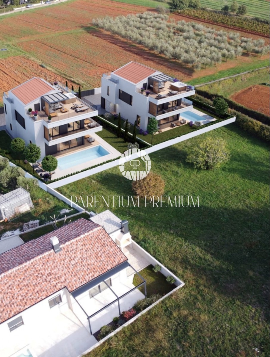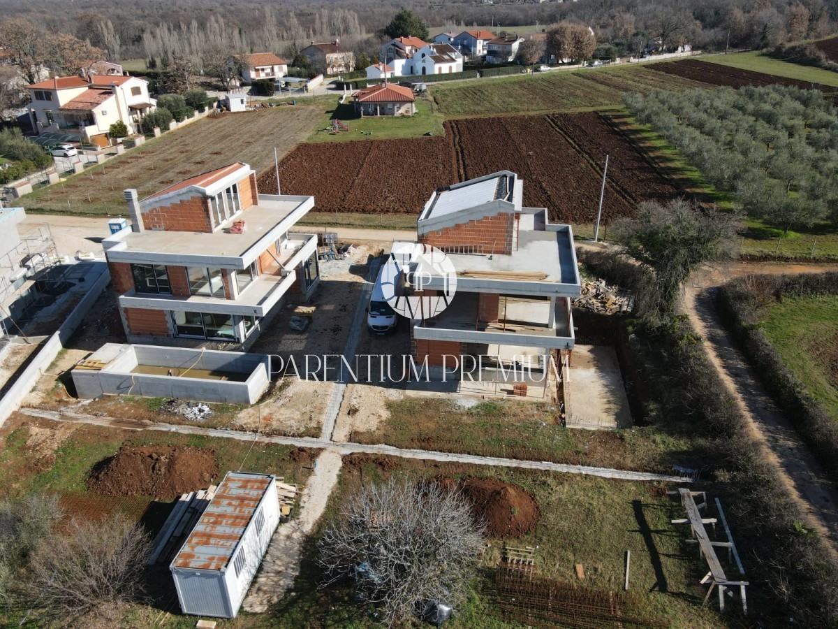 Moderna kuća u novogradnji, stambene brutto 300 m2 a netto 233 m2 na zemljištu veličine 548 m2. Prizemlje kuće će činit ulazni prostor, dnevni boravak s kuhinjom i blagovaonicom po open space sistemu, tehnička prostorija, spremište, wc, wellness soba, koj