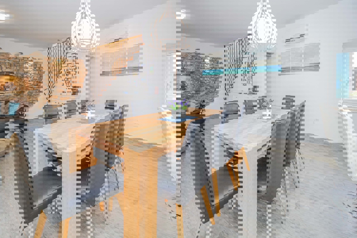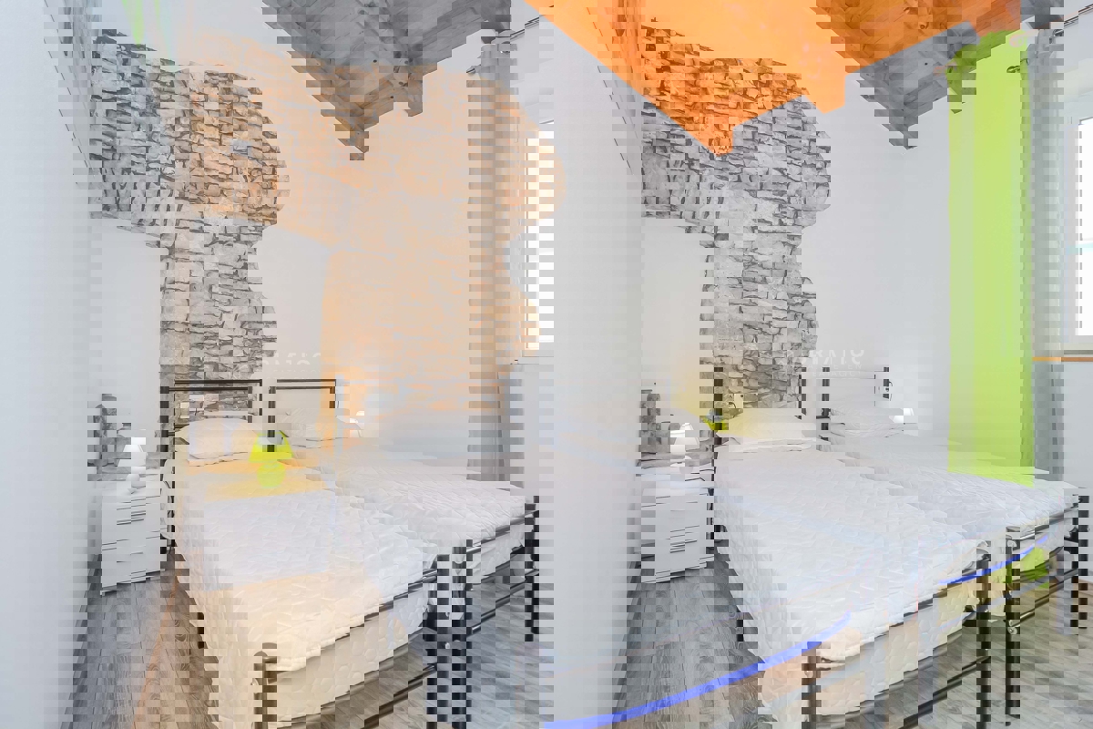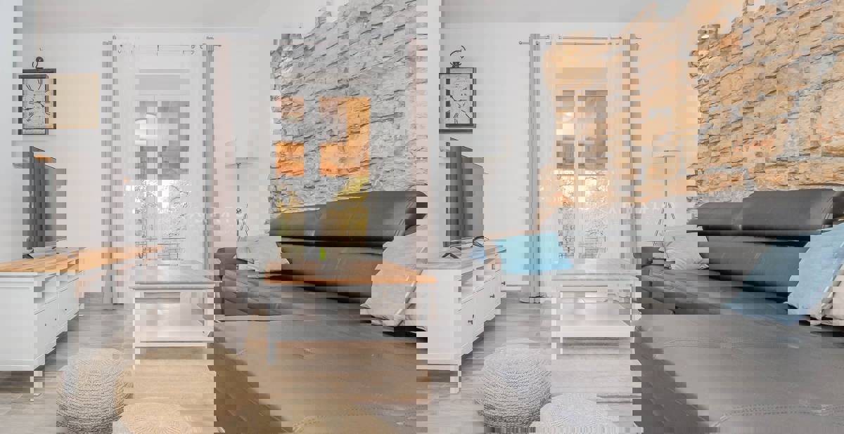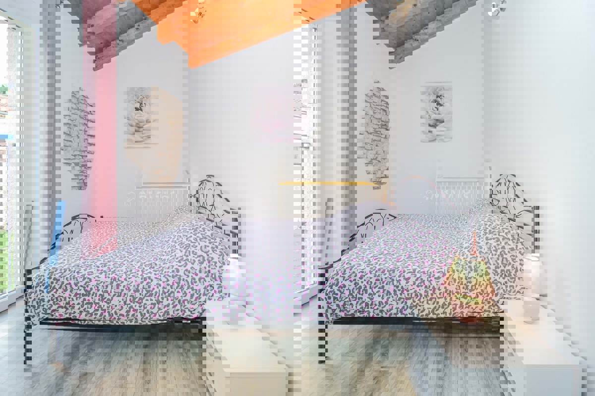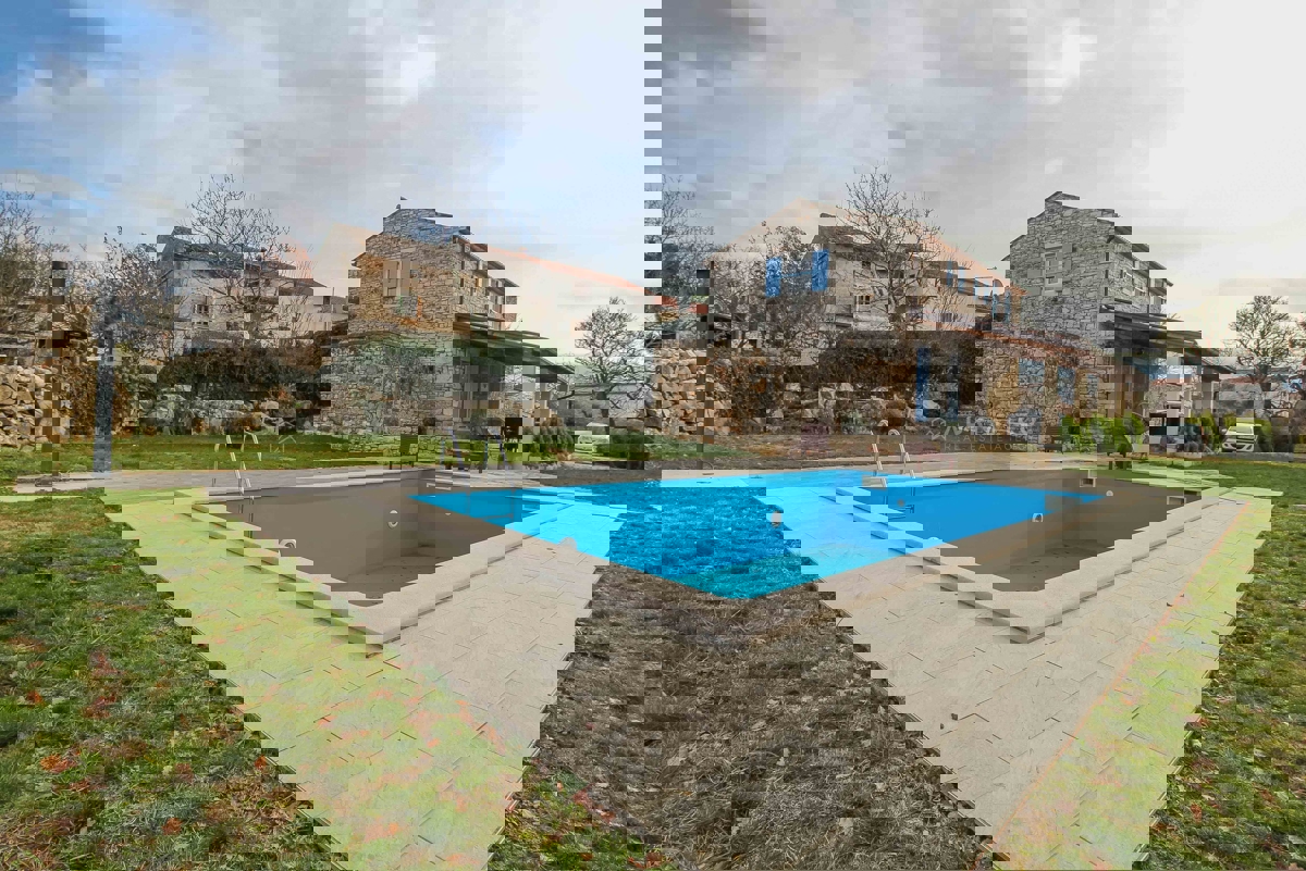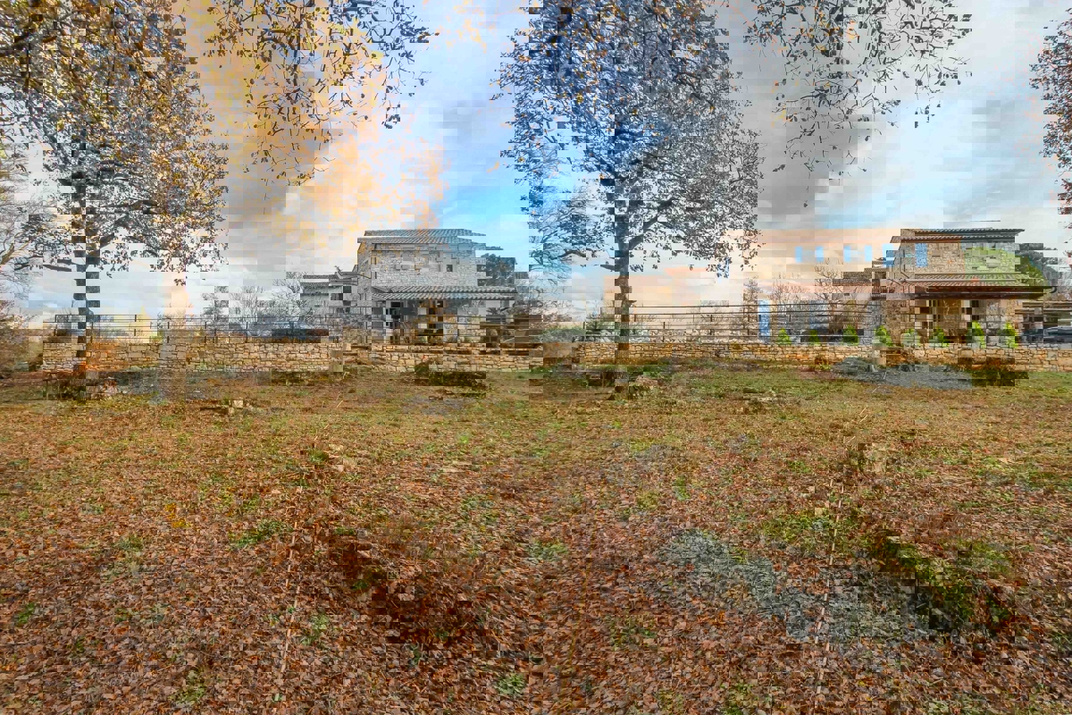 Kamena kuća s bazenom i ljetnom kuhinjom u blizini Svetog Lovreča Na mirnoj lokaciji, u malenom mjestu pokraj Svetog Lovreča, prodaje se šarmantna kamena kuća na kraju građevinske zone, okružena prostranim poljoprivrednim zemljištem. Kuća se prostire na d