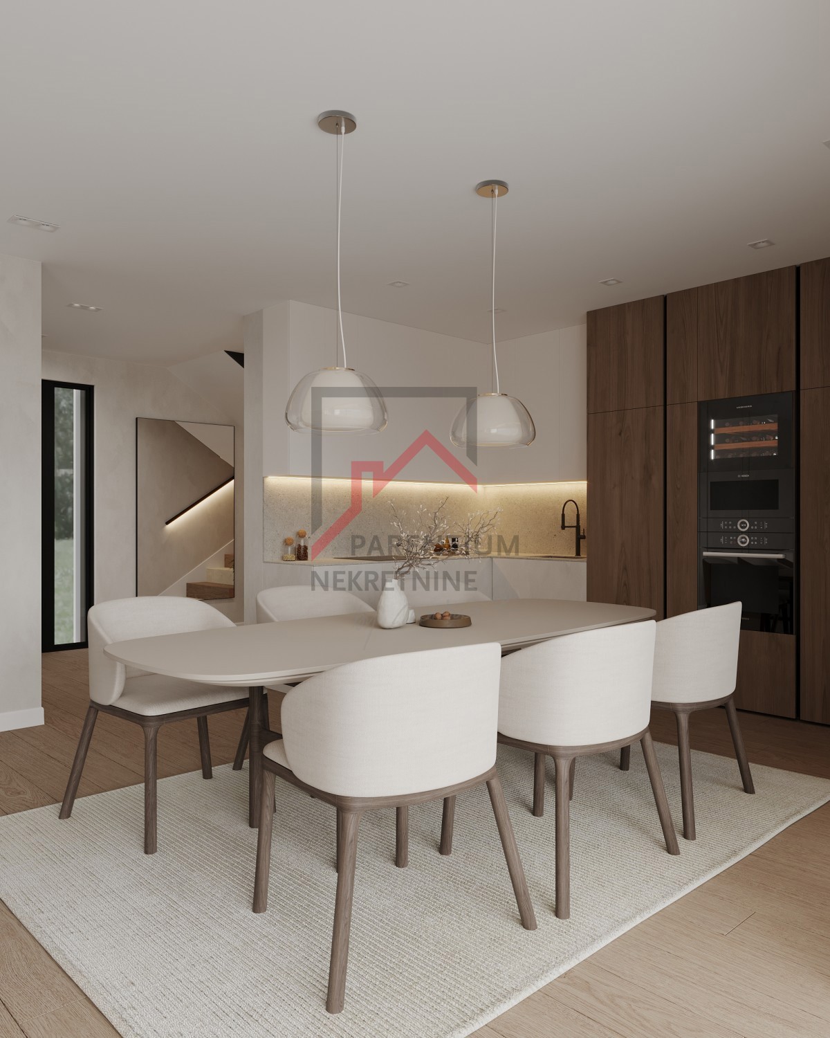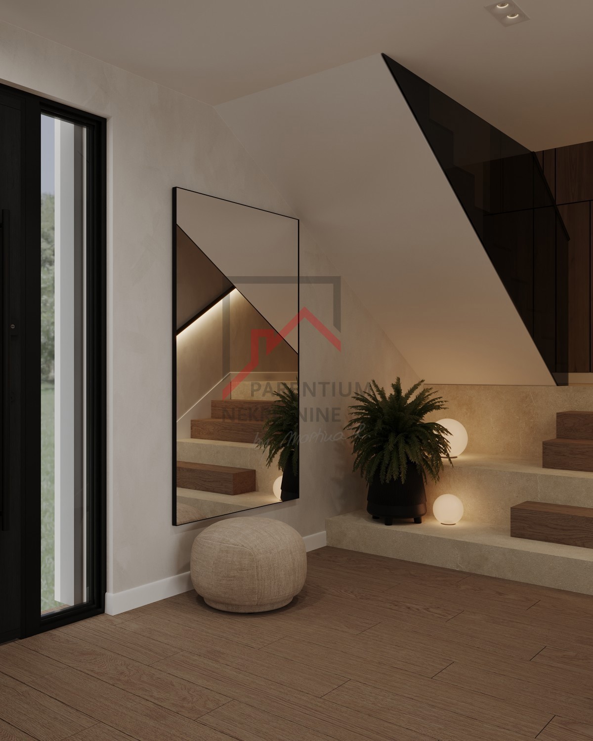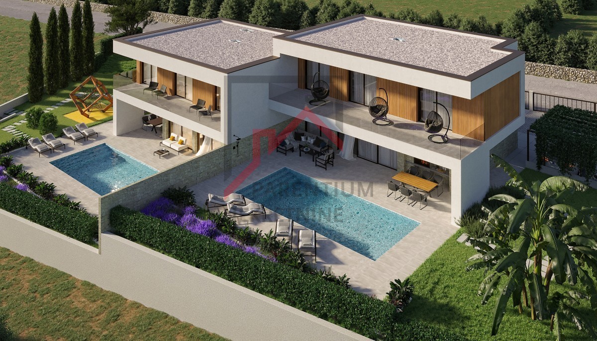 U prodaji je moderna dvojna vila smještena u idiličnom selu, poznatom po vinogradima, maslinicima i opuštajućoj atmosferi. Ova vila ima privatni bazen, prostrani vrt, te parkiralište, pružajući savršenu privatnost i udobnost. Smještena na zemljištu od 62