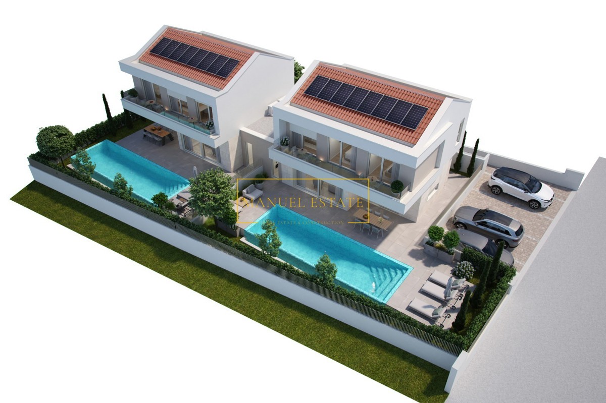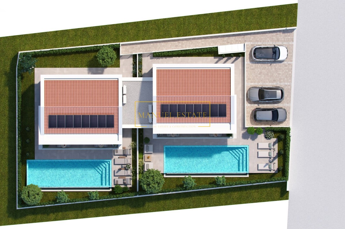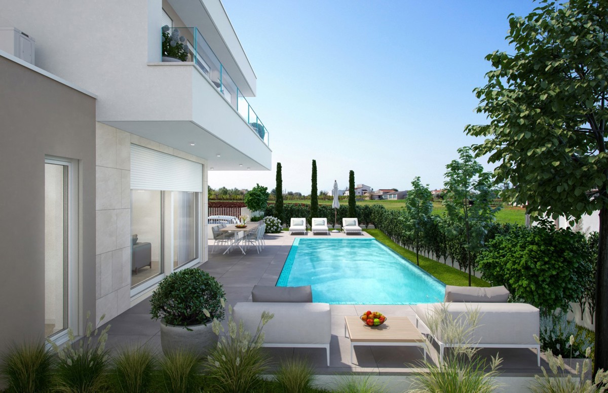 Prodaje se moderna vila u blizini Poreča, smještena na mirnoj lokaciji, idealnoj za obiteljski život ili odmor. Vila se prostire na dvije etaže – prizemlje i kat – te nudi spoj luksuza, funkcionalnosti i predivnih mediteranskih pogleda. U prizemlju se na