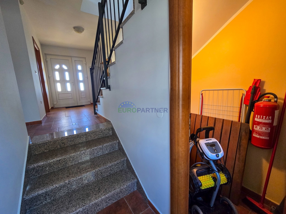 Prodaje se dvojna kuća u Poreču, površine 169 m2, izgrađena 2010. godine, te renovirana 2022. godine. Smještena na parceli od 450 m2, ova kuća nudi prostranost i udobnost u popularnoj turističkoj destinaciji. Kuća se sastoji od prizemlja i kata. U priz