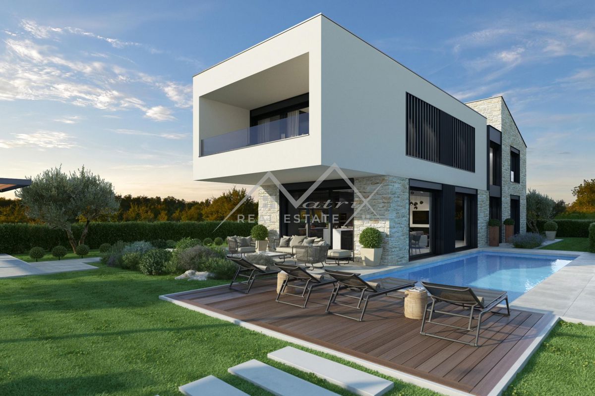 Poreč okolica - Tri (3) luksuzne i moderne vile s vlastitim bazenima na vrhunskoj lokaciji samo 5 km od mora i centra Poreča! Otvoreni pogled na more! Smještene u mirnom naselju i okužene prekrasnom prirodom i romantičnim vinogradima, udaljene samo 5 km