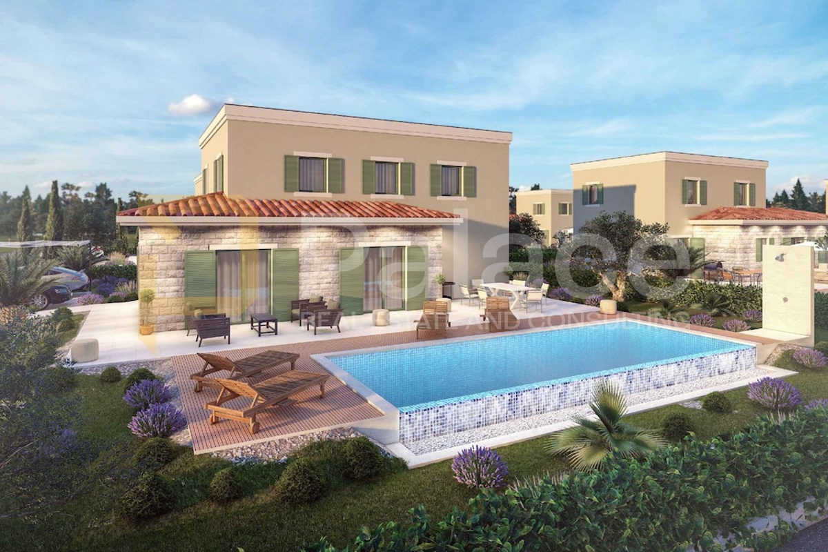 Na prodaju je luksuzna samostojeća vila smještena u mirnom naselju Gedići, samo nekoliko minuta vožnje od obale i svih važnih sadržaja. Vila je površine 337 m², smještena na parceli od 1013 m², a bit će useljiva 2025. godine. Unutarnja stambena površina o
