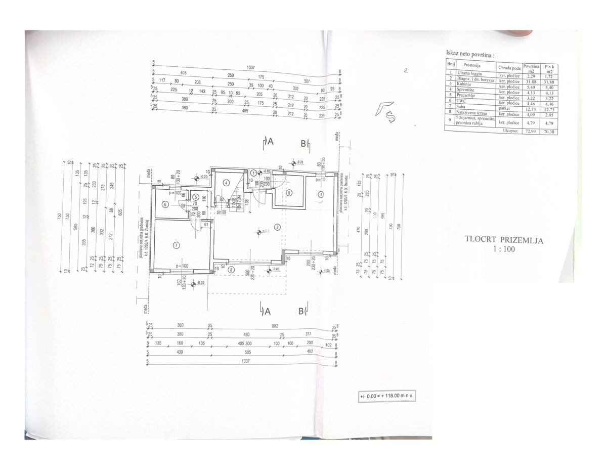 Ova kuća s bazenom, u sredini niza, modernog dizajna, trenutno je u fazi gradnje. Sastoji se od predsoblja, ostave, kuhinje, blagovaonice, dnevnog boravka i kupaonice u prizemlju, dok se na katu nalaze još jedna spavaća soba te jedna kupaonica. Grija