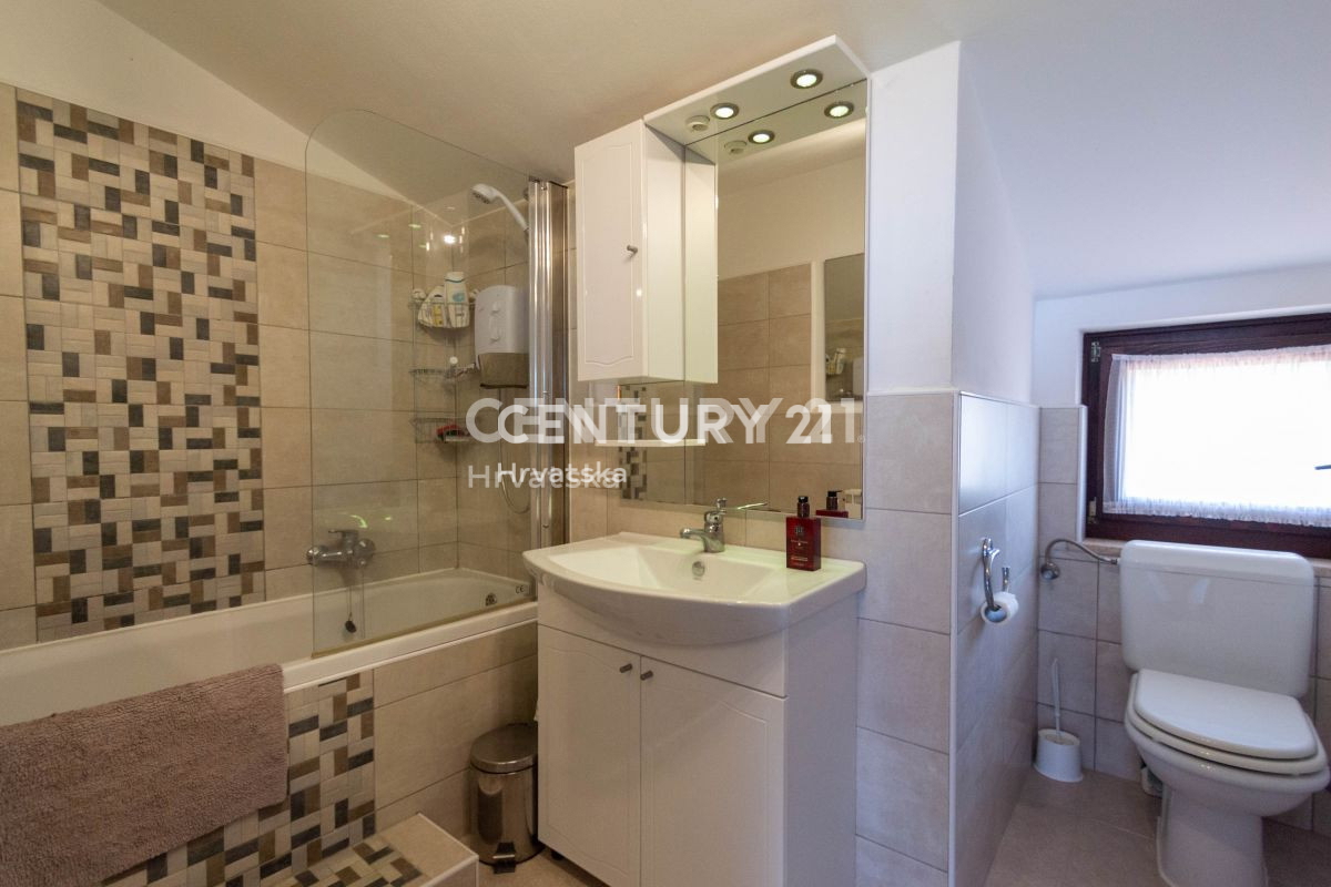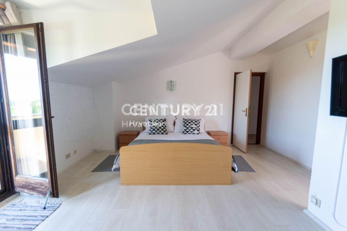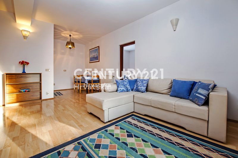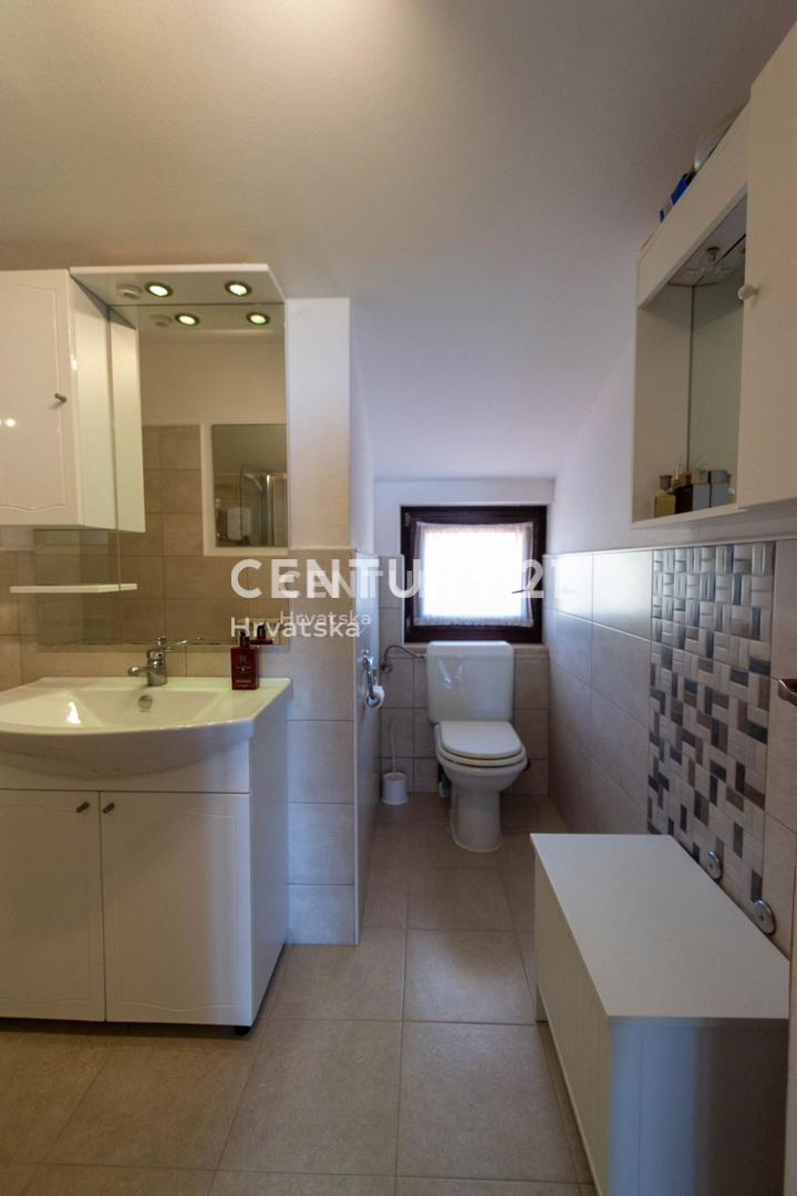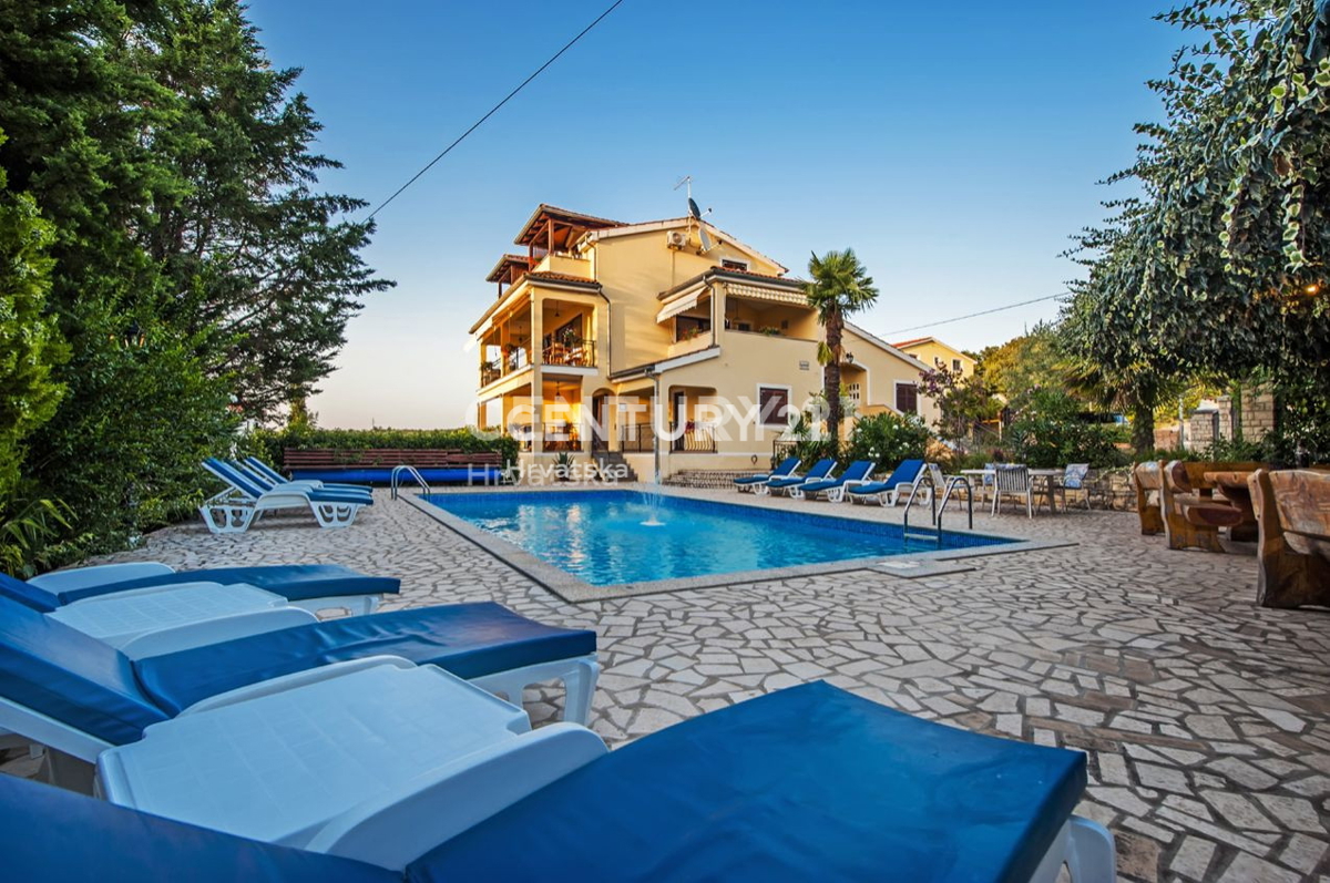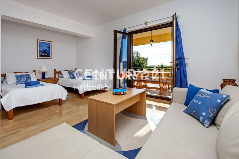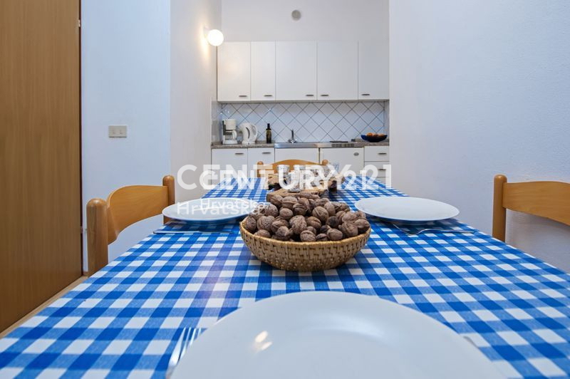 Ova velika apartmanska kuća nalazi se u sporednoj ulici u naselju Mugeba. Sastoji se od 5 apartmana, od kojih su 4 u turističkom najmu, te garaže i kotlovnice u suterenu zgrade. Prvi apartman sastoji se od 2 spavaće sobe, dnevnog boravka, kuhinje i