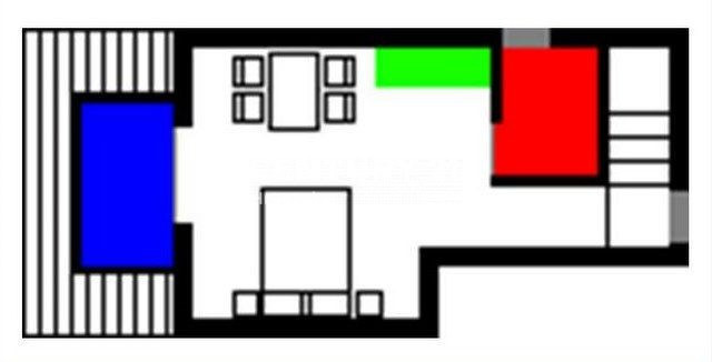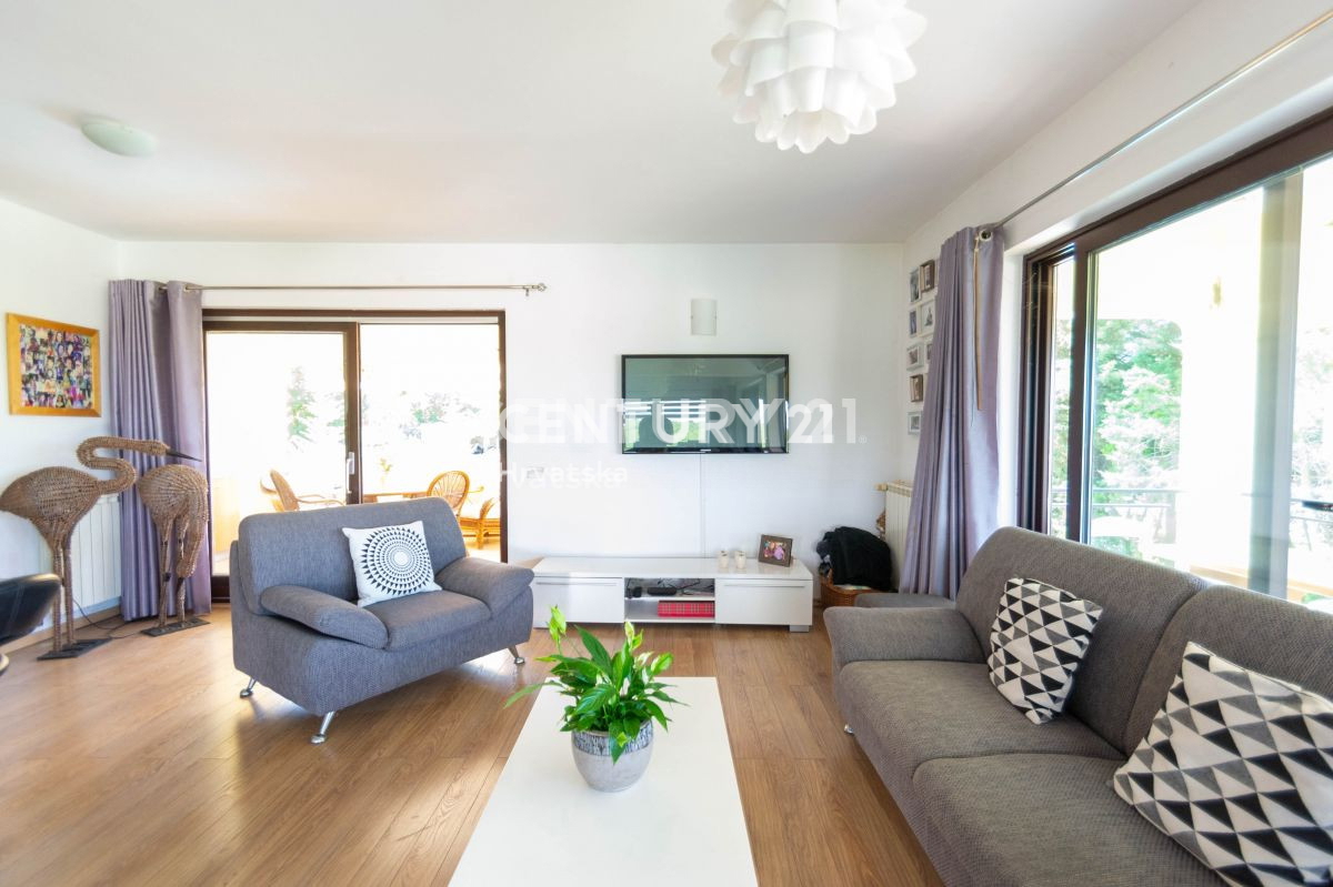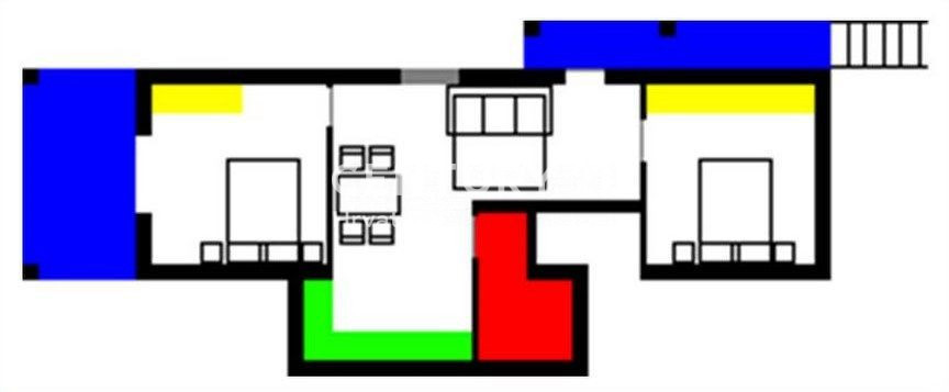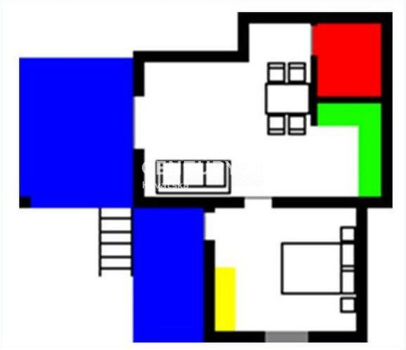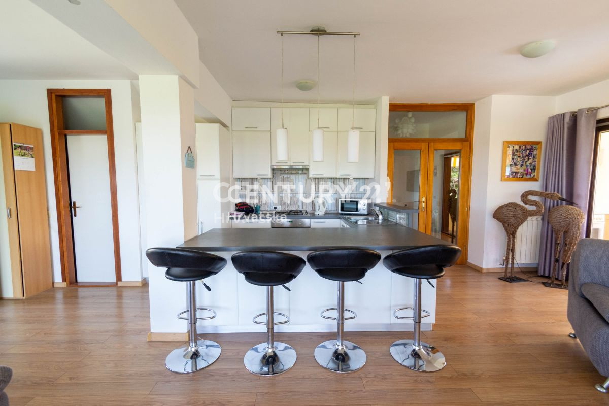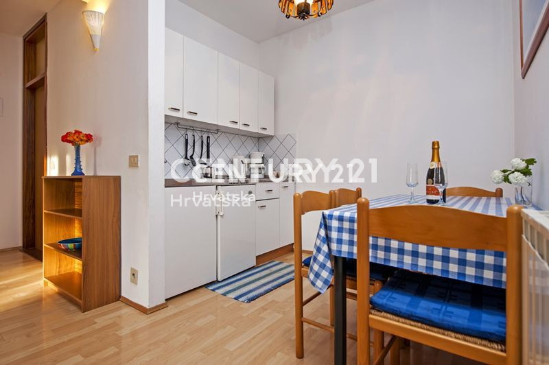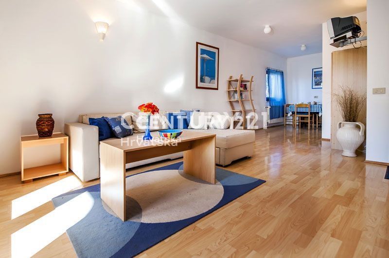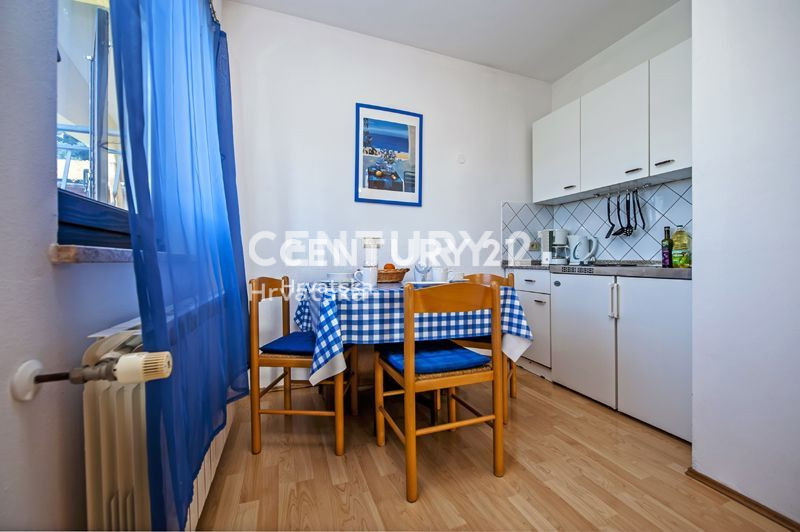 Ova velika apartmanska kuća nalazi se u sporednoj ulici u naselju Mugeba. Sastoji se od 5 apartmana, od kojih su 4 u turističkom najmu, te garaže i kotlovnice u suterenu zgrade. Prvi apartman sastoji se od 2 spavaće sobe, dnevnog boravka, kuhinje i