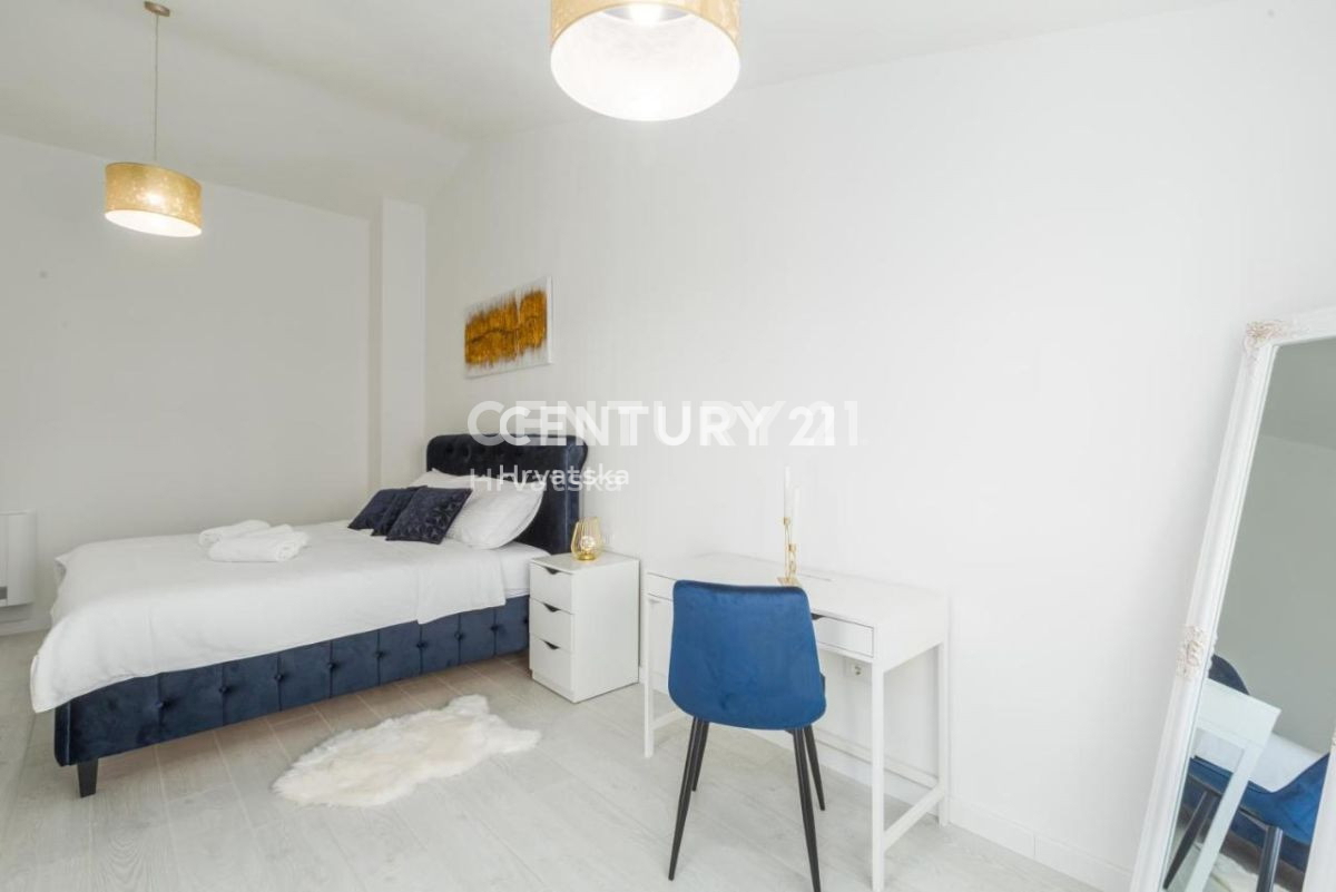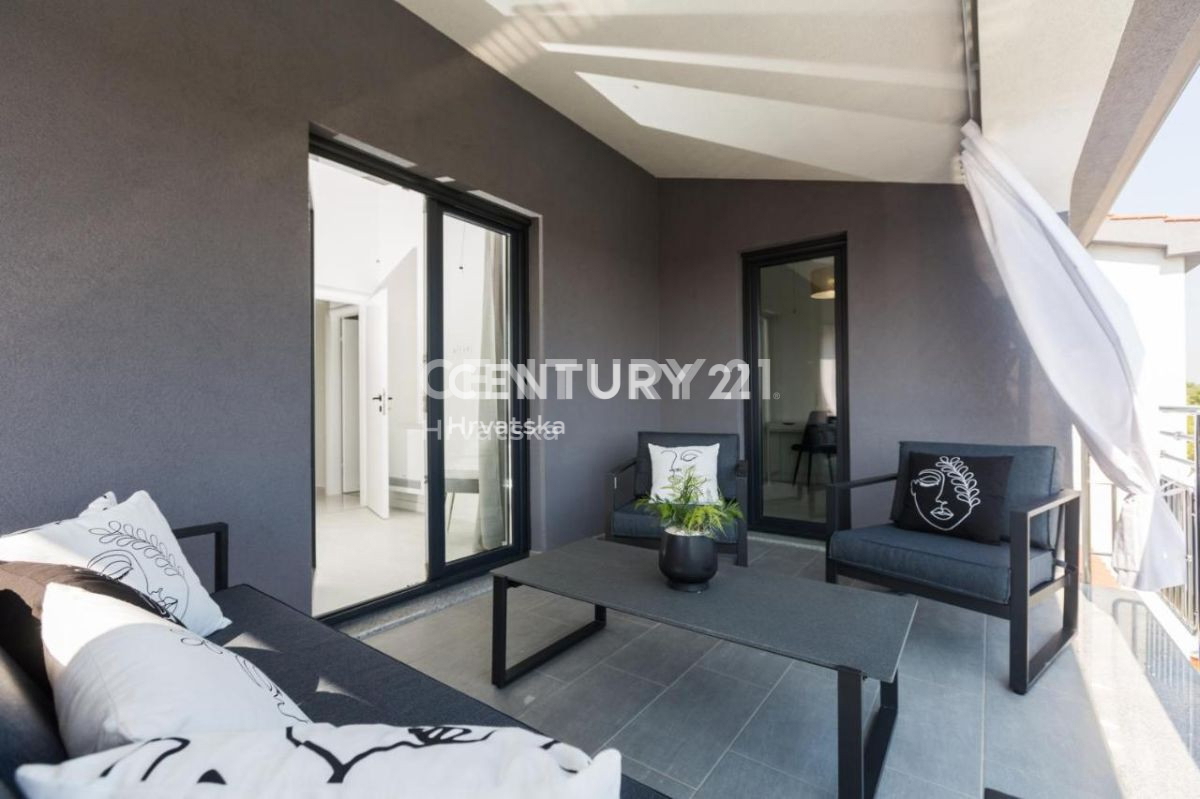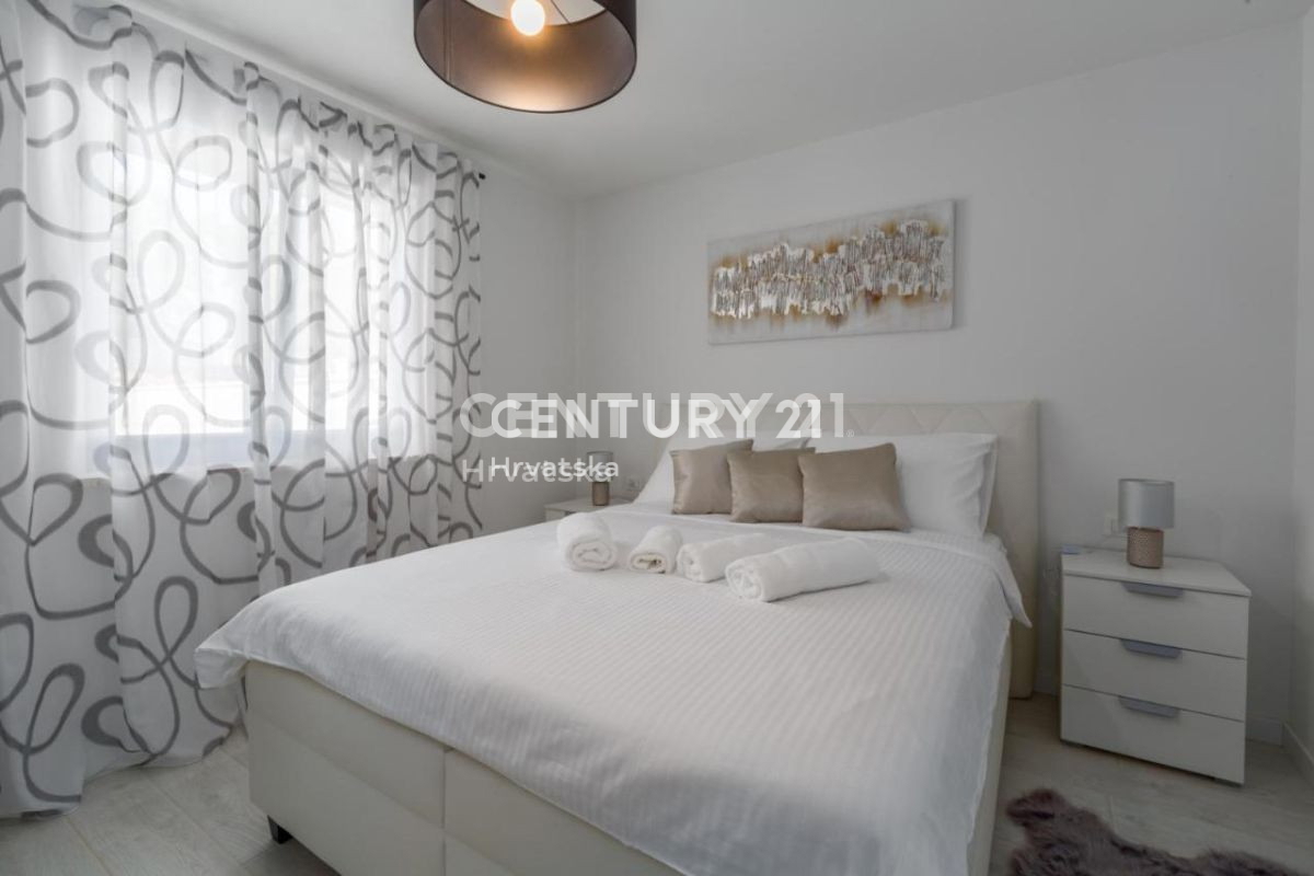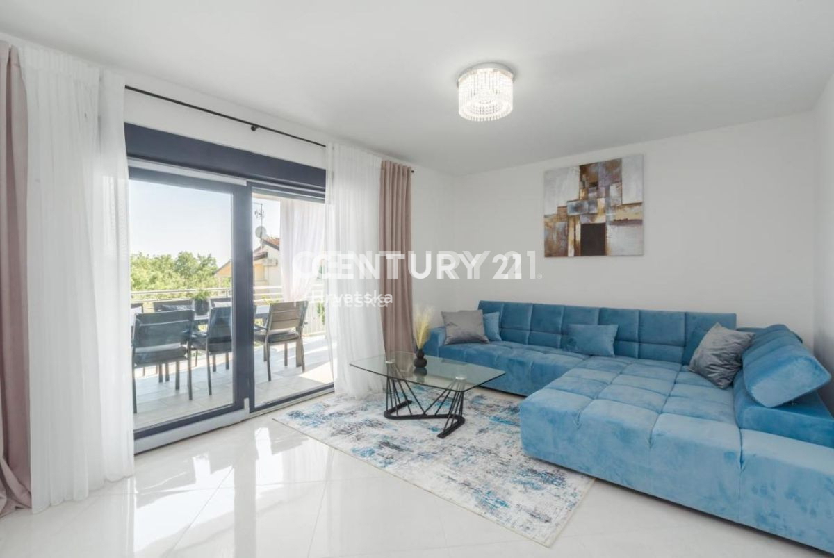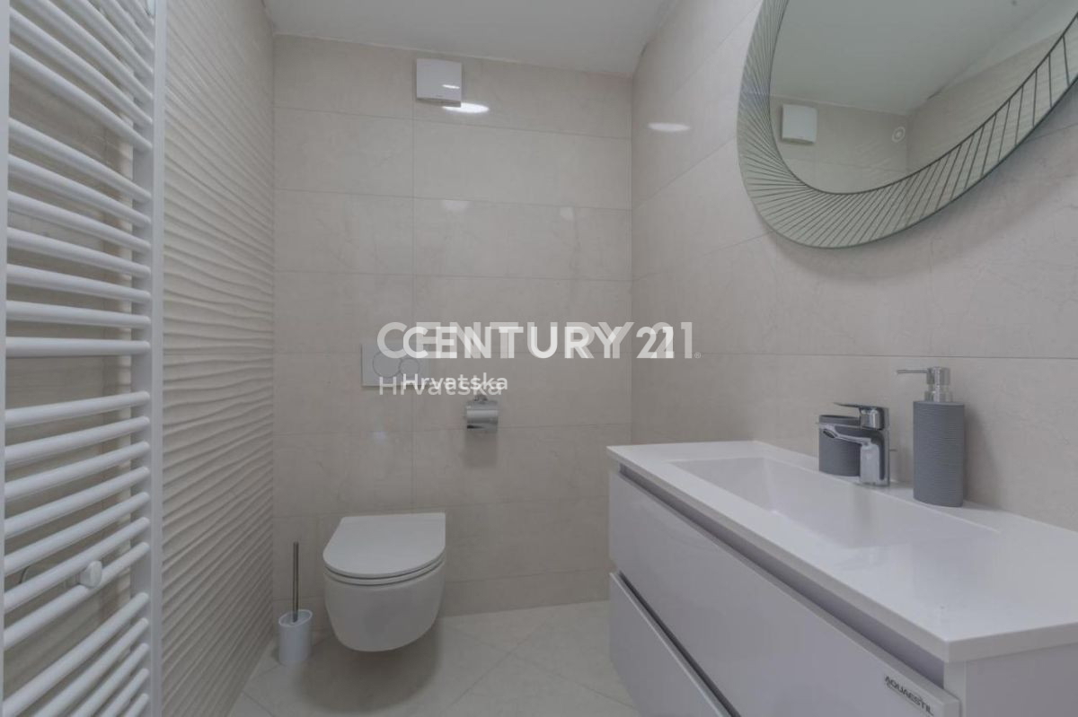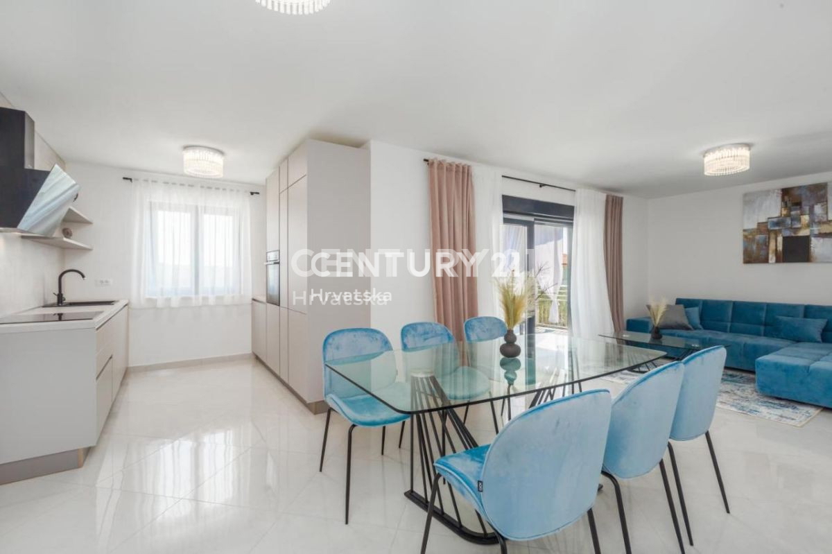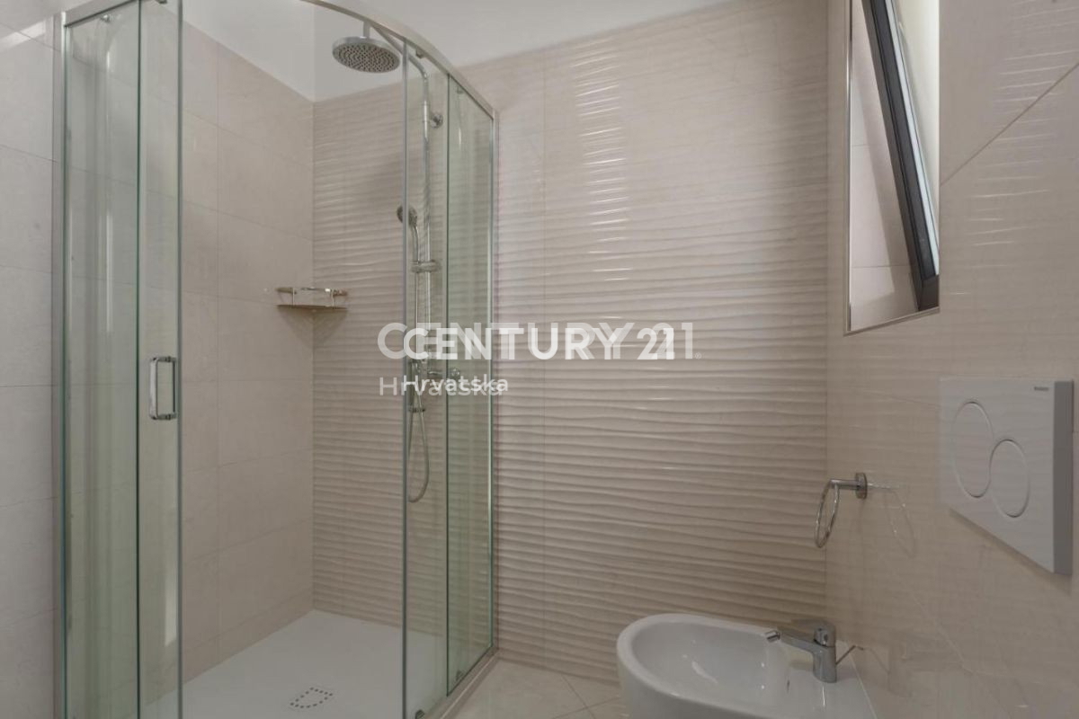 Ova lijepa moderna dvojna kuća nalazi se 7km od Poreča i mora, u mirnom naselju, s pogledom na prirodu i šume. U suterenskom dijelu nalazi se otvorena prostorija s puno mogućnosti uređenja (konoba, soba i sl.). U prizemlju se nalaze dnevni boravak,