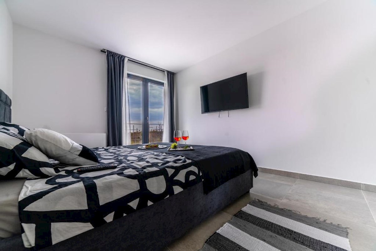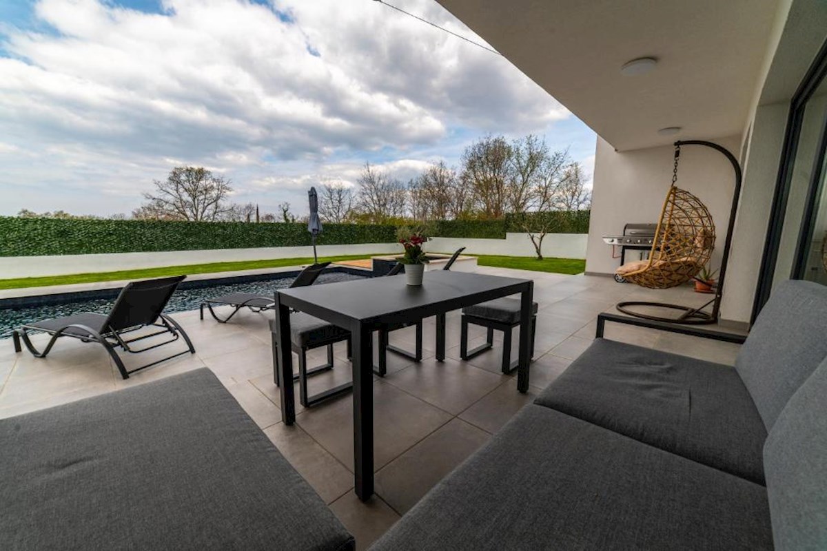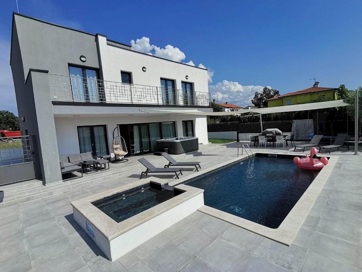 Poreč, uža okolica, Villa s bazenom s četiri spavaće sobe na mirnoj lokaciji ID 1325 Prodaje se moderna kuća izgrađena 2021. godine, ukupne površine 168 kvadratnih metara. Kuća se prostire na zemljištu veličine 592 kvadratna metra, s dvije etaže koje p