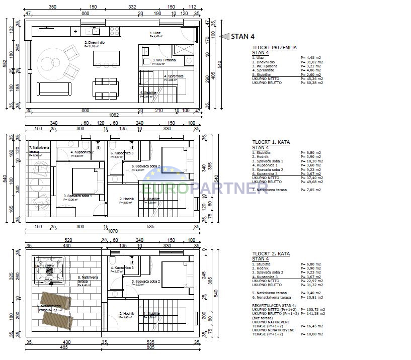 Kuća u nizu u modernoj izvedbi koja će se nalaziti na odličnoj lokaciji u blizini grada Poreča, udaljena svega 1500 metara od mora. Kuća je koncipirana tako da se u prizemlju nalaziti ulazni hodnik, dnevni boravak s kuhinjom i blagovaonicom s izlazom