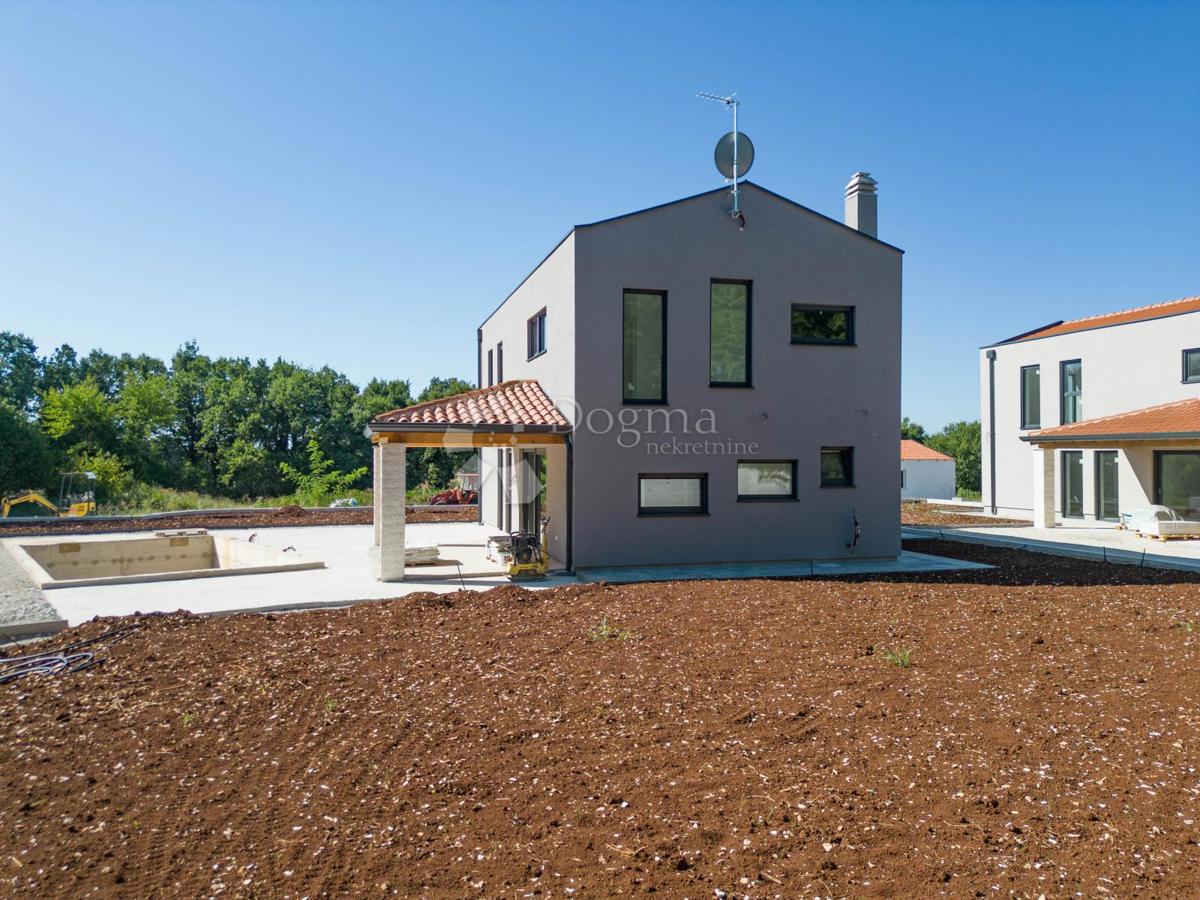 Smještena u mirnom naselju u blizini Poreča, ova moderna kuća od 118 m² savršena je za obiteljski život ili kao investicija za iznajmljivanje tijekom turističke sezone. Okružena zelenilom i predivnim pejzažima, pruža osjećaj privatnosti i povezanosti s pr