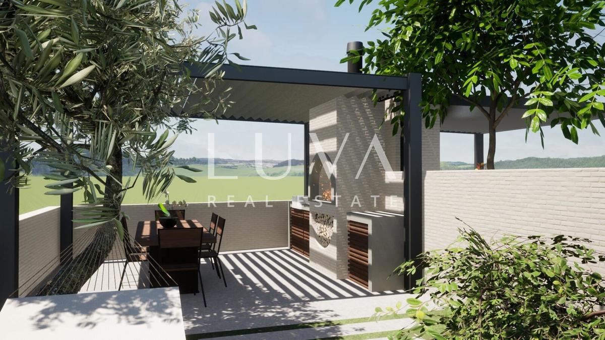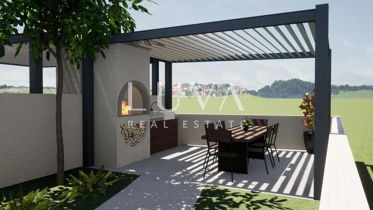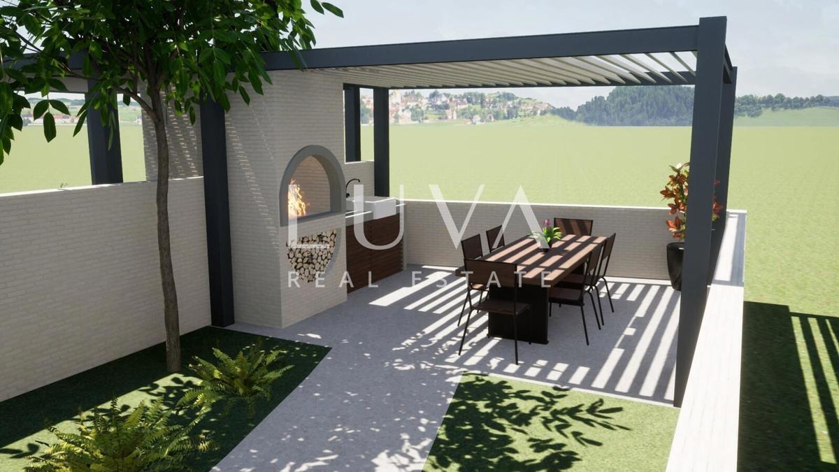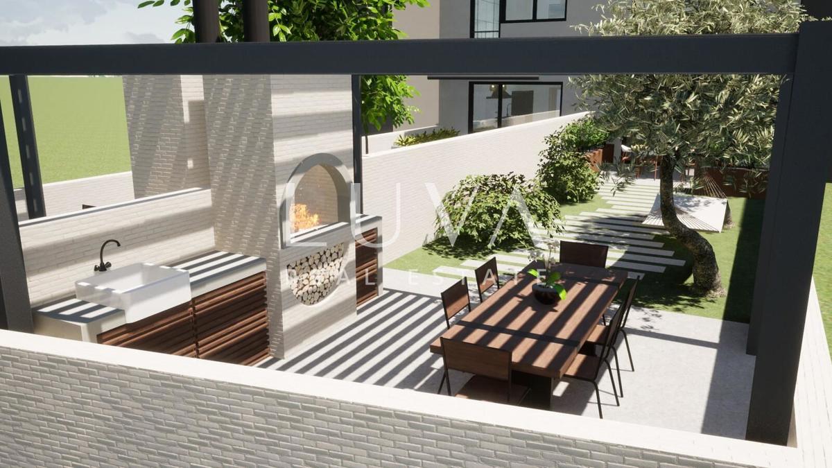 Na prodaju je moderna kuća u nizu, pažljivo dizajnirana kako bi zadovoljila sve potrebe suvremenog obiteljskog života. Smještena u mirnom okruženju, ova kuća nudi dvije zasebne stambene jedinice, svaka s prostranim i funkcionalnim rasporedom kroz tri etaž