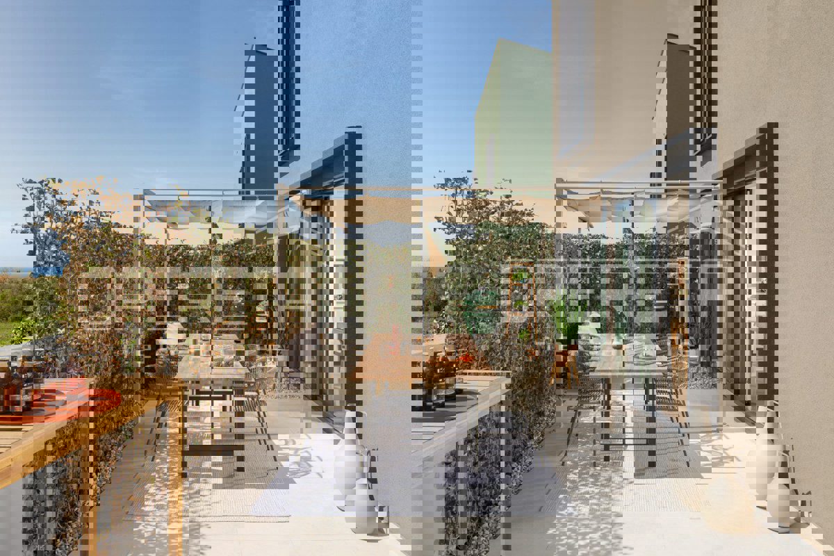 ISTRA, POREČ - Moderna kuća s pogledom na more PRILIKAKuća se sastoji od dvije etaže ukupne stambene površine od 82,78m2 raspoređena na dvije etaže.Prizemlje se sastoji od kuhinje, blagovaonice i dnevnog boravka s izlazom na terasu, dok su na gornjem katu