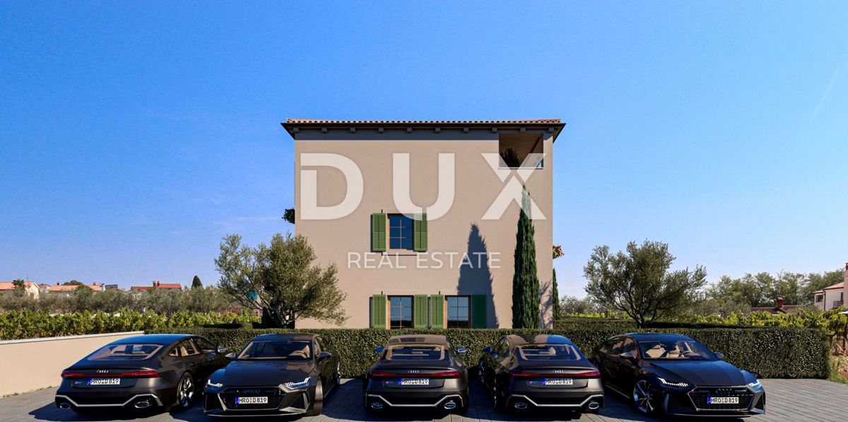 ISTRA, POREČ - Novogradnja u predgrađu Okupan ugodnom mediteranskom klimom, smješten u srcu zapadne istarske obale, antički gradić Poreč i njegovo priobalje sačuvanih prirodnih ljepota, uređenih parkova, borovih i hrastovih šumaraka koji sežu do samoga m