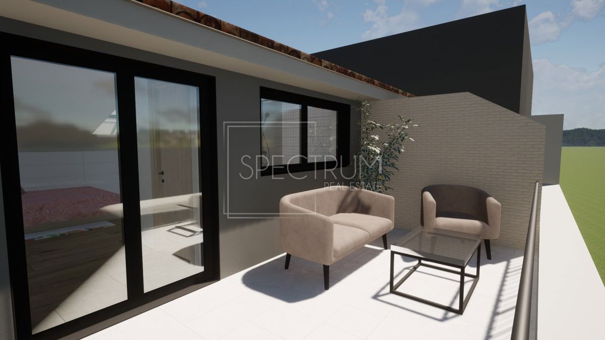 Poreč okolica, novogradnja, kuća u nizu sa pogledom na more