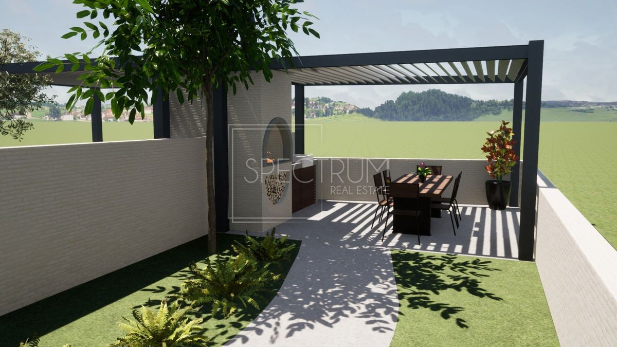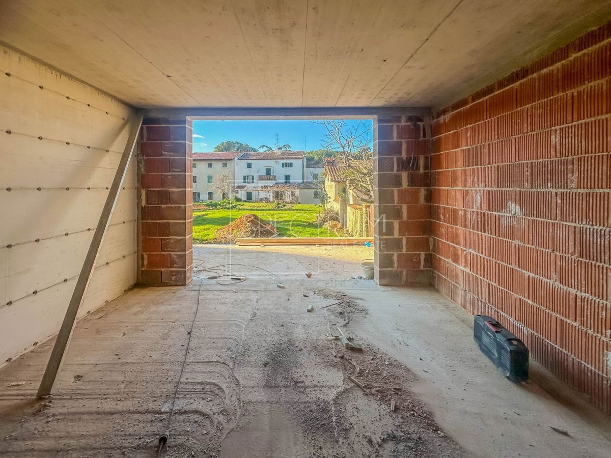 Istra, Poreč okolica Prodaje se novoizgrađena kuća u nizu na mirnoj lokaciji u okolici Poreča. Površina kuće iznosi 126.40 m2. Kuća se proteže kroz prizemlje, 1.kat i 2.kat. U prizemlju se nalazi dnevni boravak sa kuhinjom i blagovaonicom open space kon