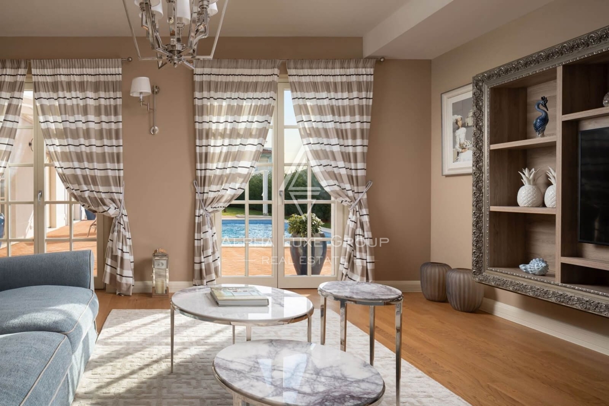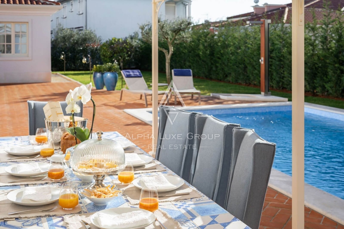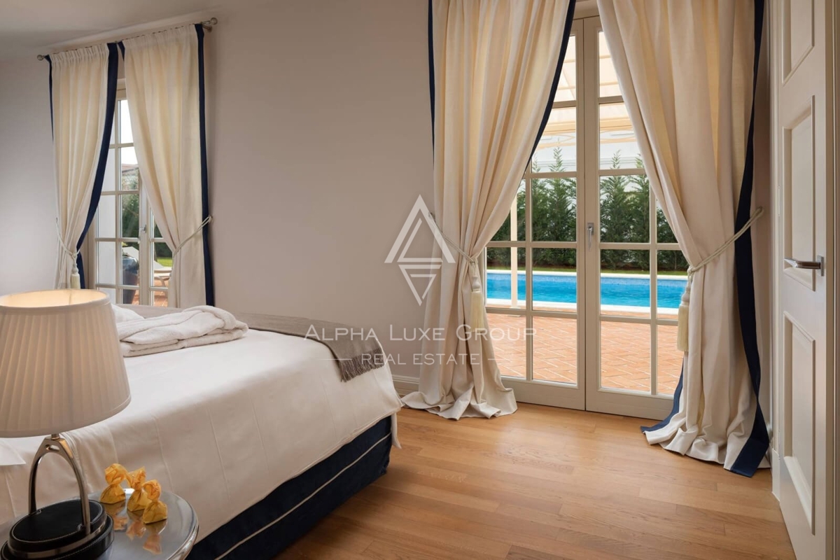 Doživite vrhunski luksuz i eleganciju u ovoj veličanstvenoj vili s 5 zvjezdica smještenoj u ekskluzivnom naselju u blizini Poreča. S prostranom stambenom površinom od 284 m², ova nekretnina utjelovljuje udobnost, stil i modernu sofisticiranost. Unutraš