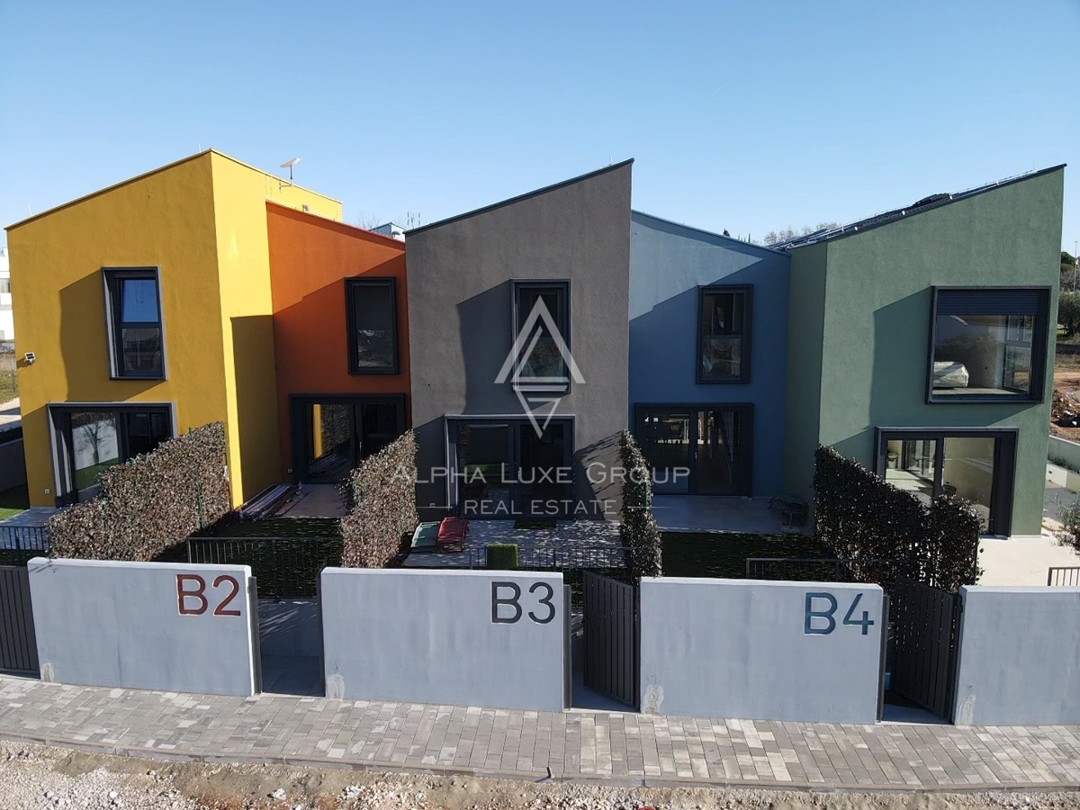 Poreč, Veli Maj: Moderne kuće u nizu s pogledom na more Otkrijte sofisticirani stambeni kompleks u području Veli Maj u Poreču, koji se sastoji od deset elegantno uređenih kuća u nizu—po pet s obje strane. Svaka kuća ima vlastiti vrt i parkirno mjesto s