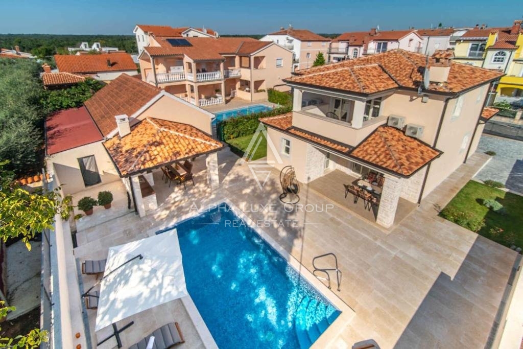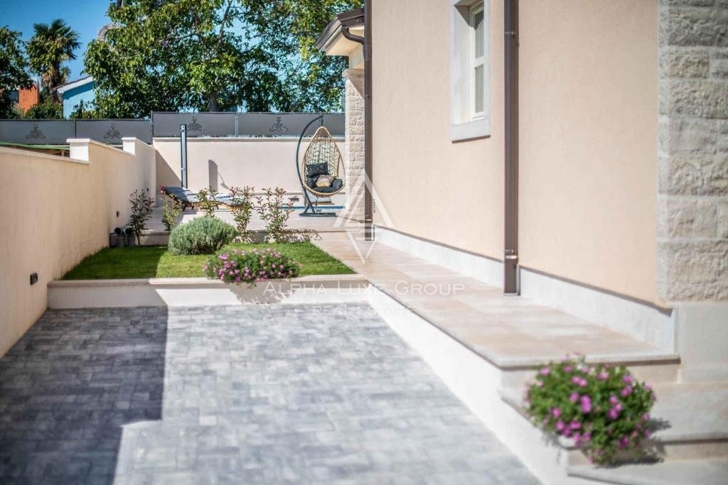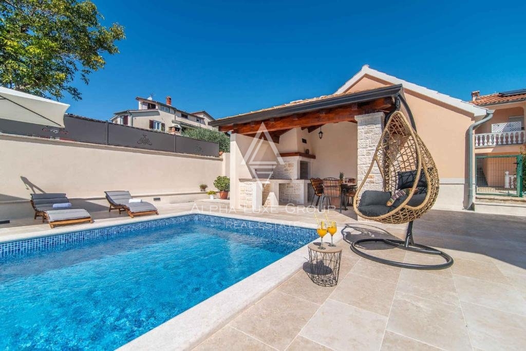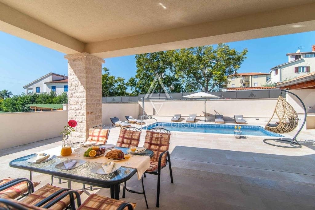 Poreč, Istra - Očaravajuća vila blizu centra grada s bazenom Na samo kamenčić od udaljenosti od živopisnog grada Poreča, svega 3.9 km, smjestila se očaravajuća vila koja se prostire na 138 m2 životnog prostora raspoređenog na dva pažljivo dizajnirana k