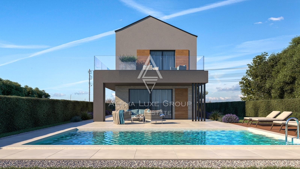 ALPHA LUXE GROUP prodaje samostojeću kuću u izgradnji s pogledom na more. Kuća se nalazi u mirnom mjestu udaljenom 12 km od centra grada Poreča te 7 km od mora i prekrasnih plaža Lanterna turističkog naselja. Kuća će se sastojati od dvije etaže: prize