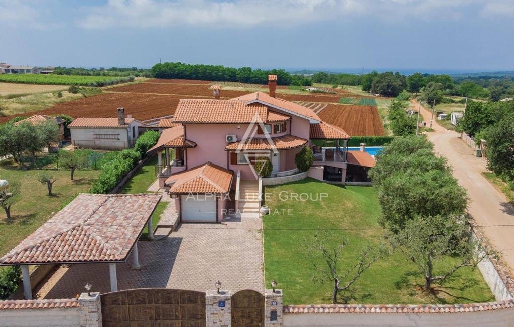 Na udaljenosti od samo 5 km od grada Poreča i njegovih prvih plaža, u malom mjestu u miru na periferiji, smjestila se ova jedinstvena vila koja će vas osvojiti na prvi pogled. Ova ljepotica površine 488m2 nalazi se na uređenoj okućnici od 1200m2, a sas
