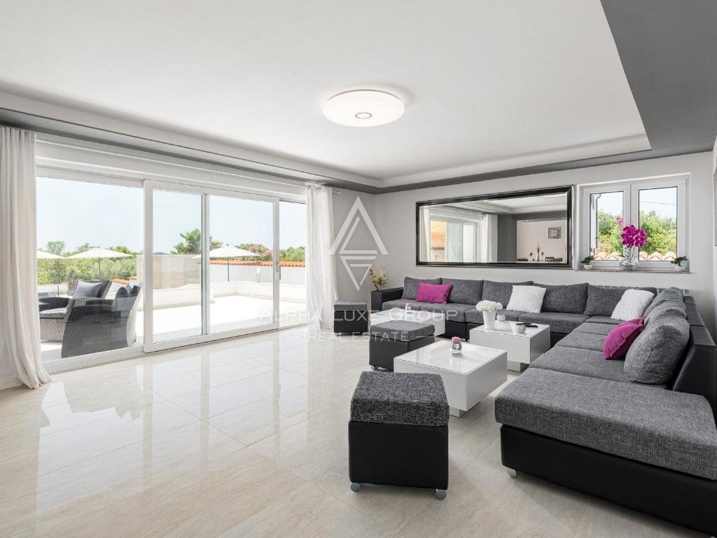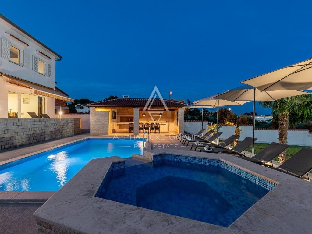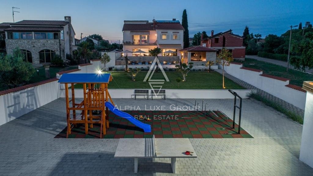 Prodaje se vila s bazenom ukupne površine 305 m2 i 1450 m2 uređene okućnice na mirnoj lokaciji u okolici Poreča. Kuća je raspoređena na dvije etaže, prizemlje i kat. U Prizemlju sastoji se od kuhinje s blagovaonicom i prostranim dnevnim boravkom, dvi