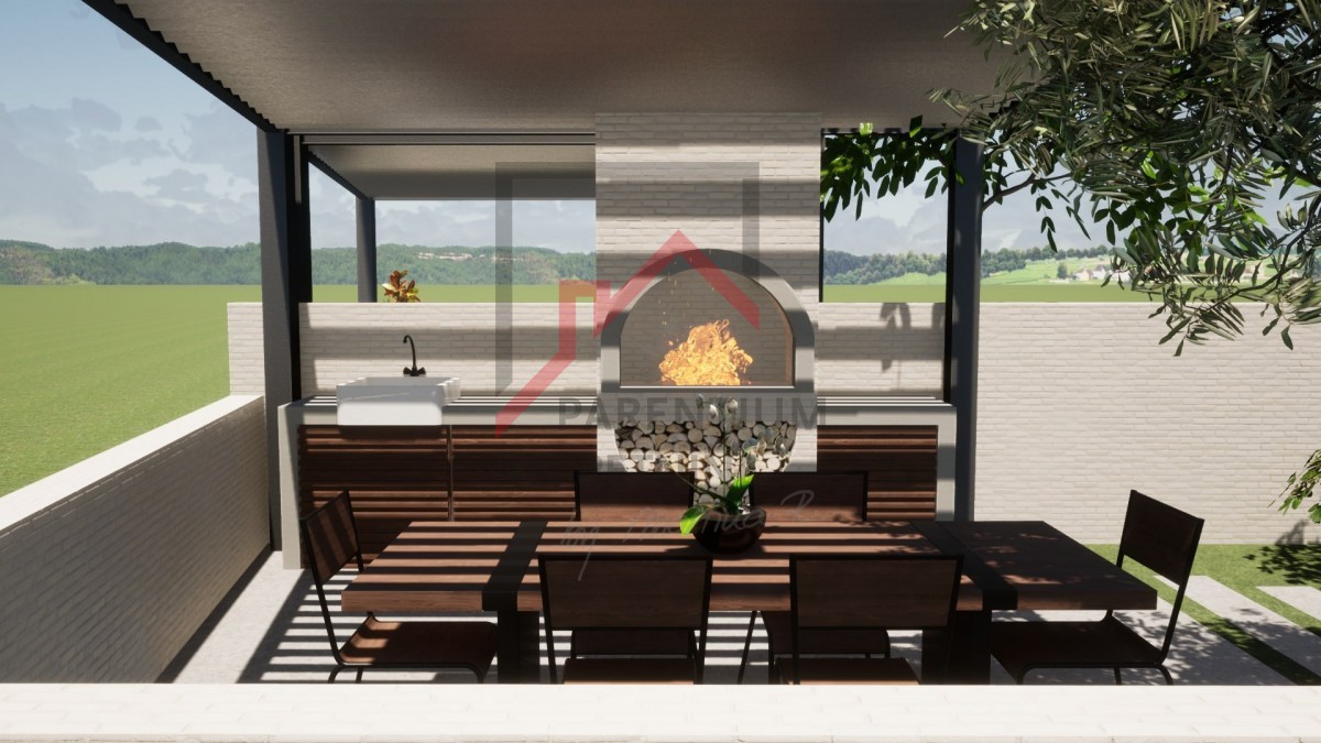 NA PRODAJU: Moderna dvojna kuća u okolici Poreča s pogledom i blizinom plaža Prodaje se prekrasna novogradnja, dvojna kuća smještena u mirnom okruženju u blizini Poreča i poznatih plaža! Ova luksuzna nekretnina nudi idealnu kombinaciju funkcionalnosti, u