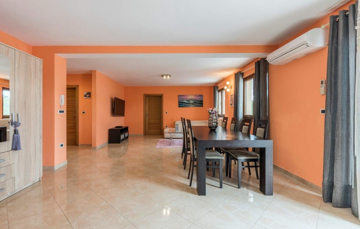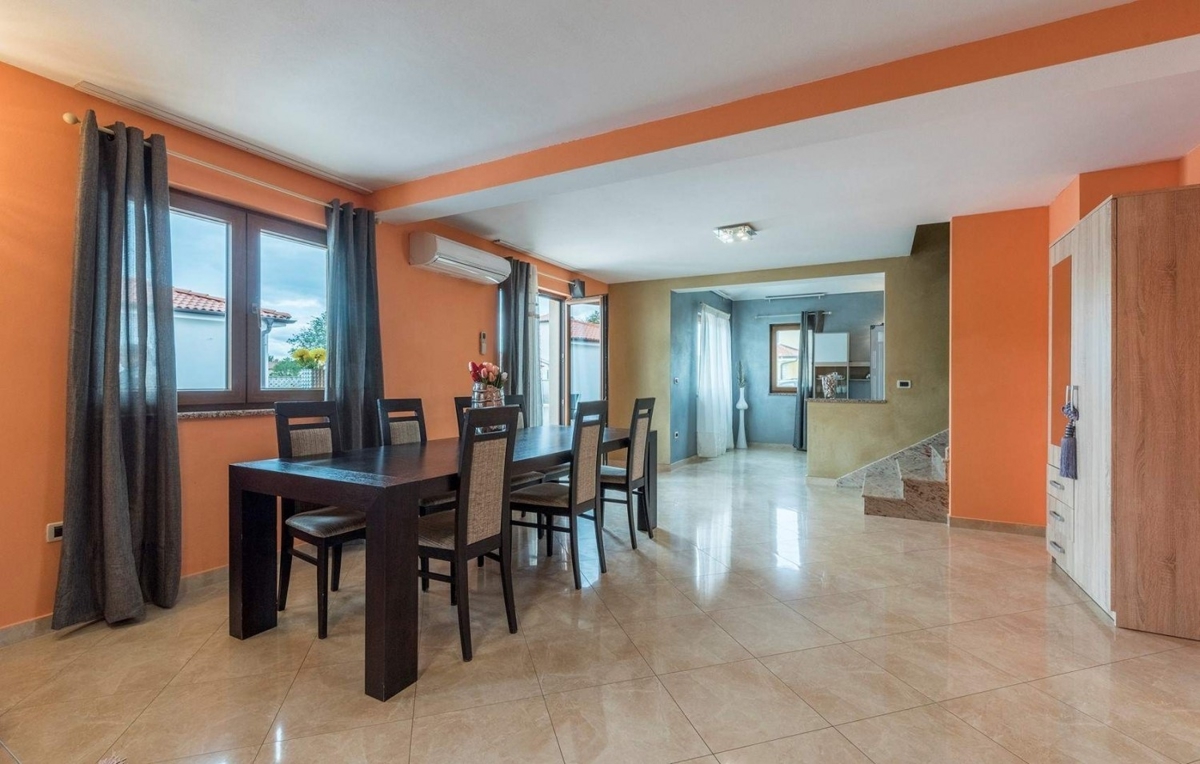 Samostojeća kuća sa bazenom od ca 150 m2 u okolici Poreča, udaljena od mora cca 5 km, a od Poreča cca 7 km. Prizemlje: dnevni boravak s kuhinjom i blagovaonom, jedna spavaća soba i jedna kupaonica- Kat: dvije spavaće sobe, jedna kupaonica i balkon. Grijan