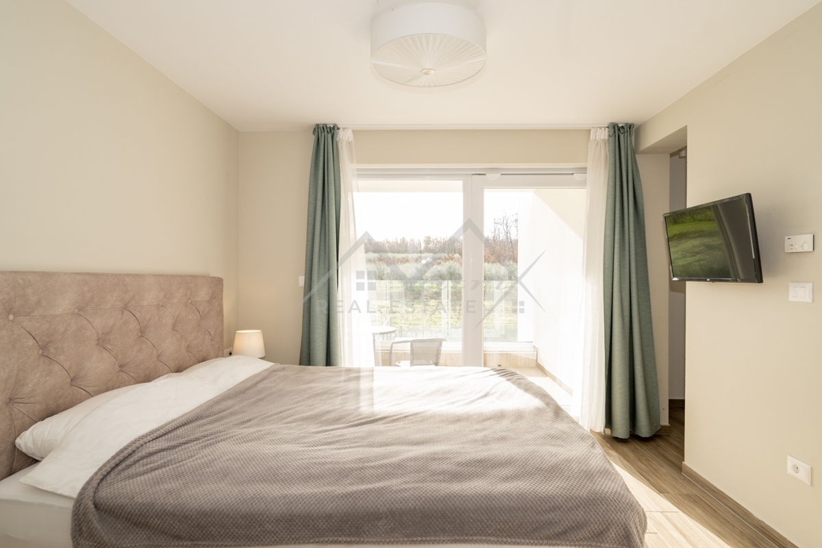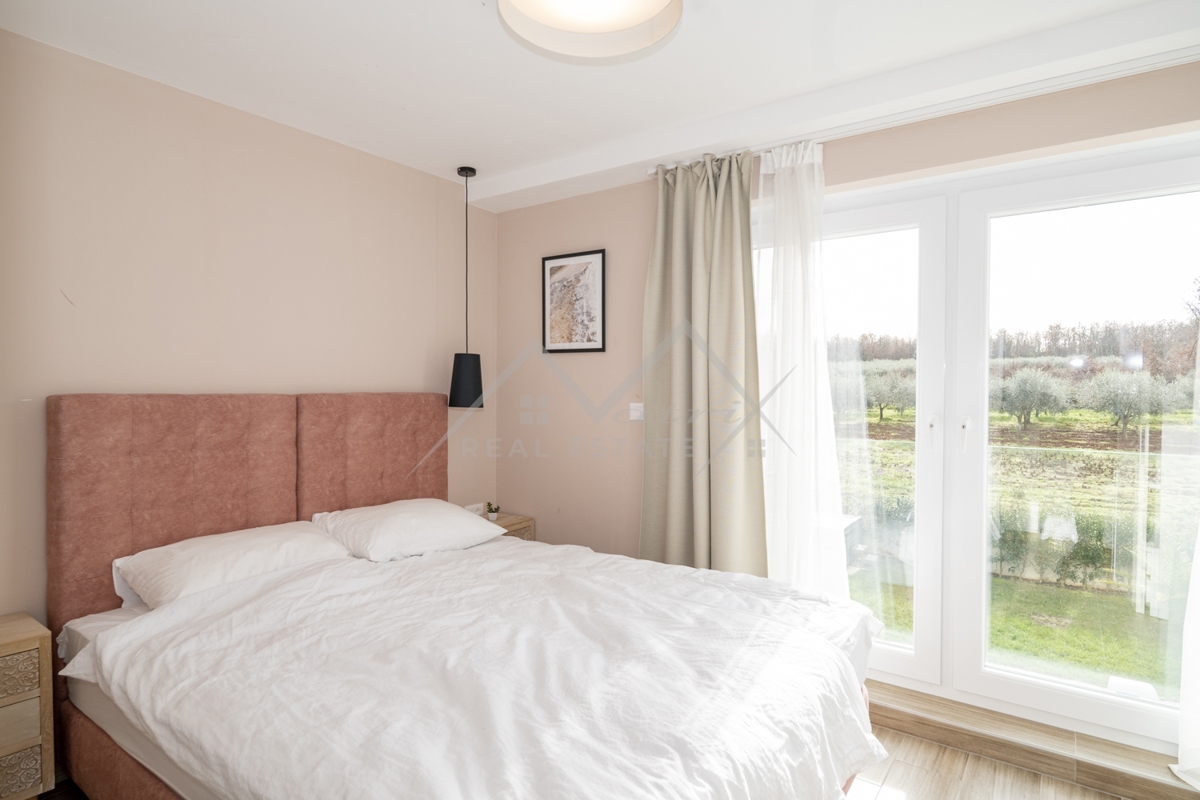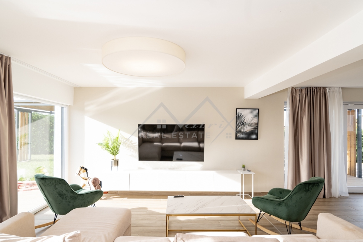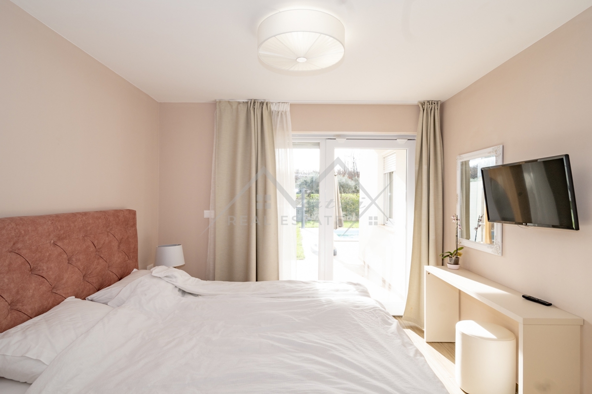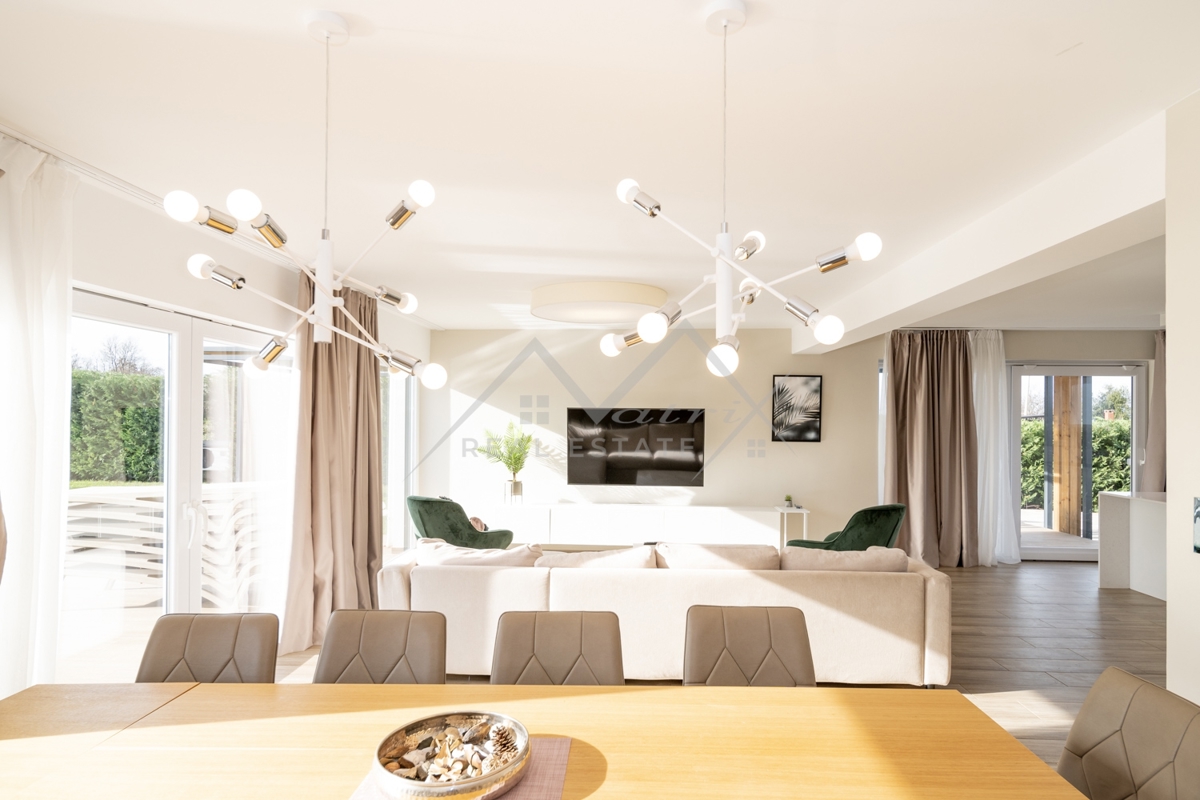 Okolica Poreča Predstavljamo vam doista jedinstvenu, moderno i luksuzno namještenu dvojnu vilu s privatnim bazenom, smještenu u mirnom predgrađu samo 5 km od živopisnog centra grada i prekrasnih plaža Poreča. Smještena na parceli od 800 m², ova nekretnin