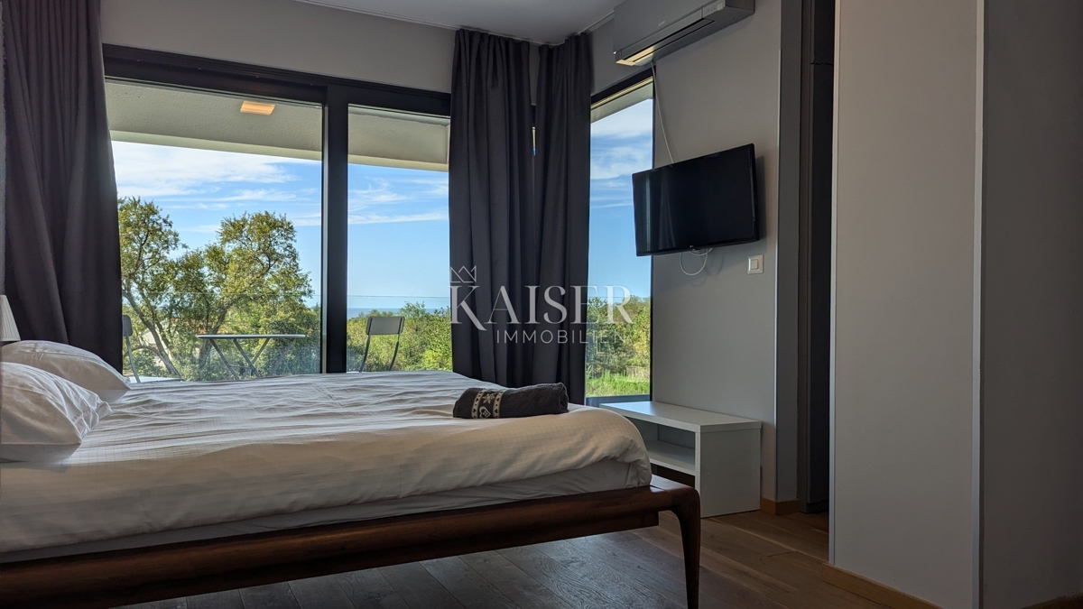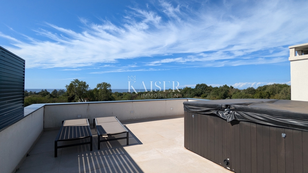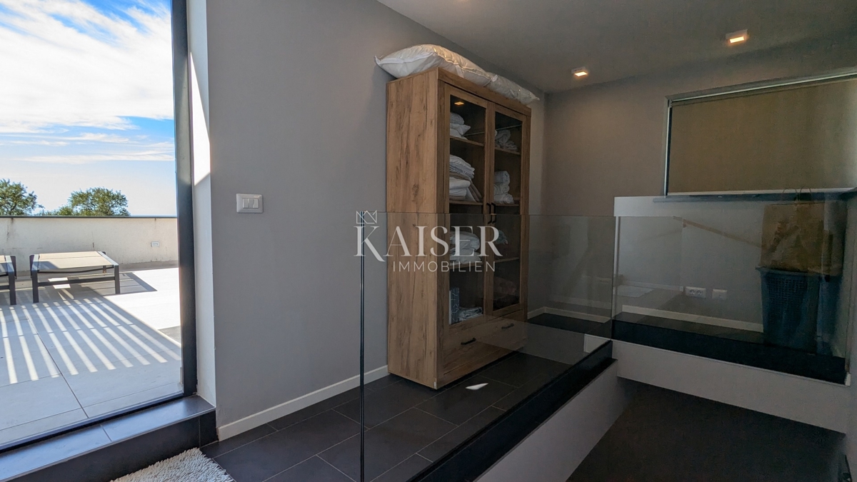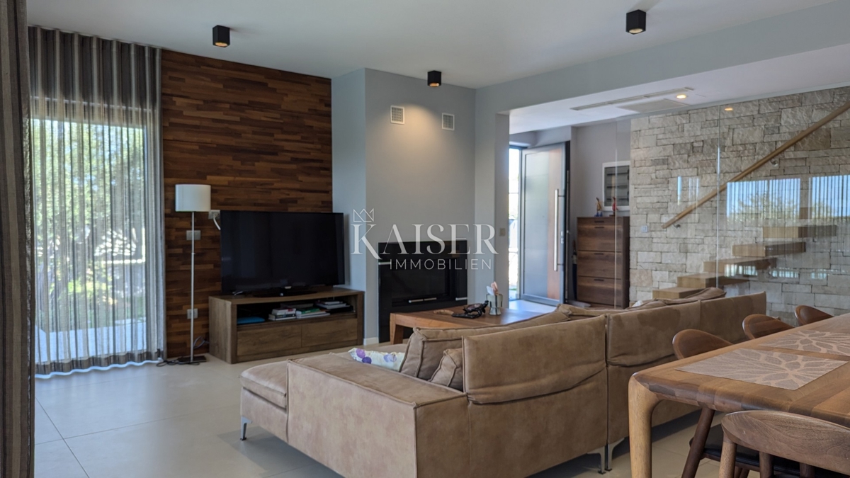 Kaiser Immobilien nudi u prodaju jedinstvenu priliku, luksuznu i namještenu vilu sa bazenom i saunom na top lokaciji grada Poreča. Vila je udaljena samo 500 m od mora i prvih plaža, na granici zelenog pojasa sa predivnim pogledom na more i prirodu oko se