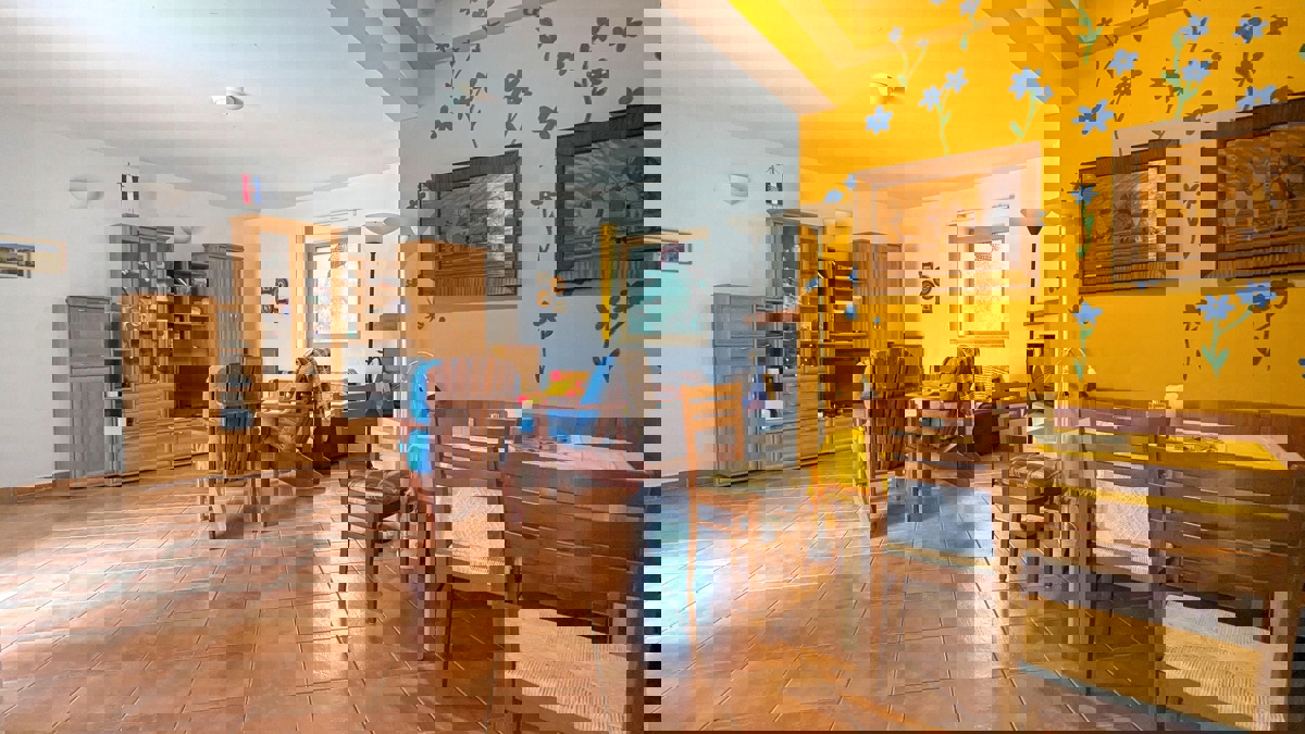 Prodaje se prekrasna kuća u blizini Poreča, udaljena svega 4 km od grada i 2 km od mora, idealna za udoban život u mirnom okruženju.U prizemlju se nalazi prostrani dnevni dio s kaminom, kuhinja, kupaonica, te spavaća soba i garaža.Podrum nudi dodatni pros