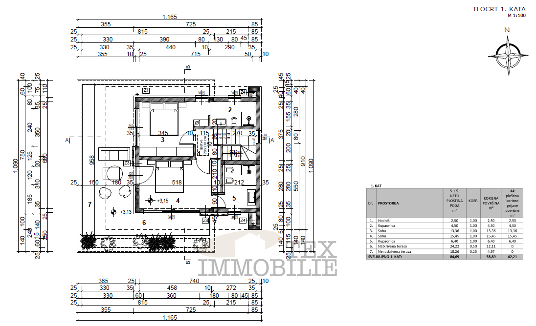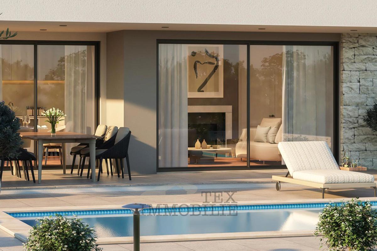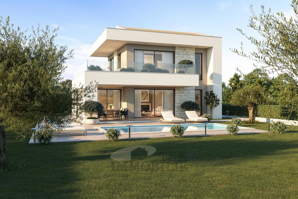 Prodaje se moderna vila u fazi Roh Bau, smještena u mirnom naselju, svega 17 km od Poreča i mora. Vila se prostire na dvije etaže s ukupnom površinom od 107 m², dok je bazen veličine 33 m². Sastoji se od hodnika, kupaonice, tehničke sobe, prostranog dnevn