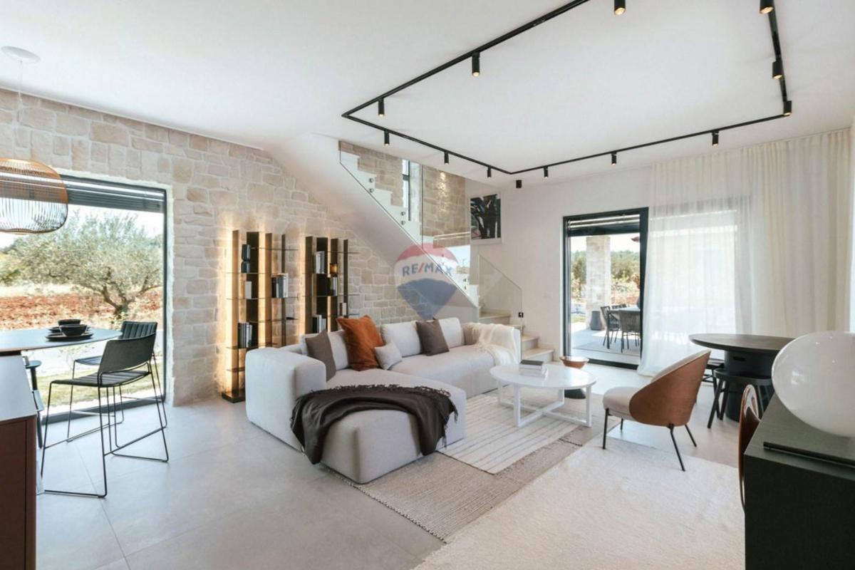 Istra, Poreč okolica - luksuzna kuća s pogledom na more RE/MAX Centar nekretnina iz svoje ponude izdvaja ovu prekrasnu, namještenu, novu, luksuznu kamenu kuću ukupne površine 165 m2 na zemljištu površine 584 m2. Ova impozantna kamena villa nalazi se u ok