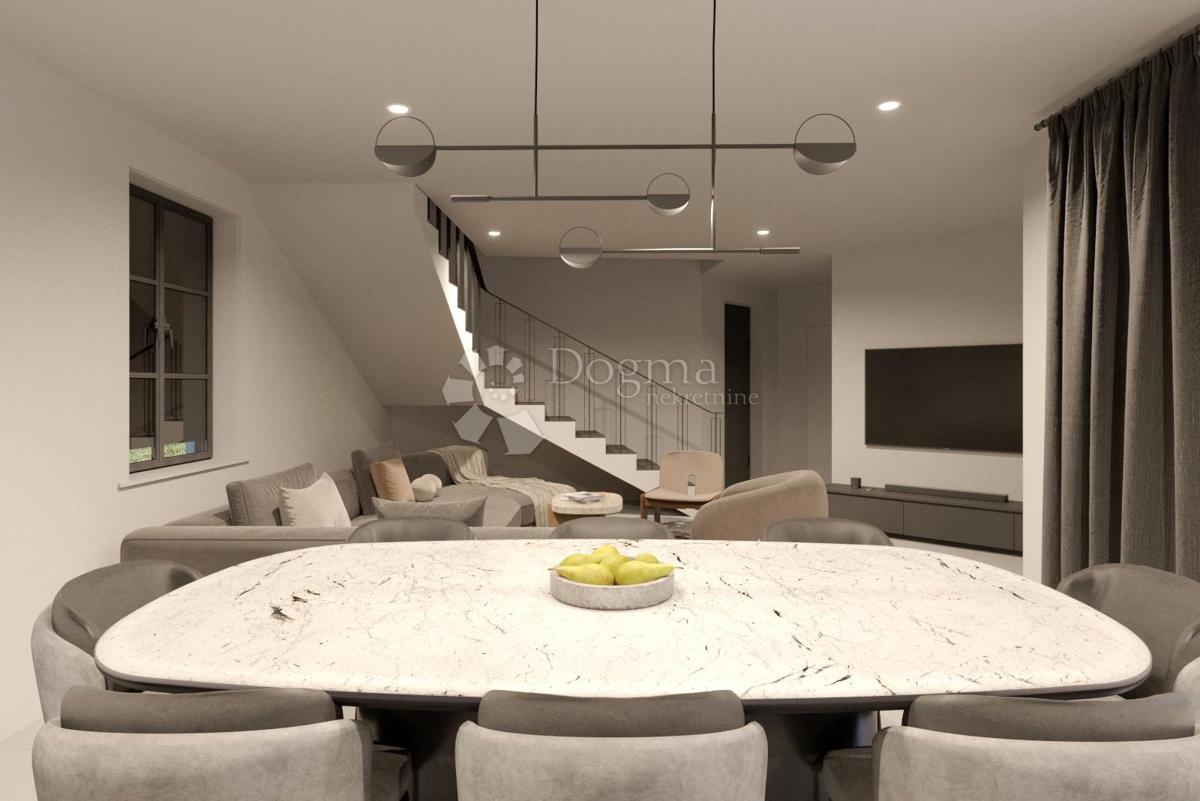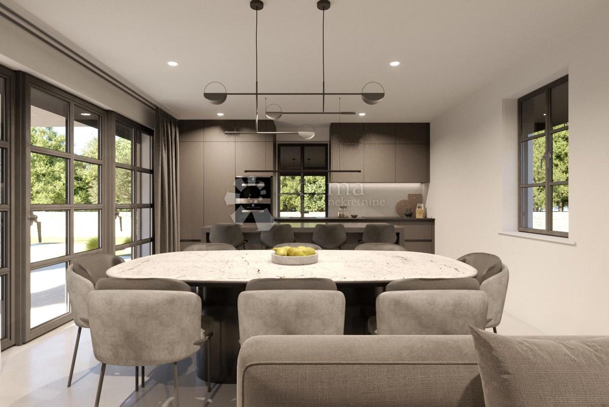 Ova moderna kuća u okolici Poreča, smještena na parceli od 778 m², pruža savršen spoj udobnosti i funkcionalnosti. S ukupnom površinom od 171 m², kuća se prostire na dvije etaže, a nalazi se u mirnom naselju na prekrasnoj lokaciji, idealnoj za obiteljski
