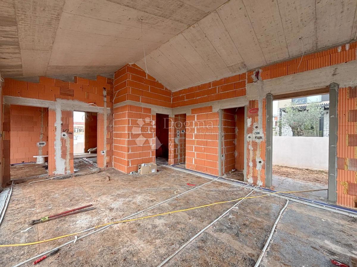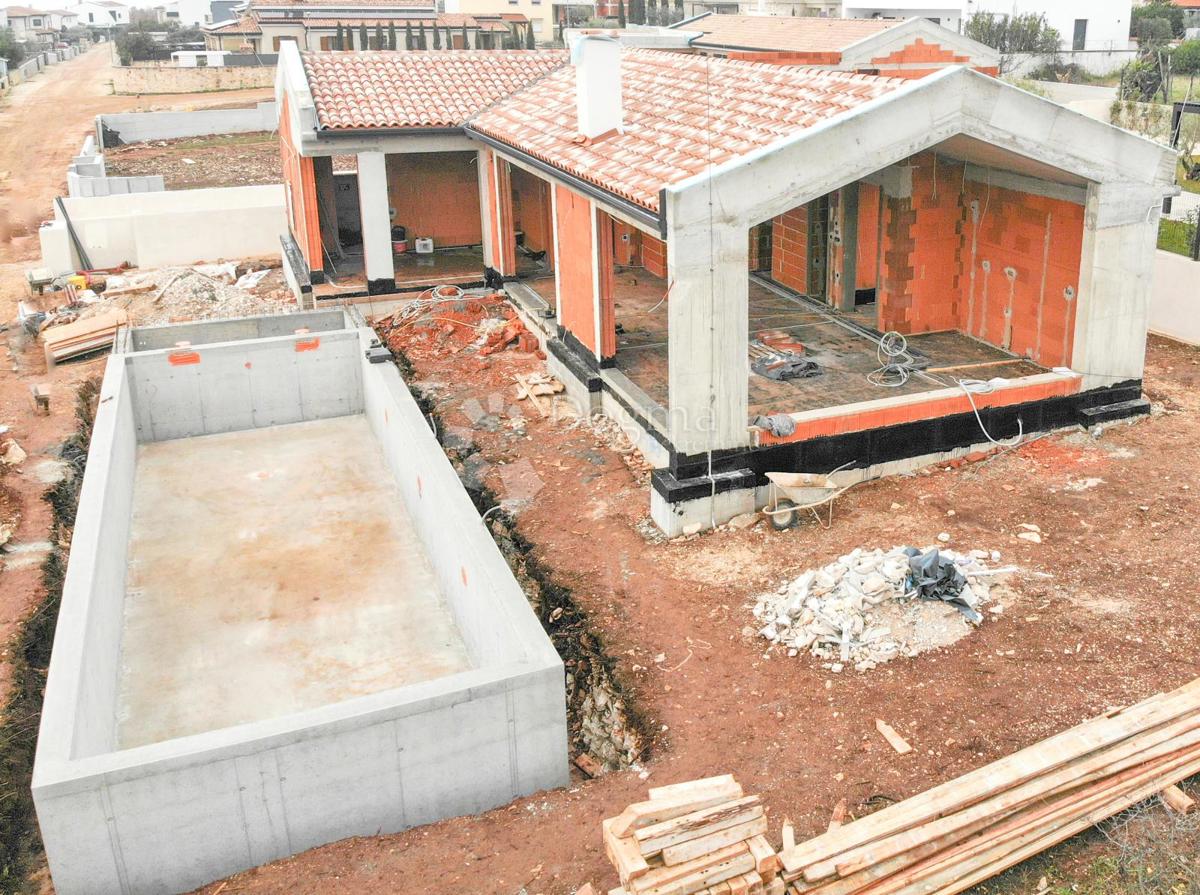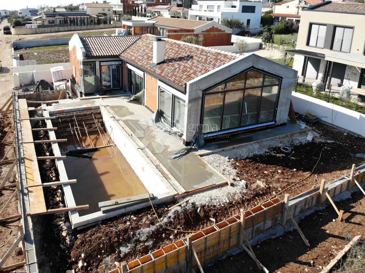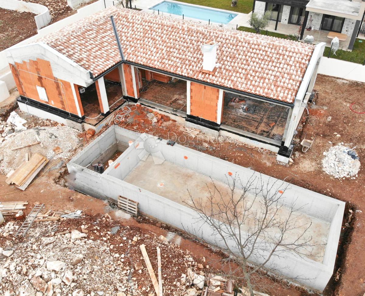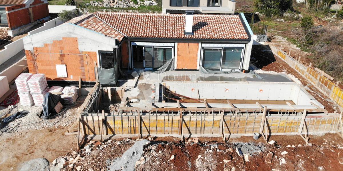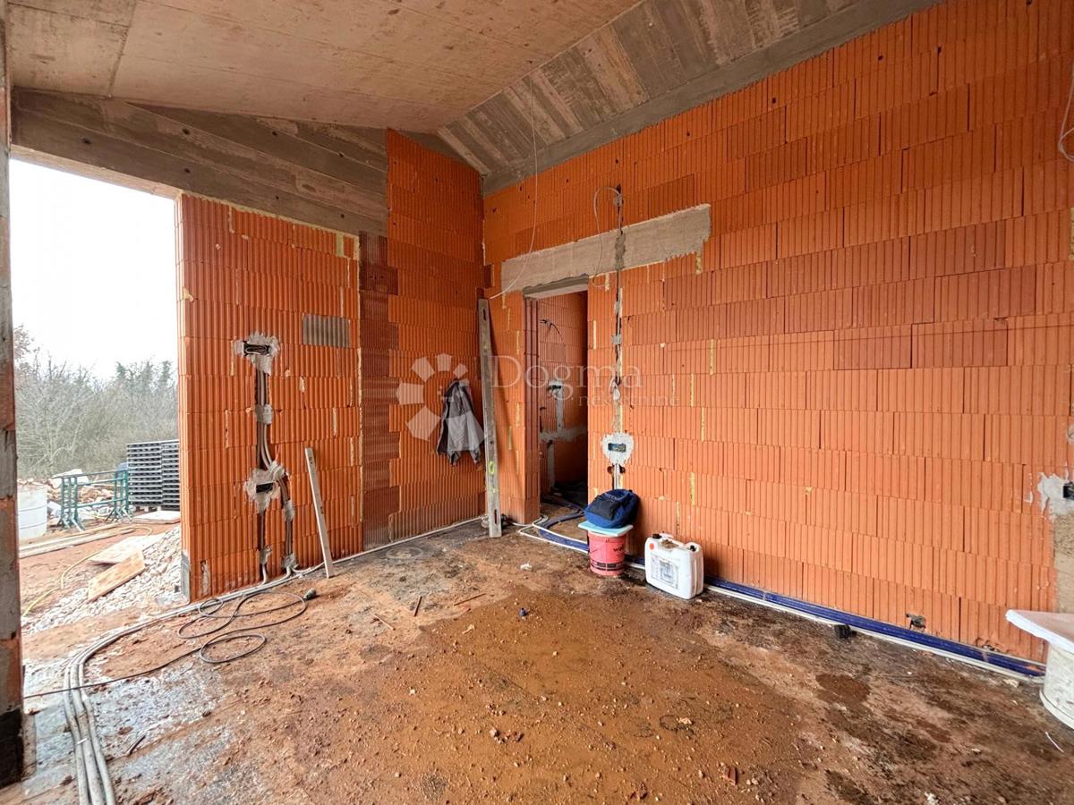 Ova moderna vila smještena u okolici Poreča, na rubu građevinske zone, prostire se na 130 m², uz okućnicu od 500 m², i nudi prekrasan pogled na netaknutu prirodu. Vila je dizajnirana kao prizemnica, a centralni dio kuće čini prostrani "open space" prostor
