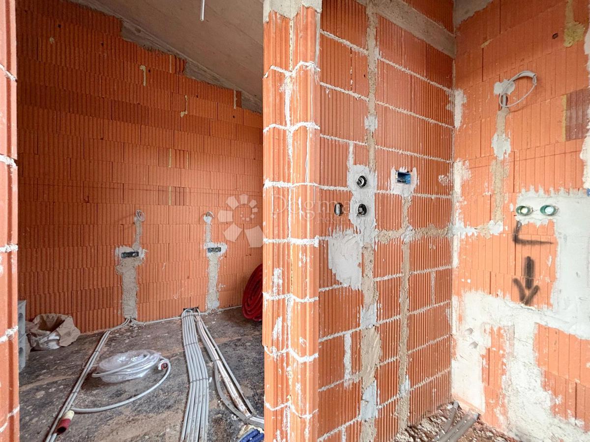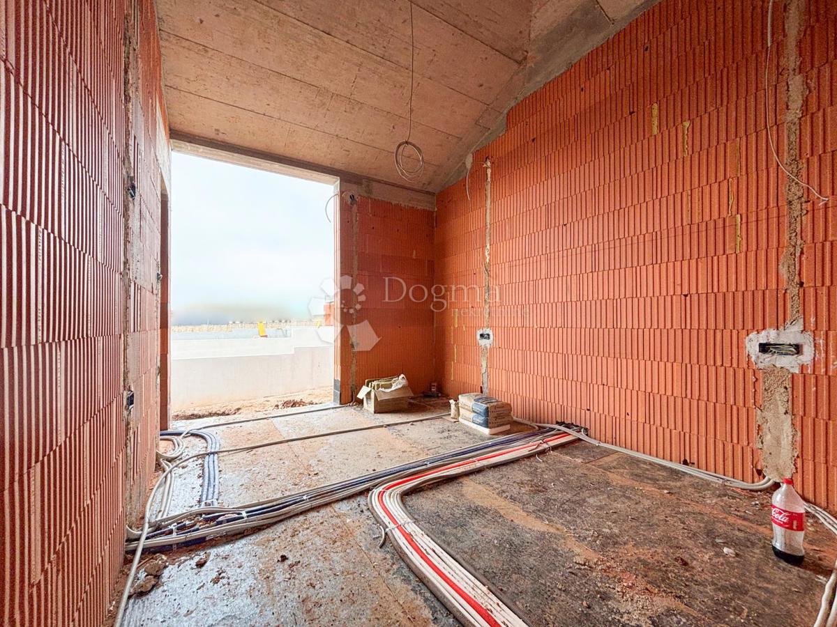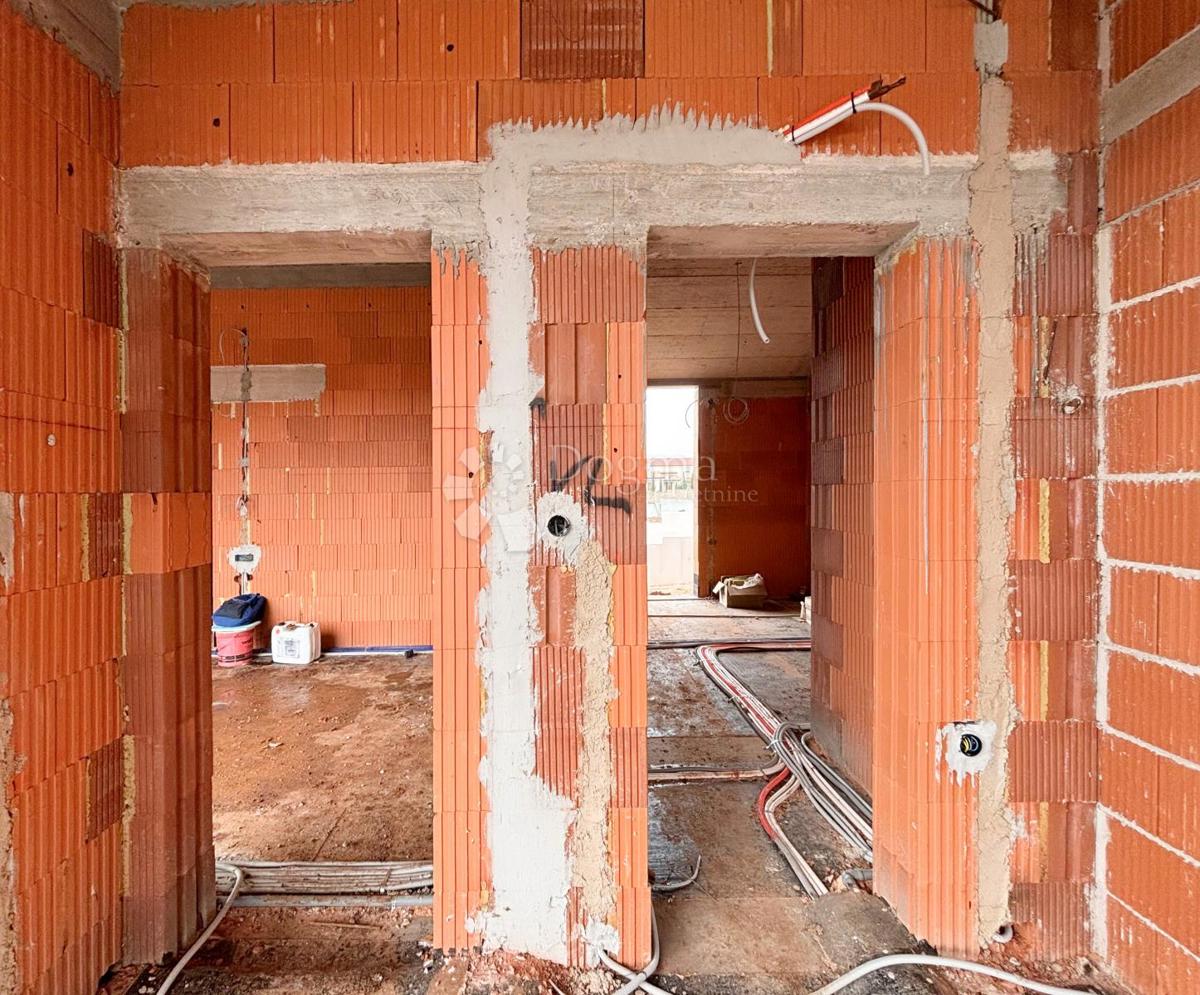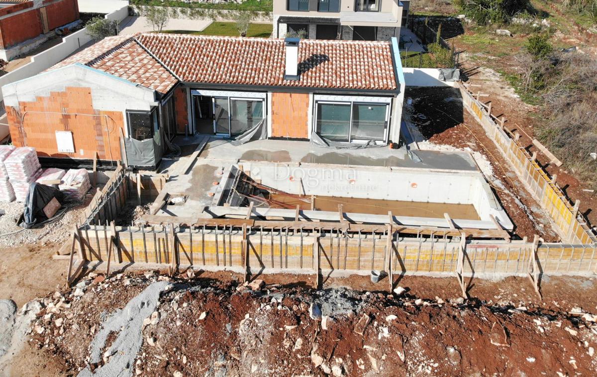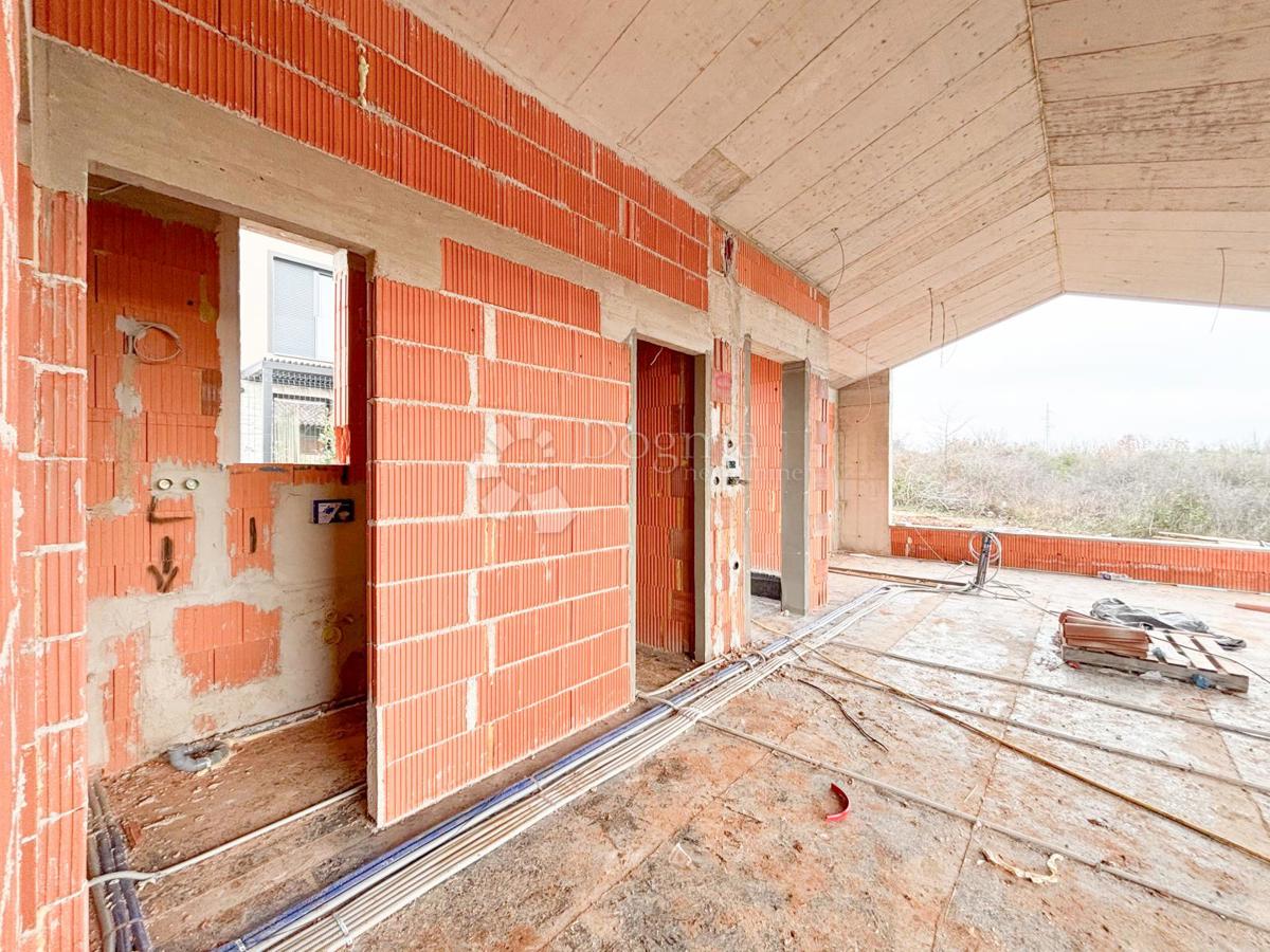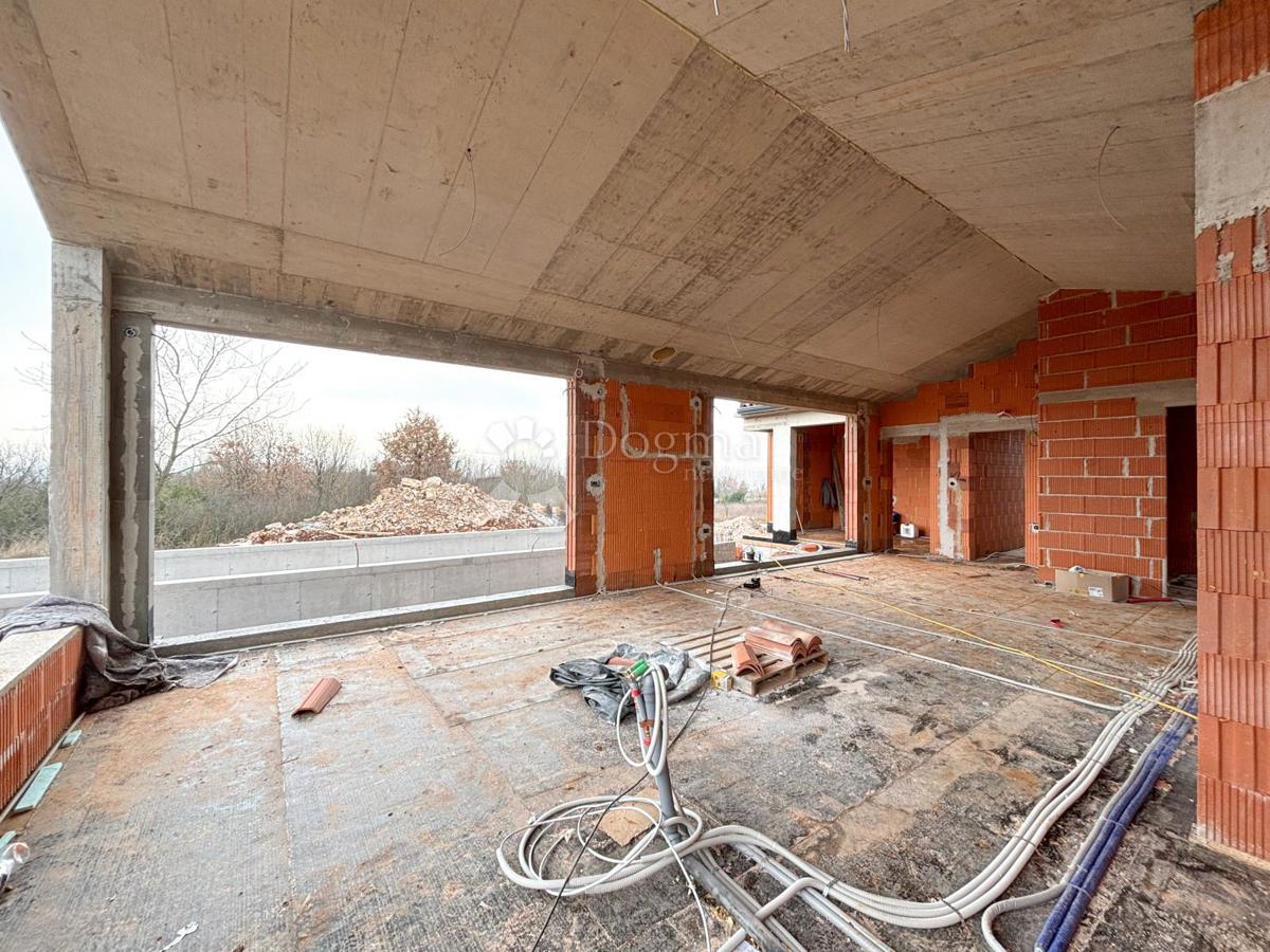 Ova moderna vila smještena u okolici Poreča, na rubu građevinske zone, prostire se na 130 m², uz okućnicu od 500 m², i nudi prekrasan pogled na netaknutu prirodu. Vila je dizajnirana kao prizemnica, a centralni dio kuće čini prostrani "open space" prostor