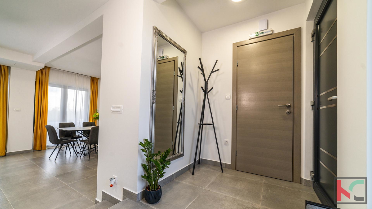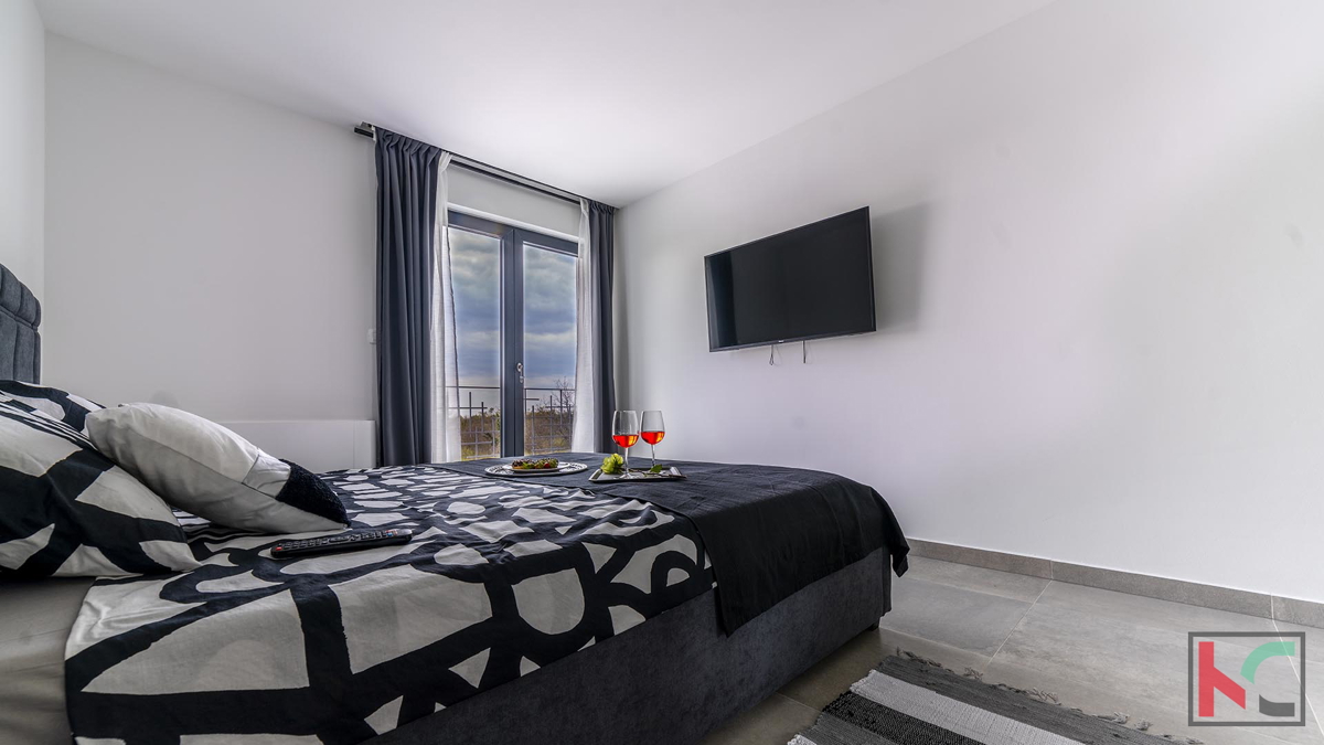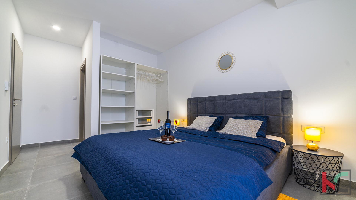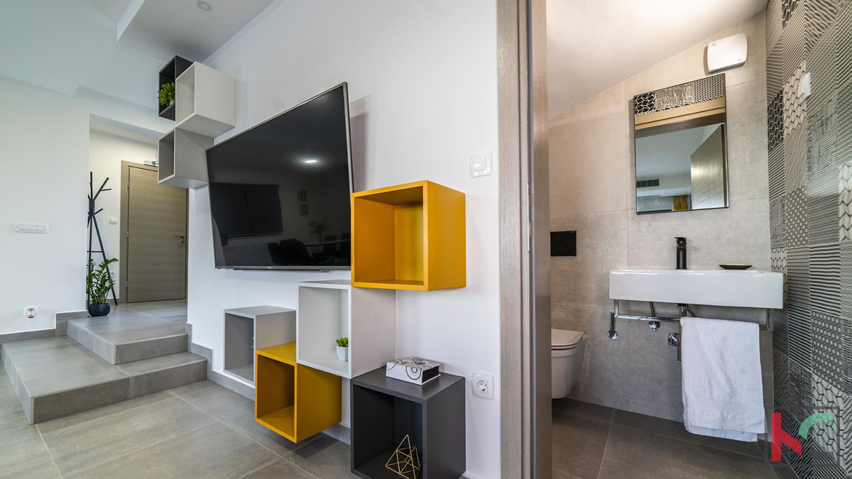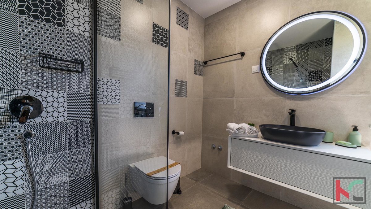 Prodaje se moderna vila u okolici Poreča, na mirnoj lokaciji udaljenoj na samo pet kilometara od centra i uređenih plaža. Prostire se na dvije etaže, ukupne površine 204 m2. Prizemlje se sastoji od ulaznog hodnika, prostranog dnevnog boravka sa izlazom n