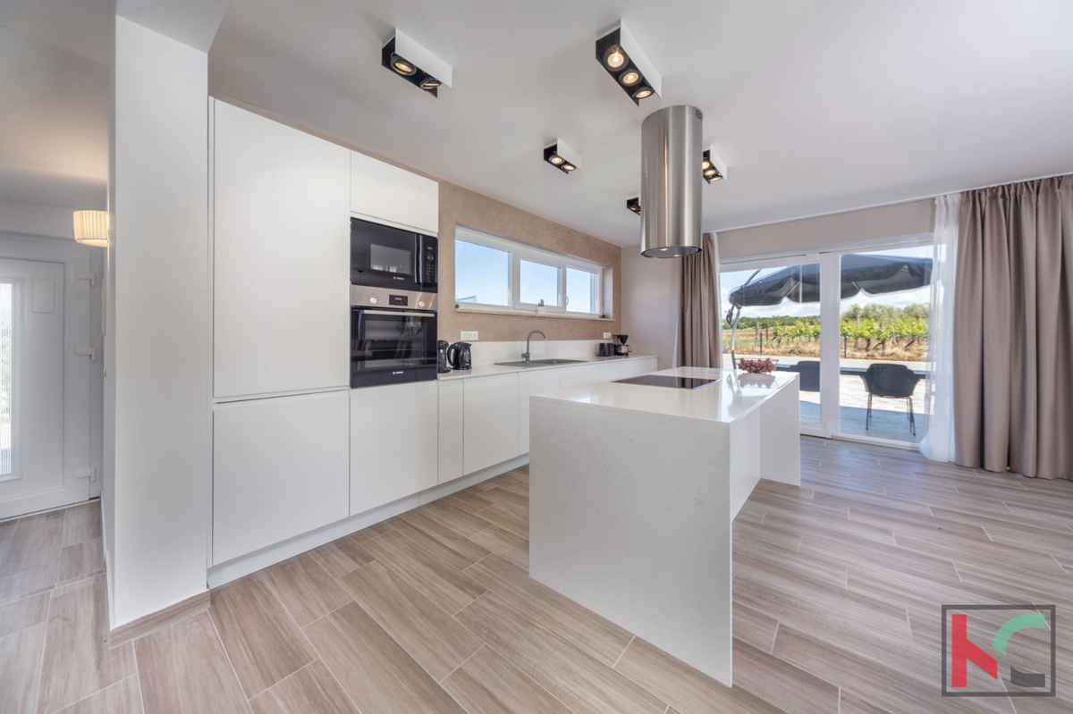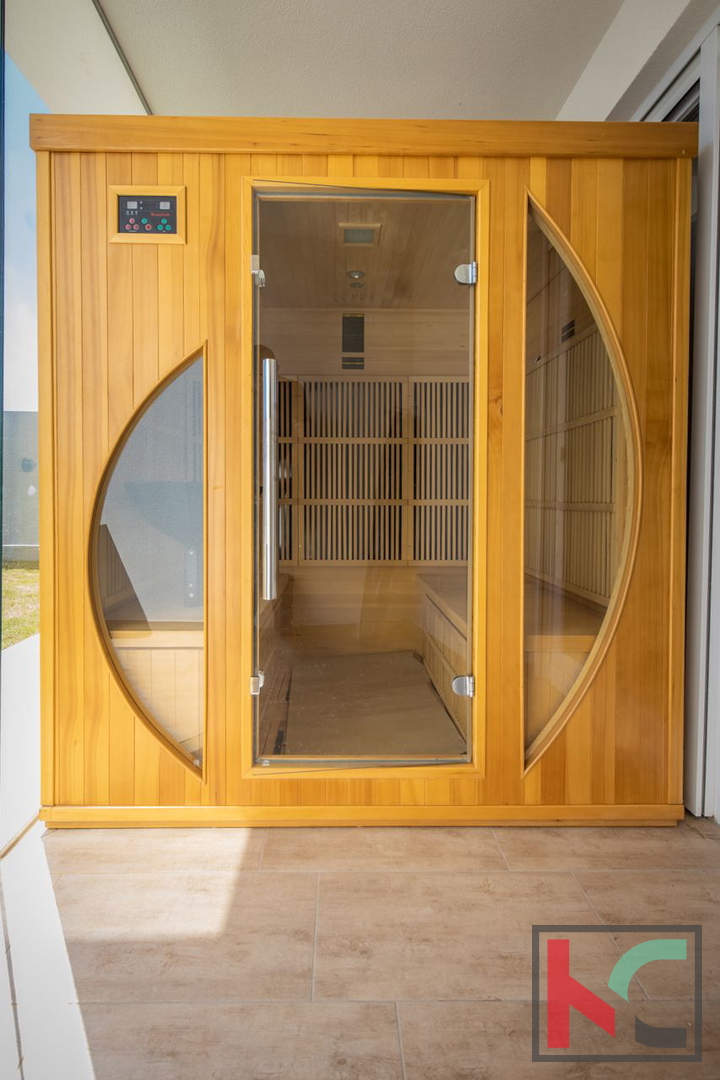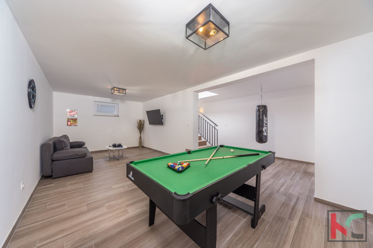Prodaje se luksuzna vila u blizini Poreča, na samo pet kilometara od uređenih plaža. Prostire se na četiri etaže, ukupne površine 282,96 m2. U podrumu nalazimo prostor za vježbu i razonodu, opremljen biljarom, pikadom, vrećom za boks itd. Prizemlje se sa