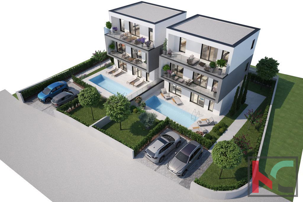 Prodaje se vila u izgradnji u okolici Poreča s prekrasnim pogledom na more. Prostire se na tri etaže, ukupne stambene površine 149 m2. U prizemlju nalazimo ulazni hodnik, wc, spremište i "open-space" dnevni boravak s blagovaonicom i kuhinjom iz