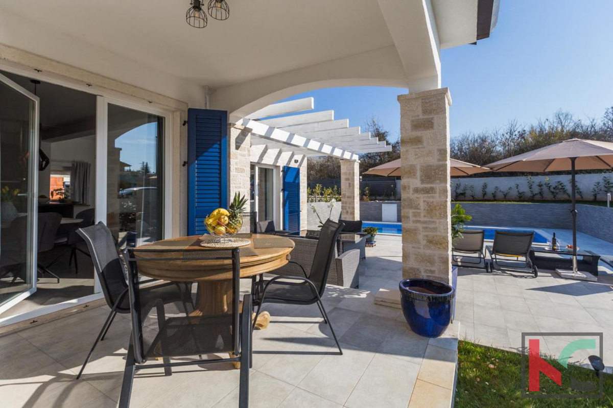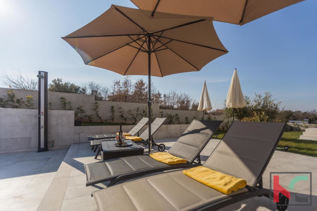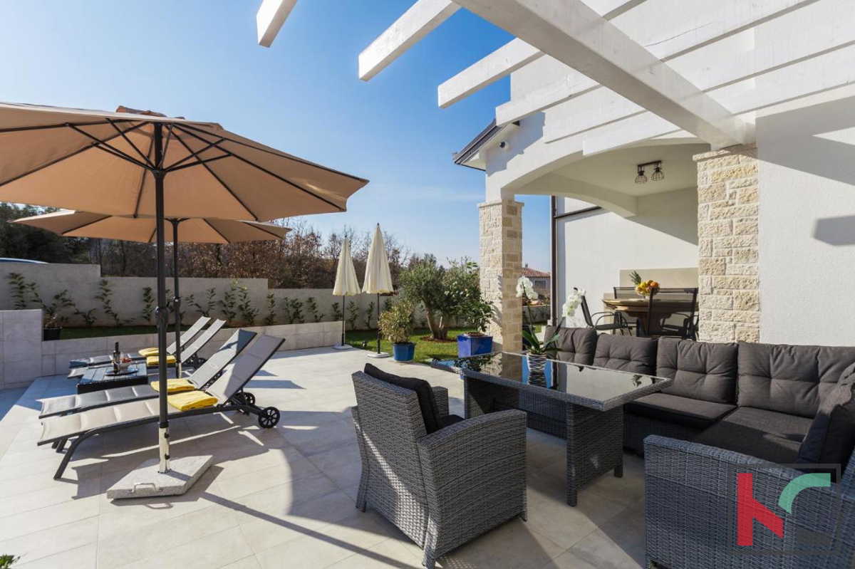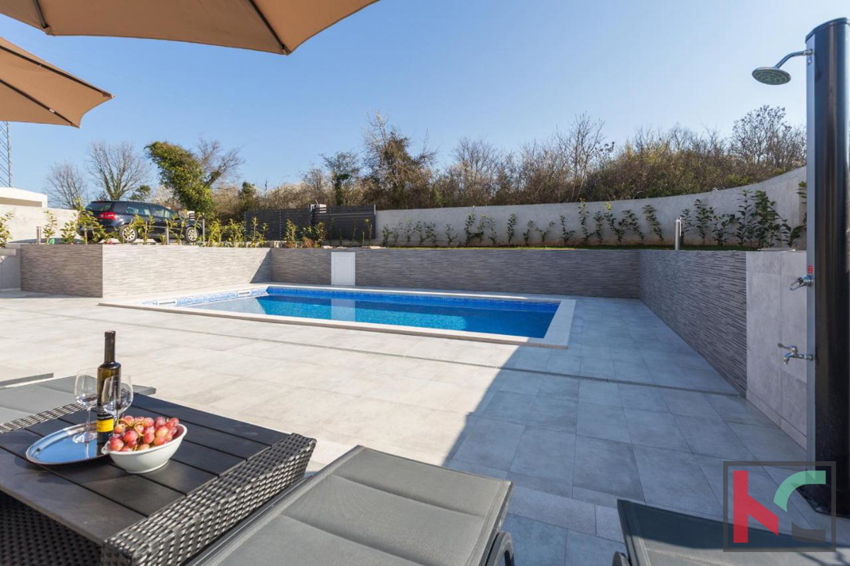 Istra, Tar, nedaleko gradova Poreča i Novigrada, prodaje se moderna i urbana vila sa bazenom. Smještena je na pažljivo uređenoj okućnici od 628m2 u "društvu" nekolicine modernih kuća za odmor. Proteže se na dvije etaže ukupne stambene površine