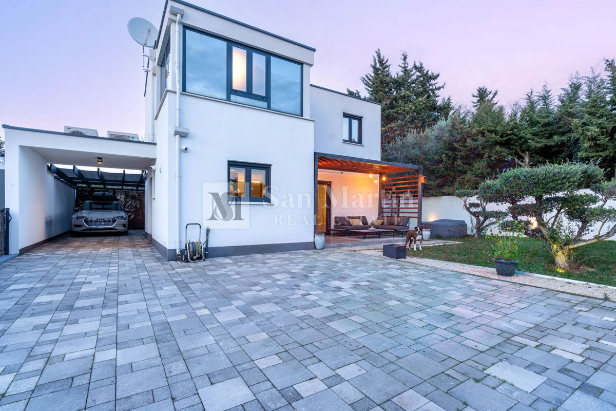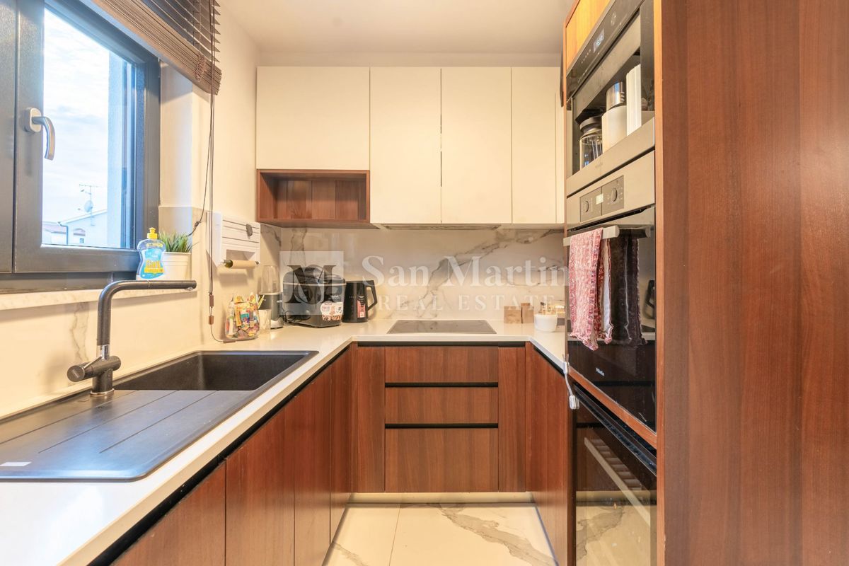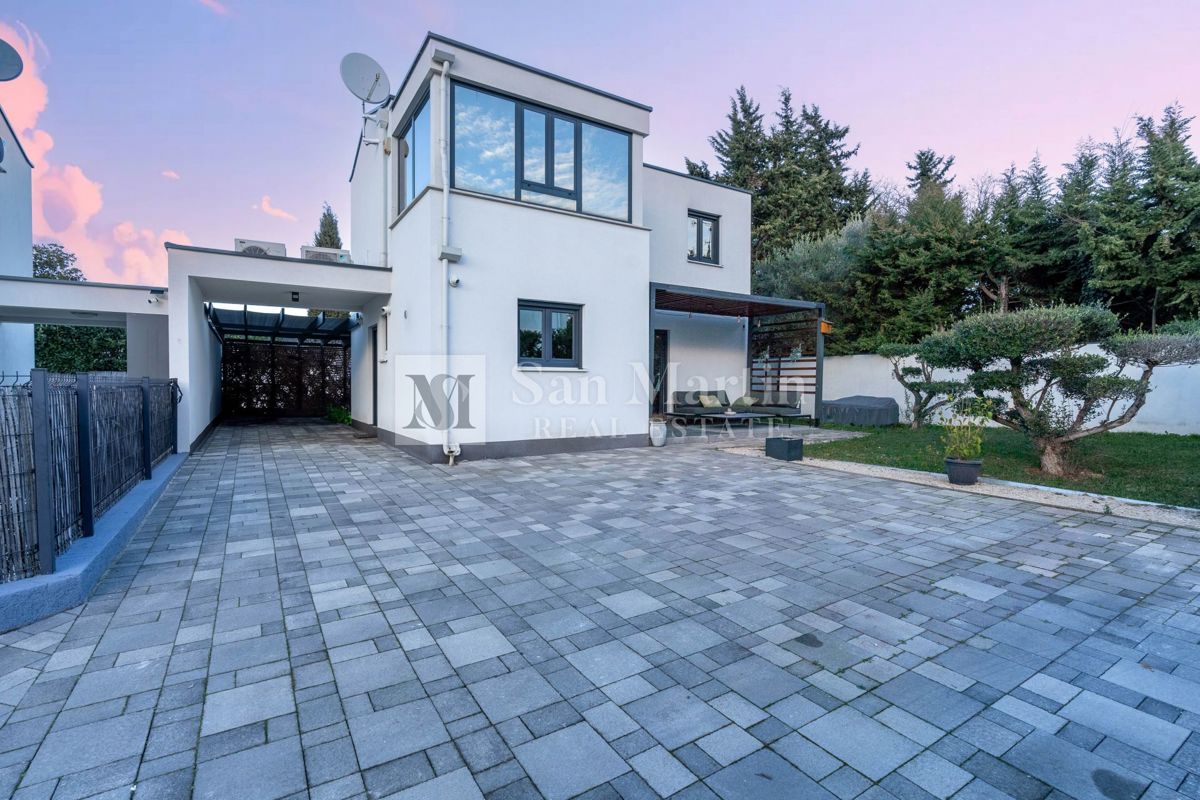 Poreč, blizina grada i mora, Nedaleko od Poreča i njegovih plaža prodaje se ova moderno izgrađena kuća. Nalazi se u slijepoj ulici mjesta, pa stoga je lokacija vrlo mirna i opuštajuća. U blizini se može naći sve potrebno za obiteljski život i zabavu. Ul