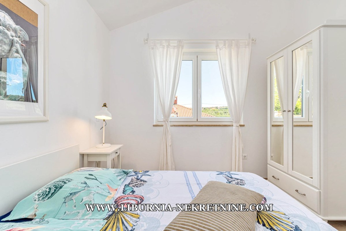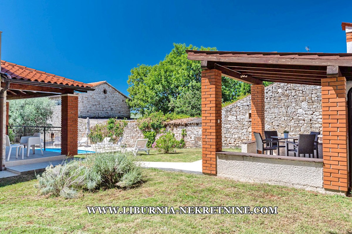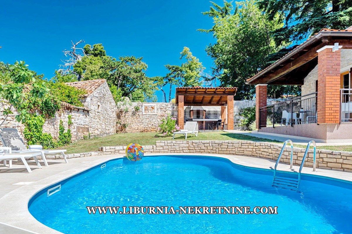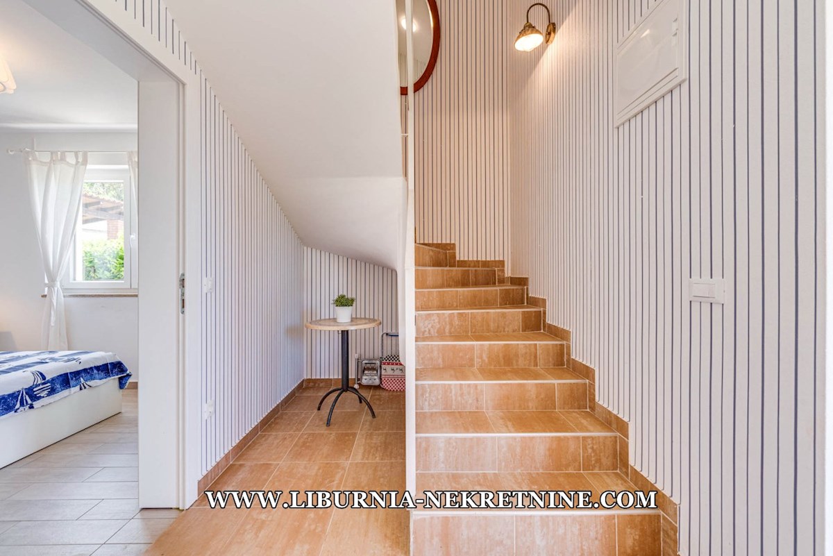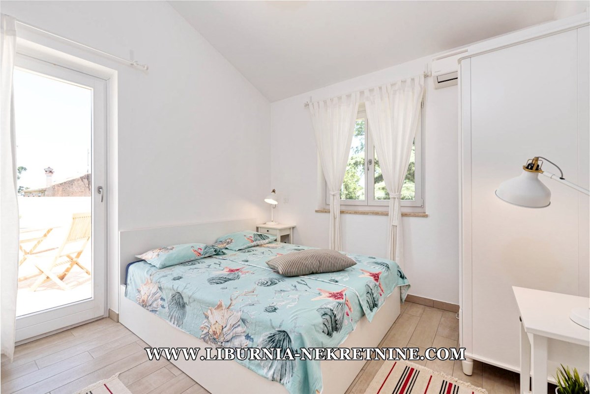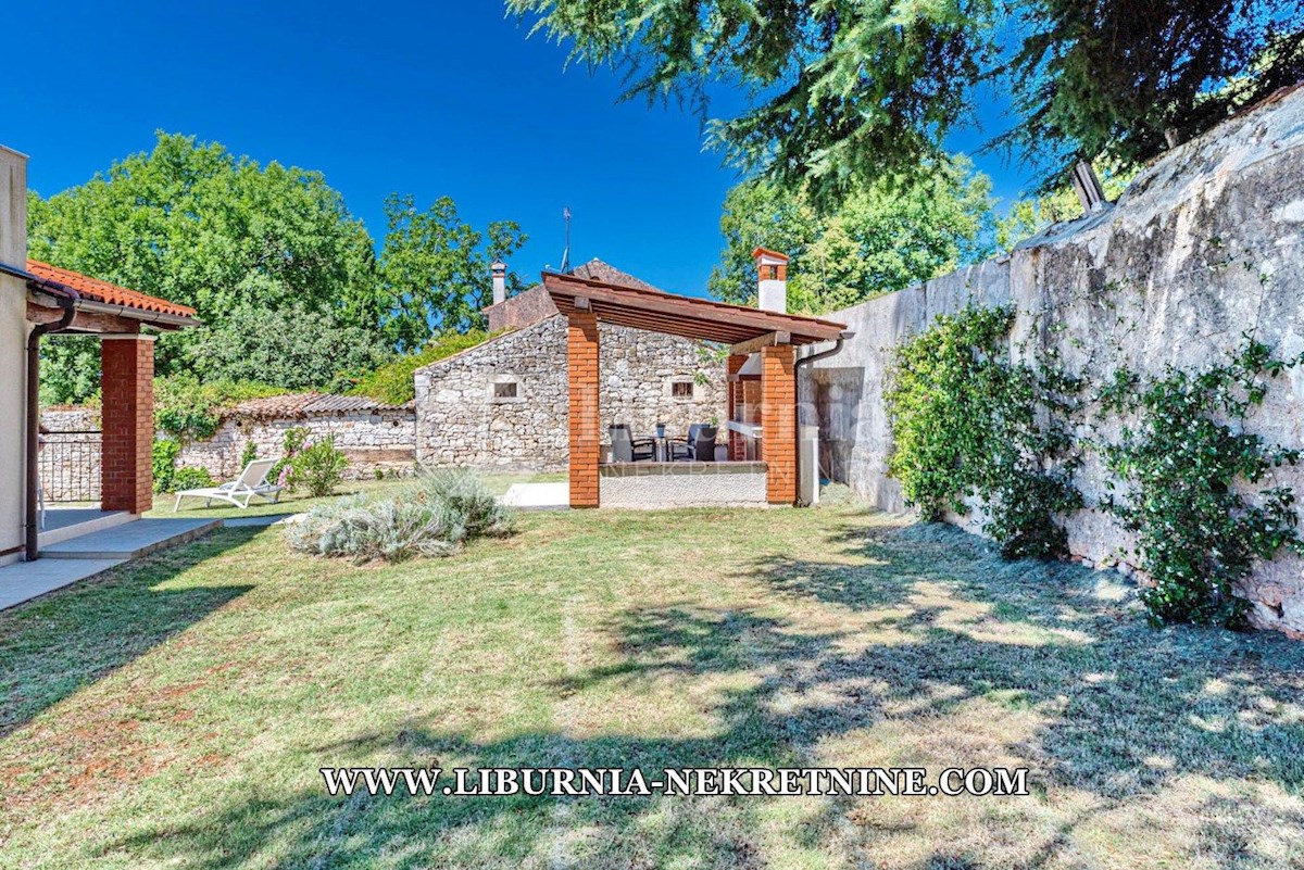 Poreč, šira okolica. Samostojeća kuća stambene površine 150 m2, sagrađena na parceli površine 768 m2, sastoji se od: -Prizemlje: dnevni boravak s kuhinjom i blagovaonicom, spavaća soba,gostinjski toalet, natkrivena terasa sa izlazom na okućnicu. -Kat: d