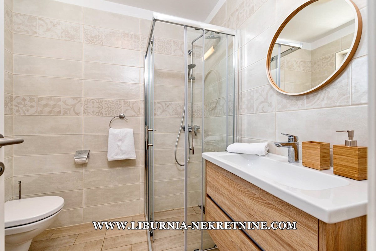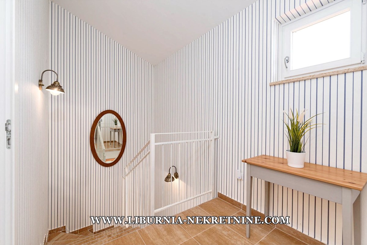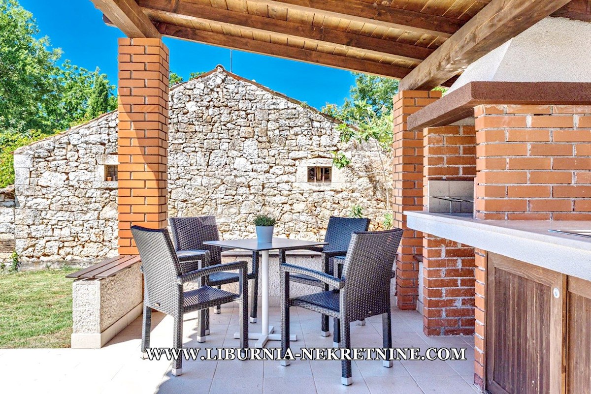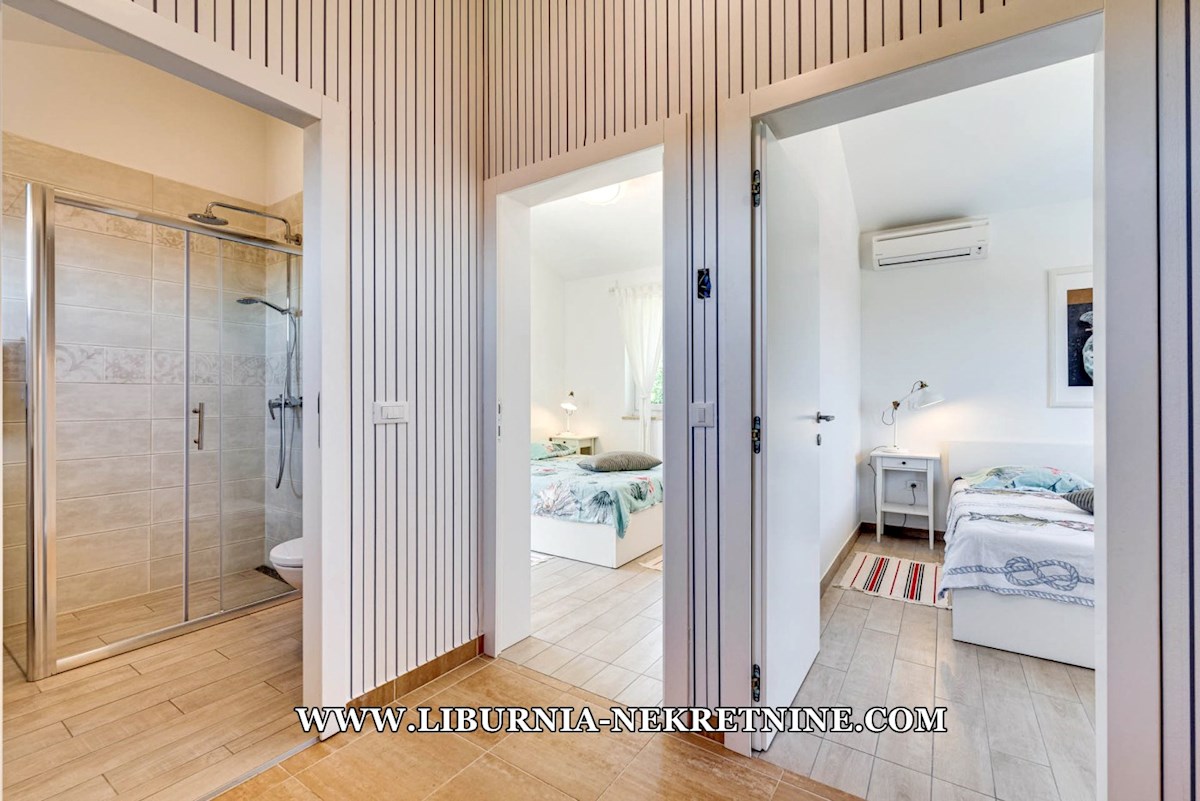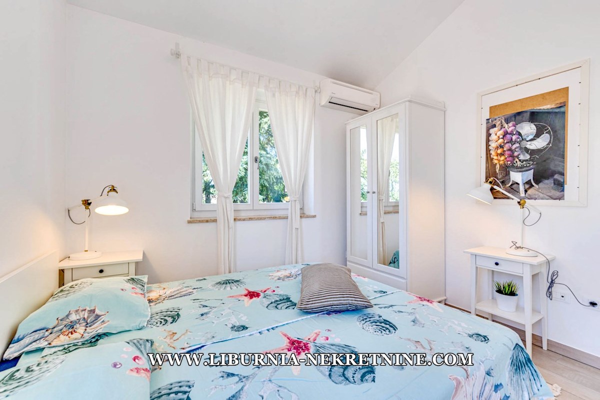 Poreč, šira okolica. Samostojeća kuća stambene površine 150 m2, sagrađena na parceli površine 768 m2, sastoji se od: -Prizemlje: dnevni boravak s kuhinjom i blagovaonicom, spavaća soba,gostinjski toalet, natkrivena terasa sa izlazom na okućnicu. -Kat: d