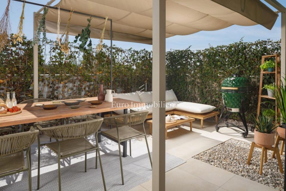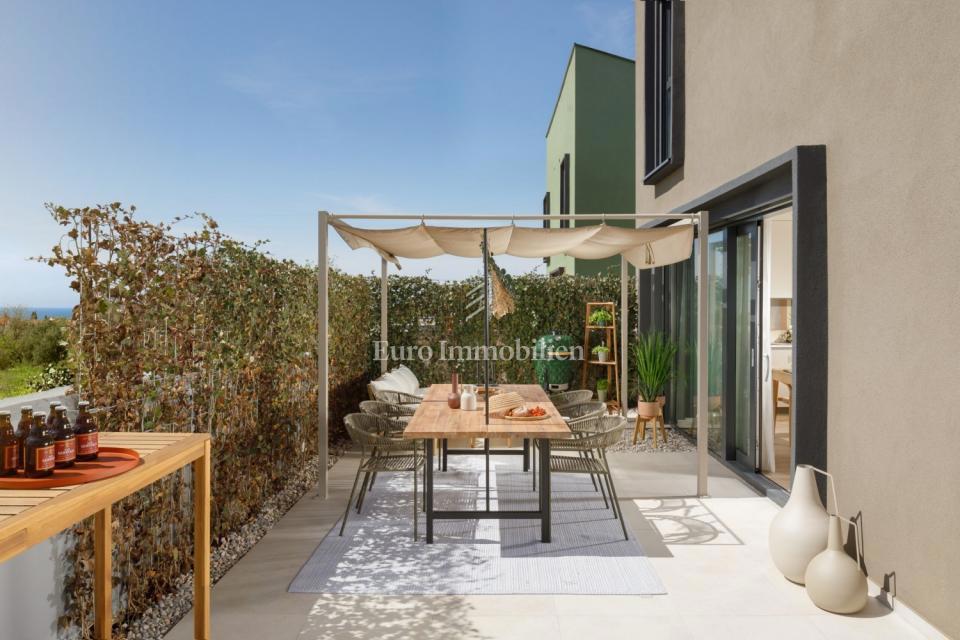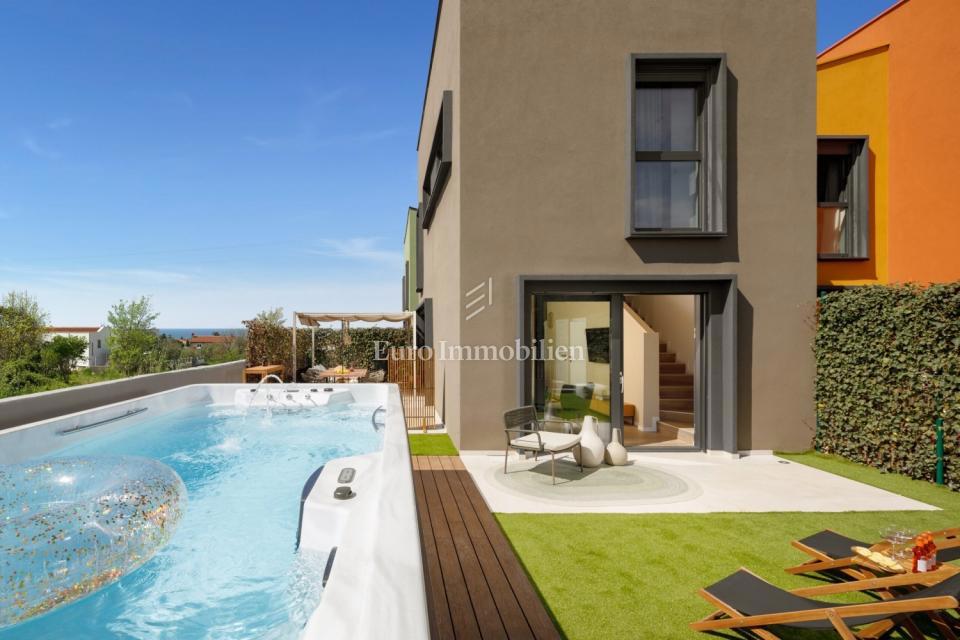 Poreč nedaleko od mora prekrasna kuća s pogledom na more, ukupne površine 83 m2. U prizemlju se nalazi kuhinja, blagovaonica i dnevni boravak s izlazom na terasu te wc, na katu su dvije spavaće sobe i kupaonica. Kuća sadrži veliku konobu i wc. Okućnica od