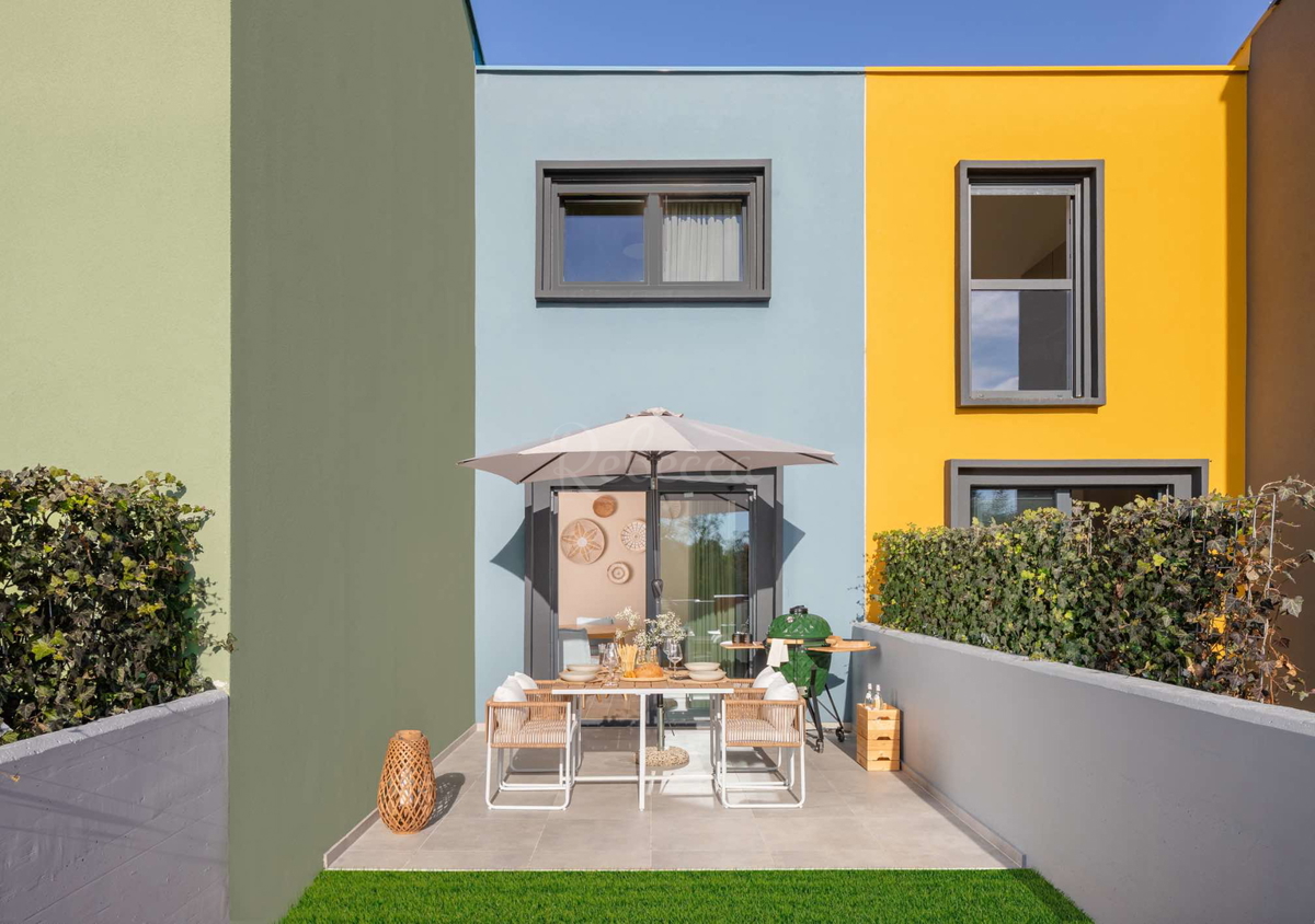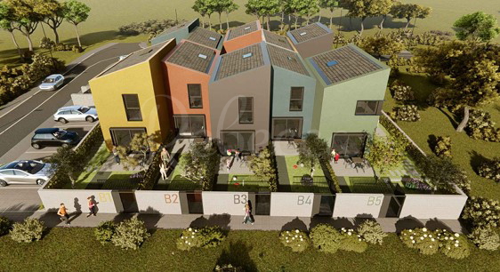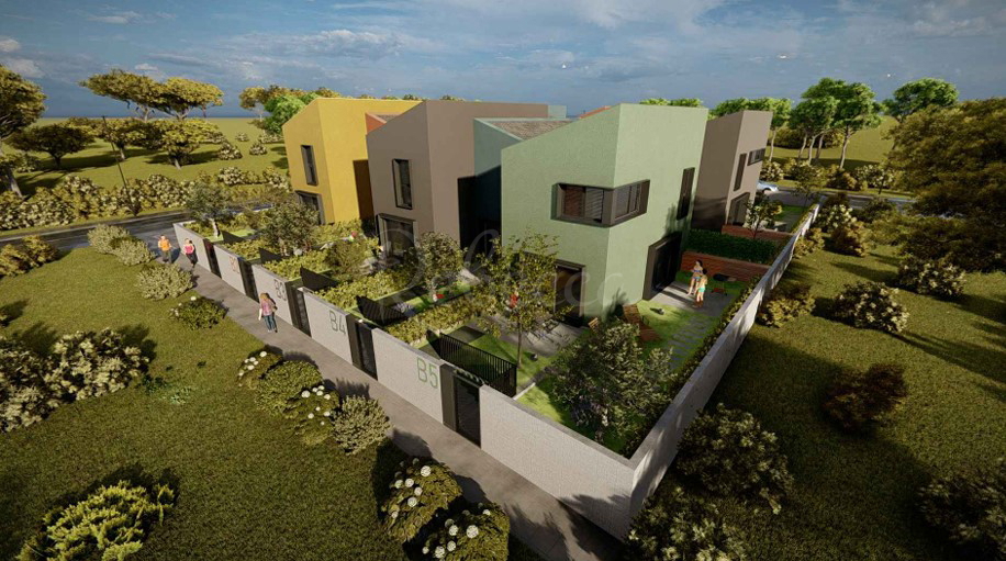 Na prodaju je moderna kuća u nizu, smještena u mirnoj lokaciji u Poreču. Kuća pruža savršen spoj suvremenog dizajna i funkcionalnosti, idealna za one koji traže udoban dom u popularnom istarskom gradu. Deset kuća u nizu, pet sa svake strane, čine se k
