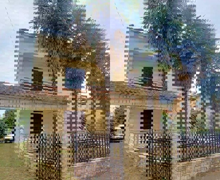 Poreč- predgrađe 1.5 km od mora , te na 2 km od grada Porečasmještena je samostojeća kuća od 310,.17 bruto m2 i neto 245 m2 na izvanrednoj lokaciji i lijepom zemljištu od 820m2Kuća ima 3 stambene jedinice, te dodatni objektom od 40 m2 i garažom.Kuća je pa