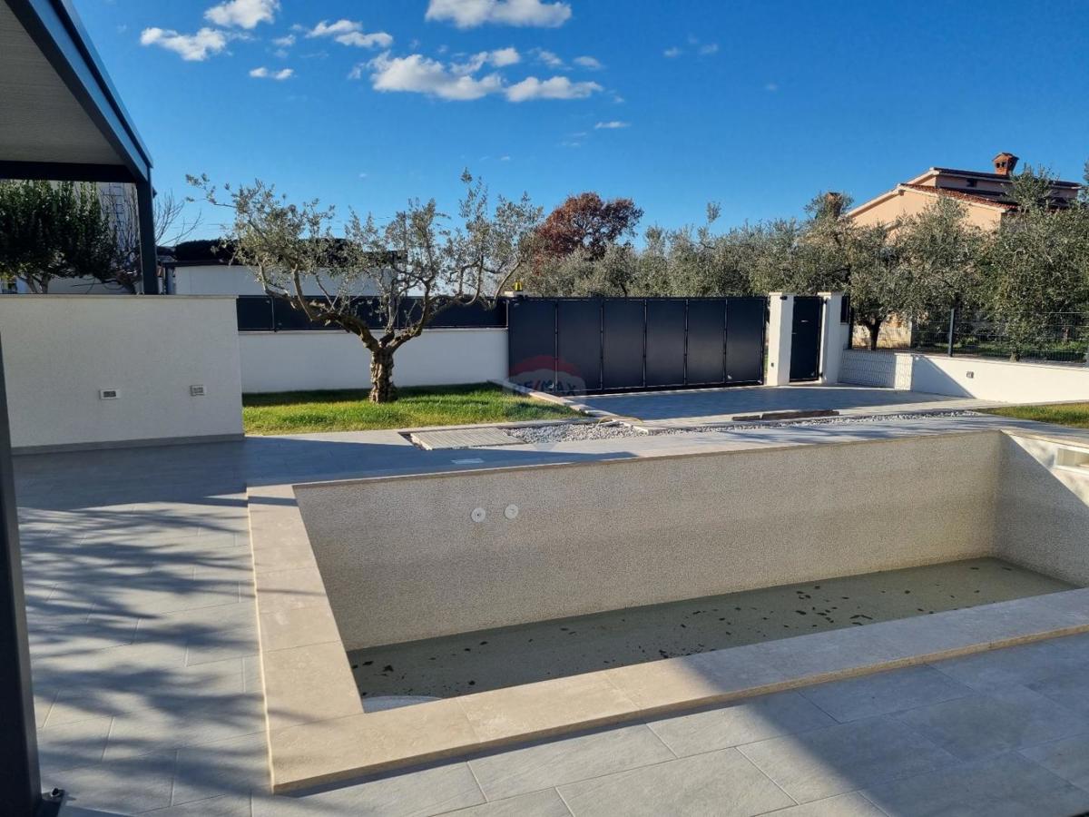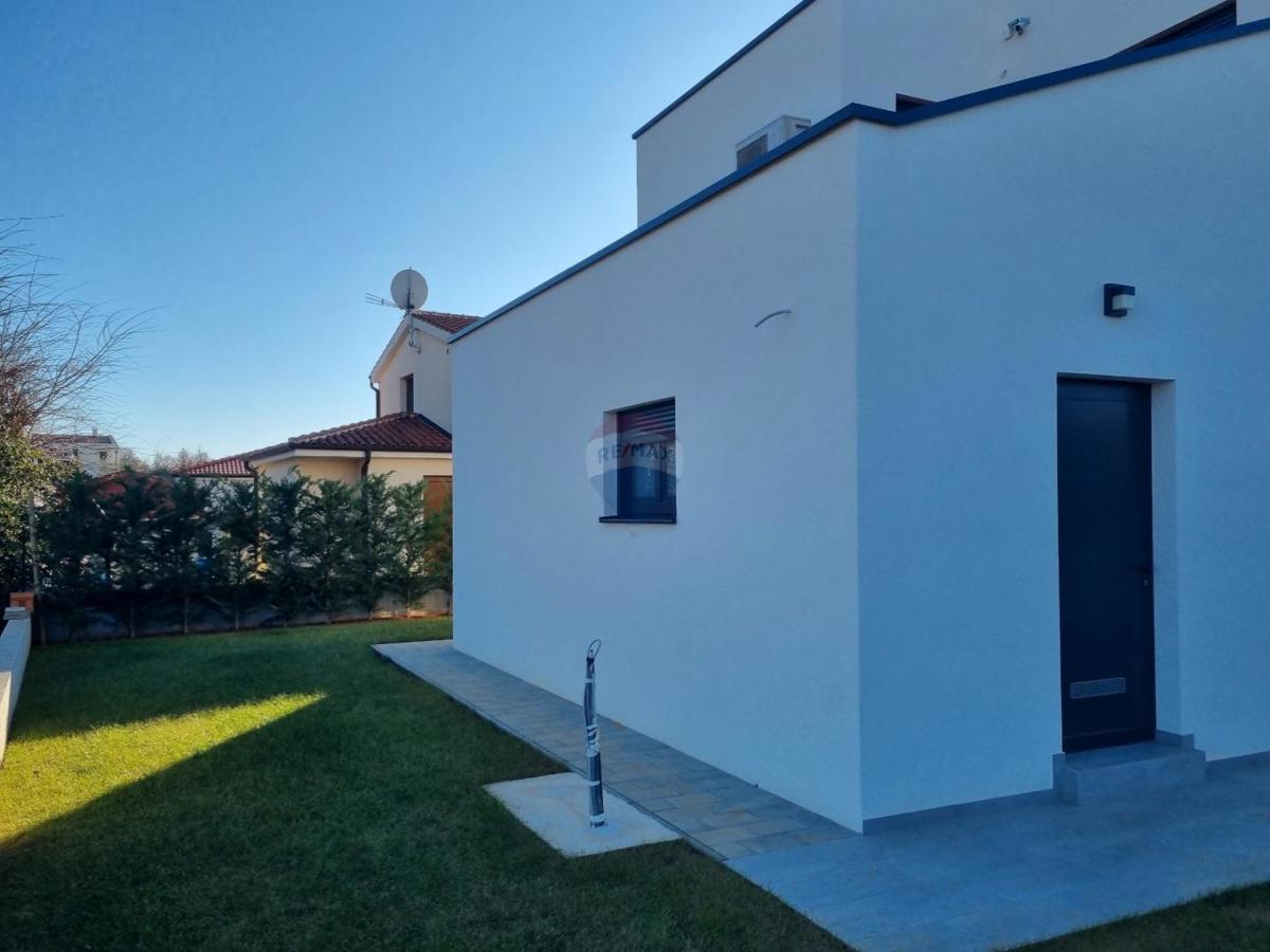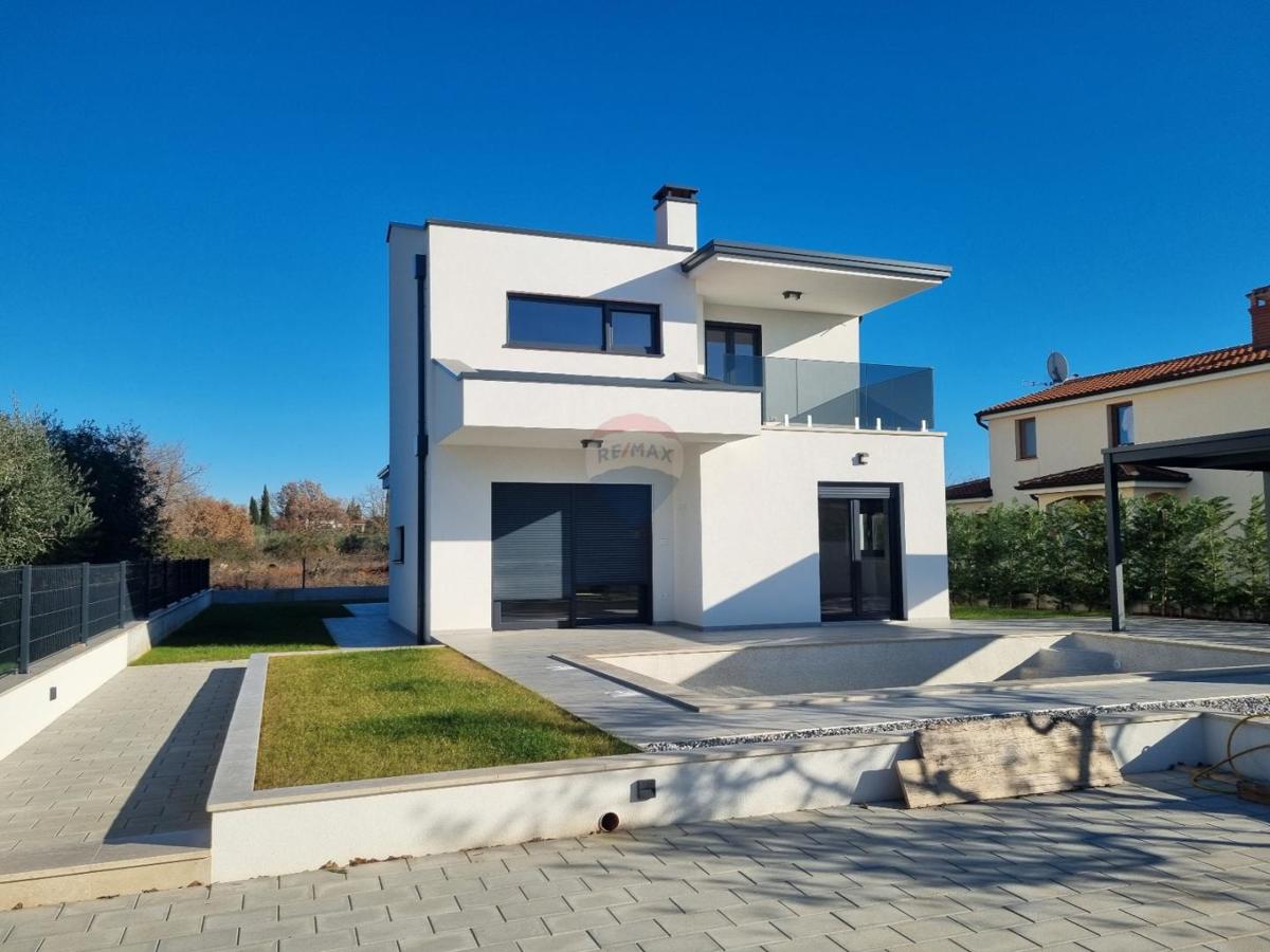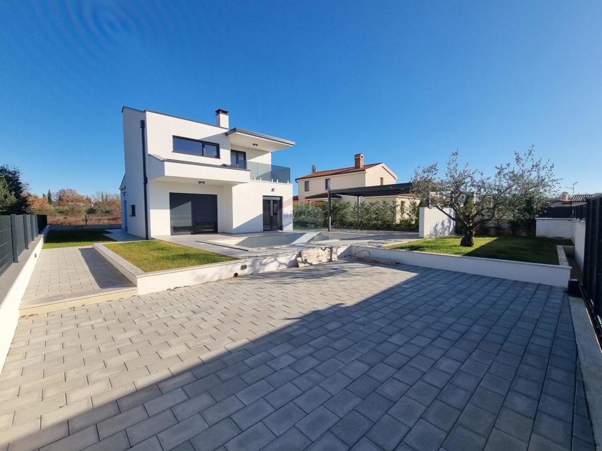 U okolici Poreča, na samo 5 km od centra grada i mora, prodajemo novu modernu kuću s pogledom na more. Ova moderna samostojeća kuća ima 140 m2 neto površine raspoređene na prizemlje i kat. U prizemlju se nalazi gostinjski wc, ostava, veliki dnevni borav