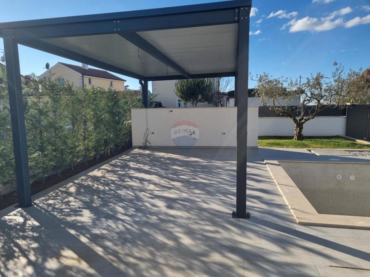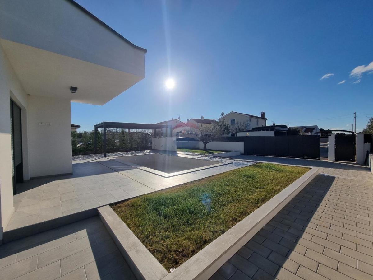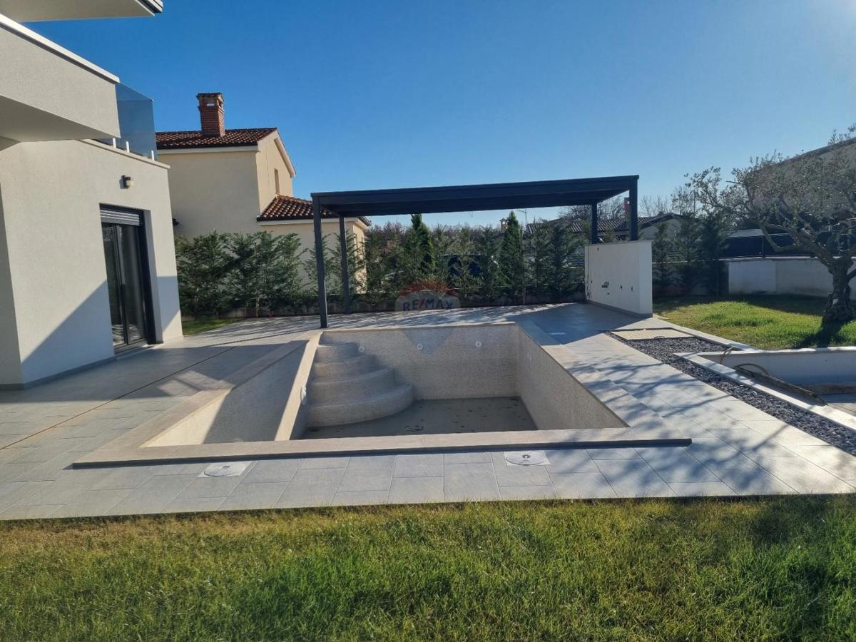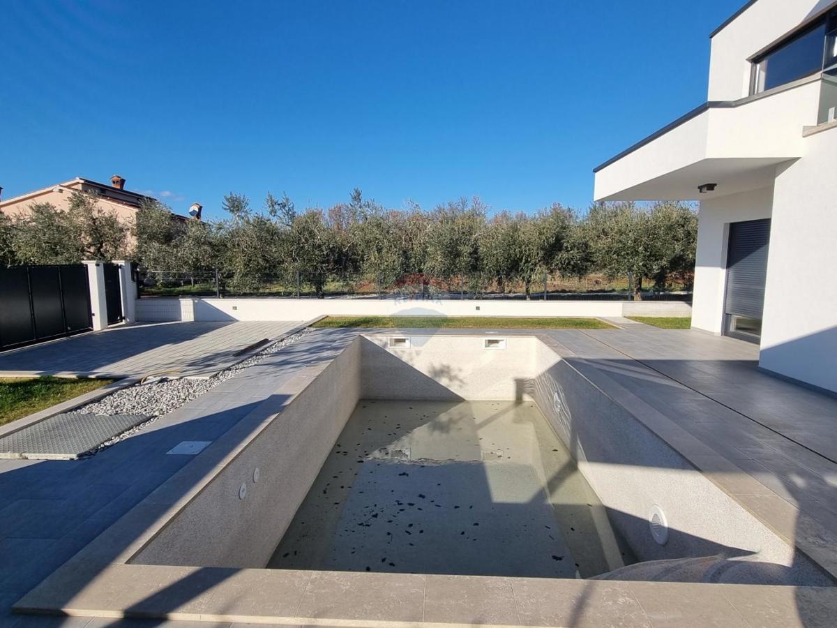 U okolici Poreča, na samo 5 km od centra grada i mora, prodajemo novu modernu kuću s pogledom na more. Ova moderna samostojeća kuća ima 140 m2 neto površine raspoređene na prizemlje i kat. U prizemlju se nalazi gostinjski wc, ostava, veliki dnevni borav