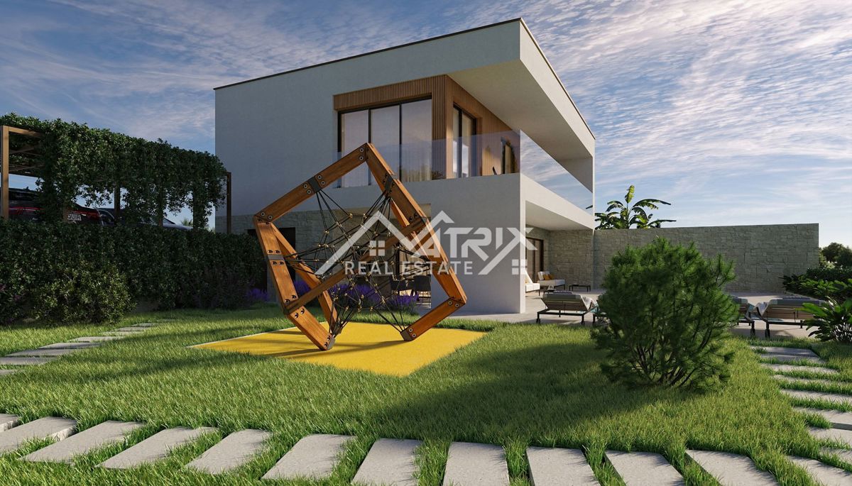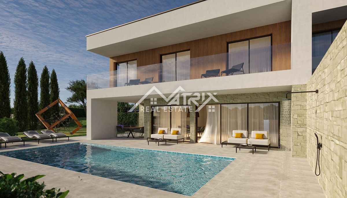 U mirnom selu okruženom vinogradima i maslinicima smjestila se moderna dvojna vila, idealna za one koji traže privatnost, udobnost i vrhunsku kvalitetu života. S privatnim bazenom, prostranim vrtom i vlastitim parkiralištem, ova nekretnina nudi savršen sp