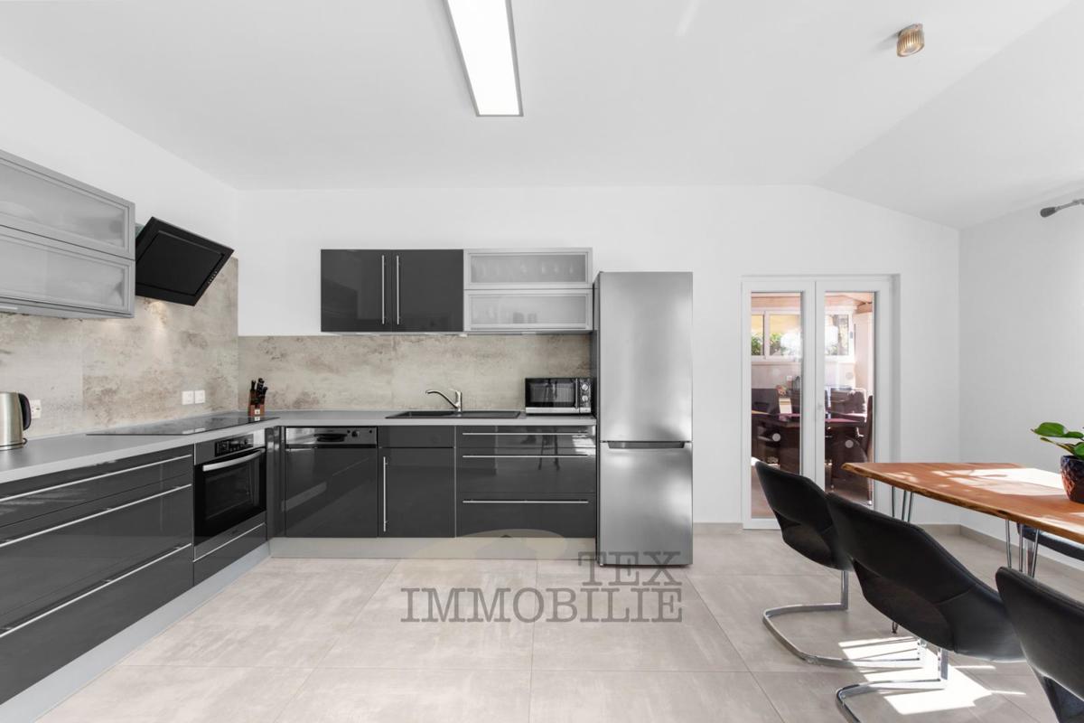 Prodaje se predivna jednoetažna kuća smještena u mirnom obiteljskom području, samo 8 km udaljena od Poreča i mora. Kuća je potpuno renovirana 2019. godine i sastoji se od prostranog dnevnog boravka, moderne kuhinje povezane s blagovaonicom, te tri udobne